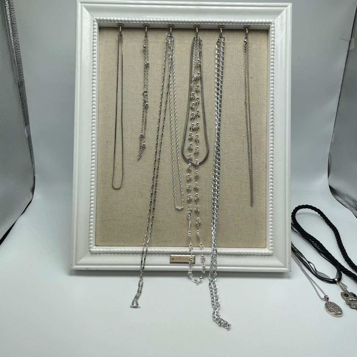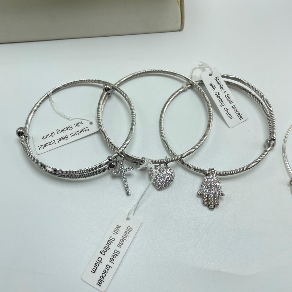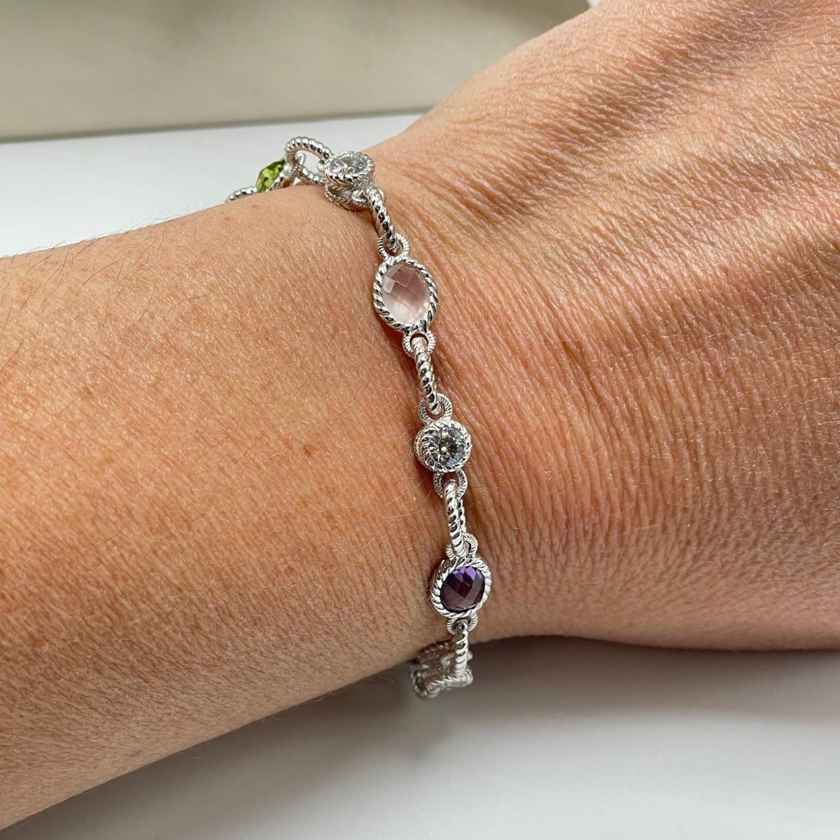 Judith Ripka bracelet with lobster clasp stamped 925 and CZ with multi colored gems. Lot also features eleven necklaces, sizes range between 13” and 34”, the tree pendant and its chain are stamped 925, the other necklaces do not appear to have stamps. Lot includes five more bracelets with charms. The cross does not appear to be marked while the hand and heart charms are stamped 925. The two other bracelets have brand style charms marked 925, but the other charms do not have stamps. Please see photos for all markings found. We cannot guarantee the authenticity of the gemstones. All sales are final. No returns or refunds. Please bid accordingly.
