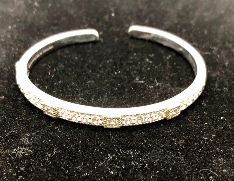 Judith Ripka 925 Sterling Silver CZ Hinged Cuff Bracelet YD#020-1220-05057