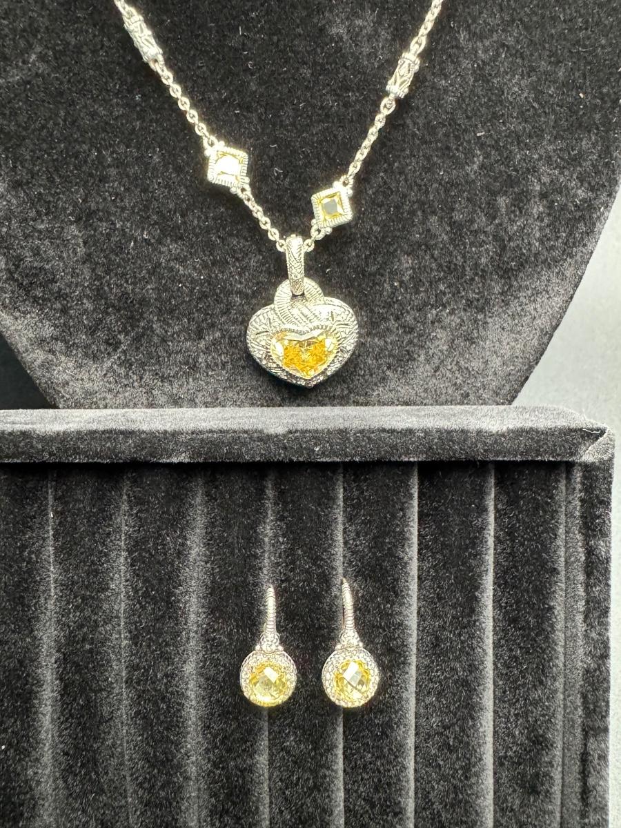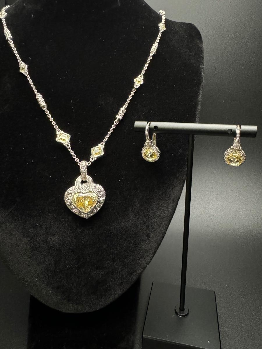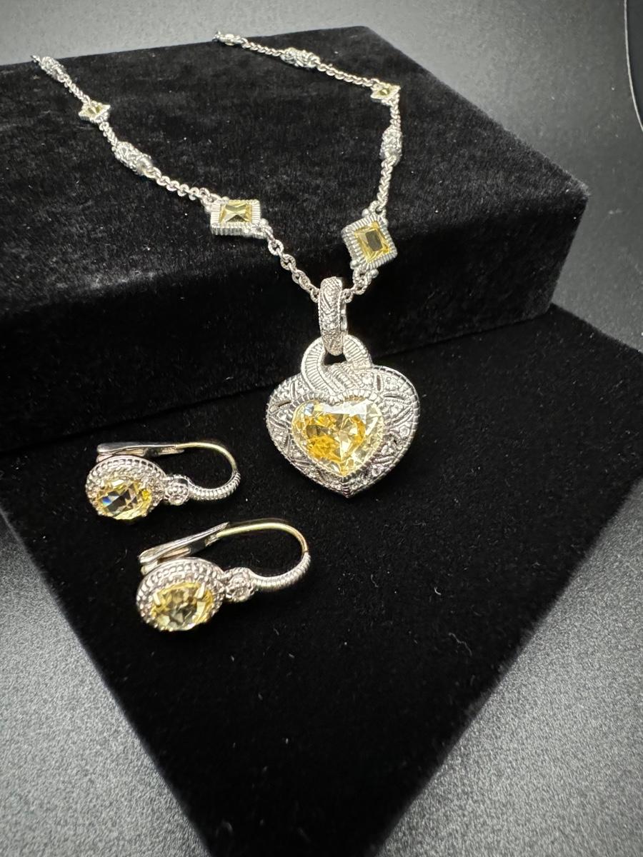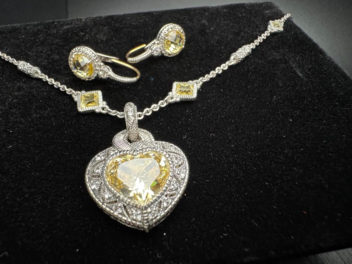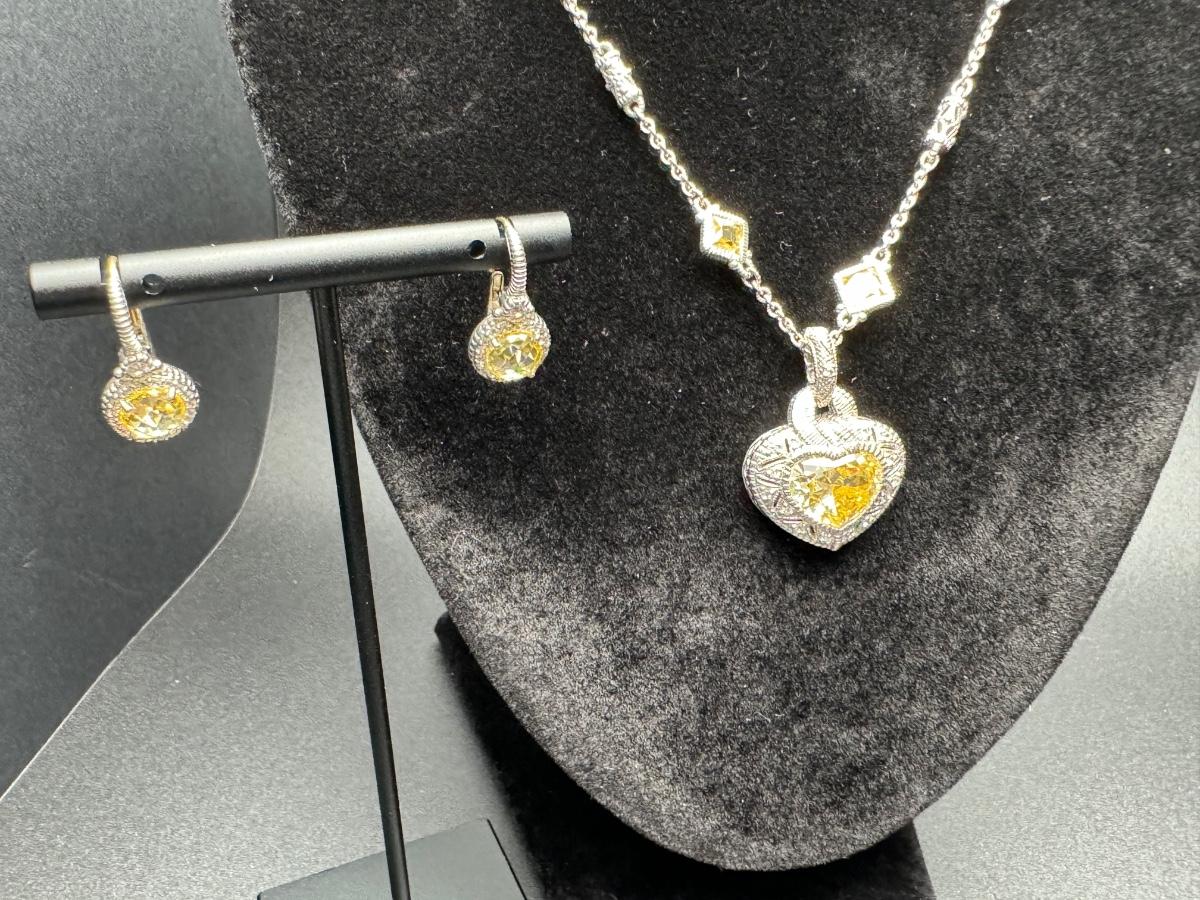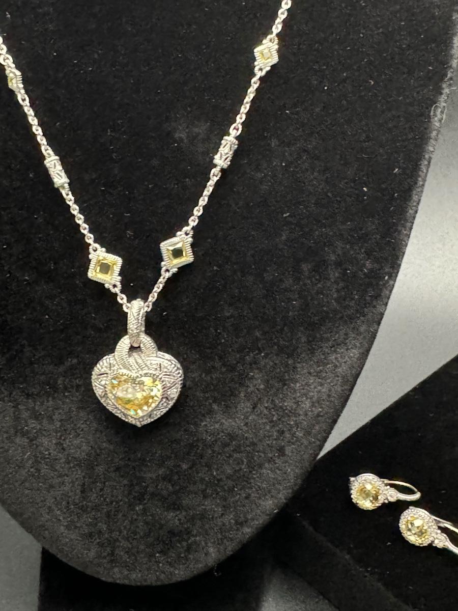 Judith Ripka Heart Necklace and Earrings 14K 925