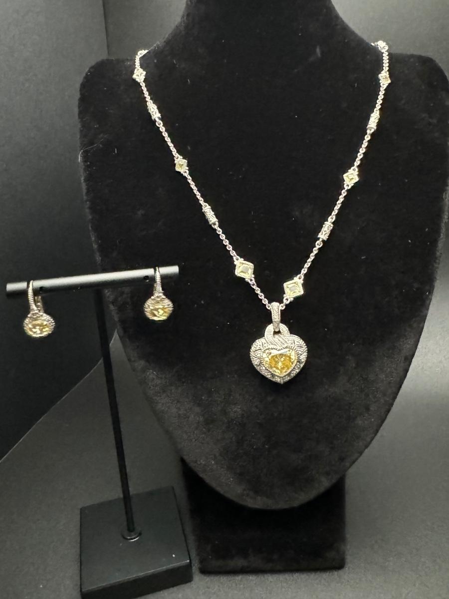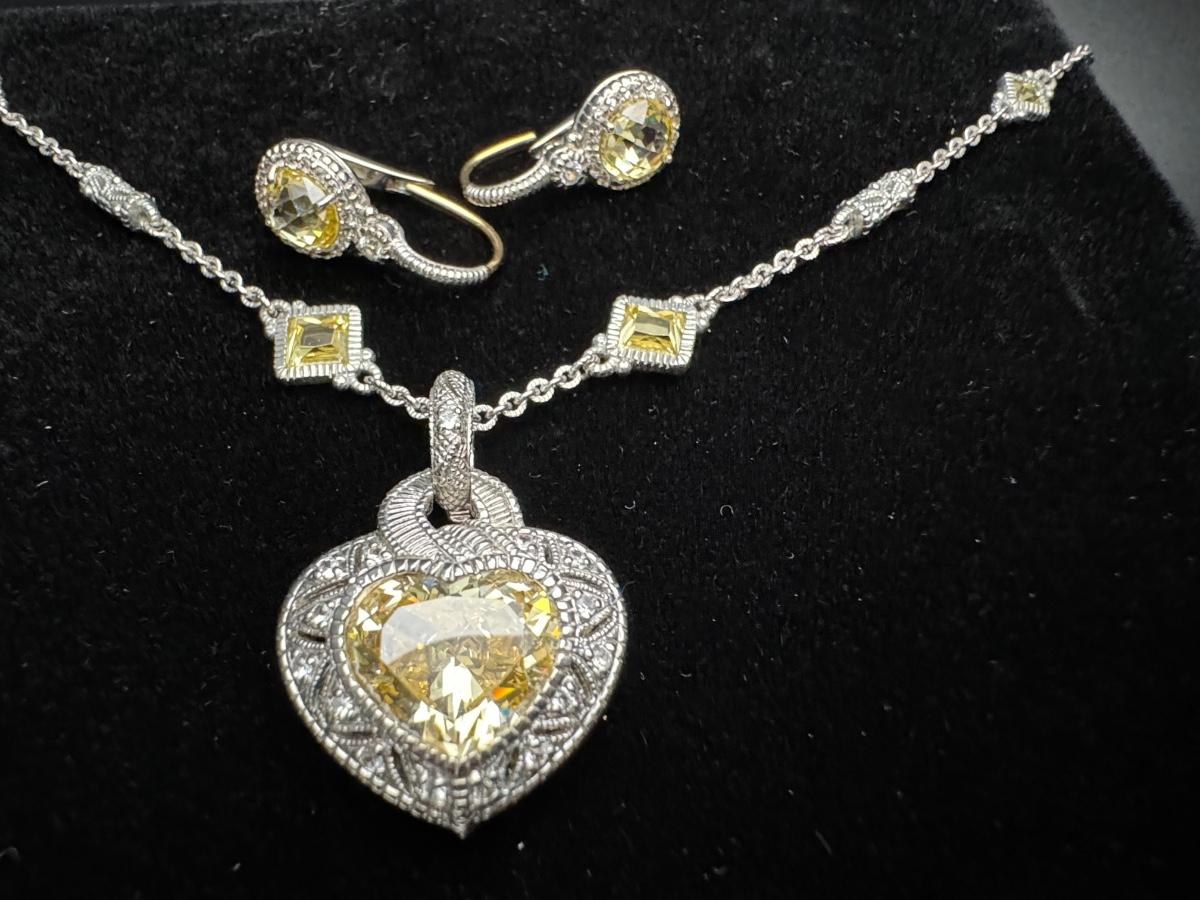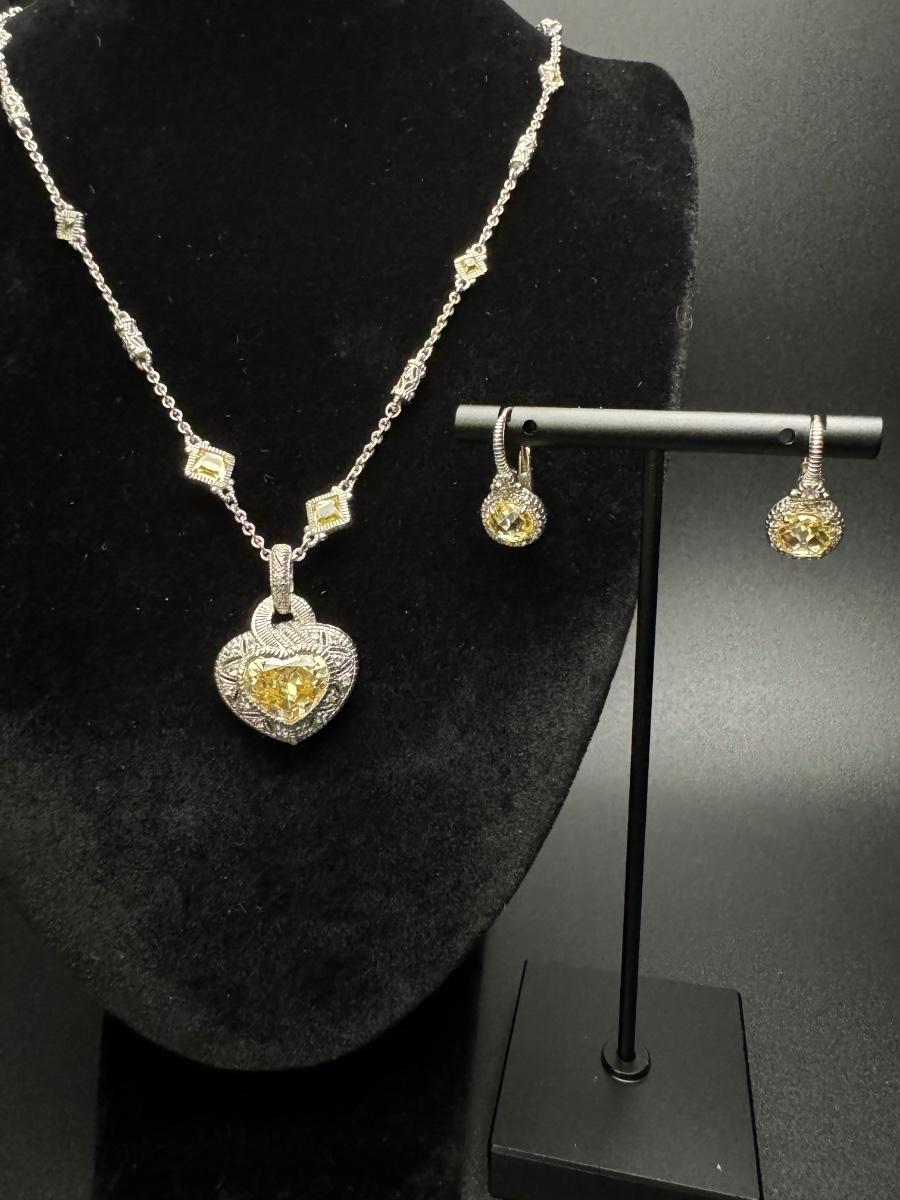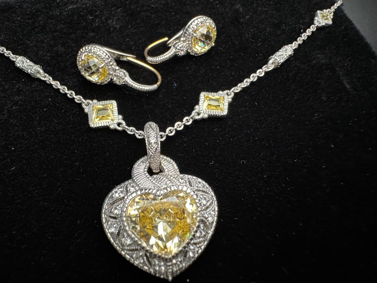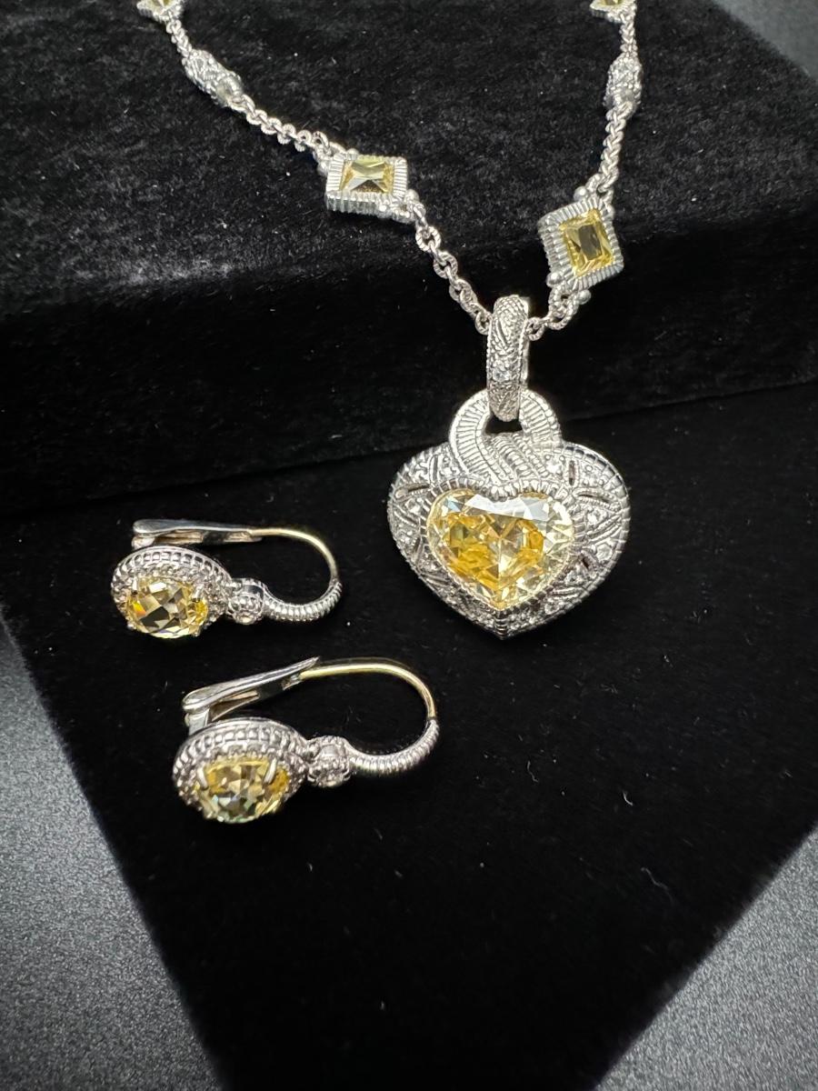 Judith Ripka Heart Necklace and Earrings 14K 925