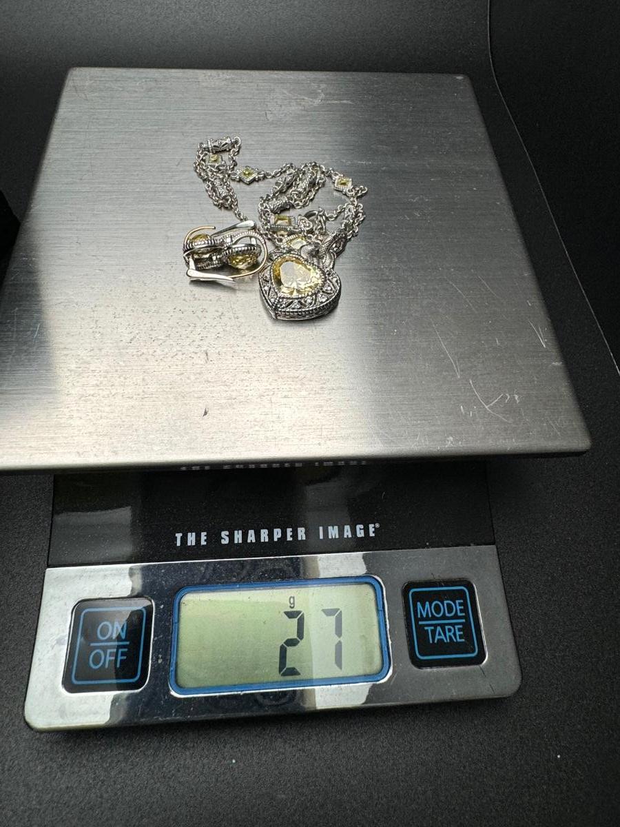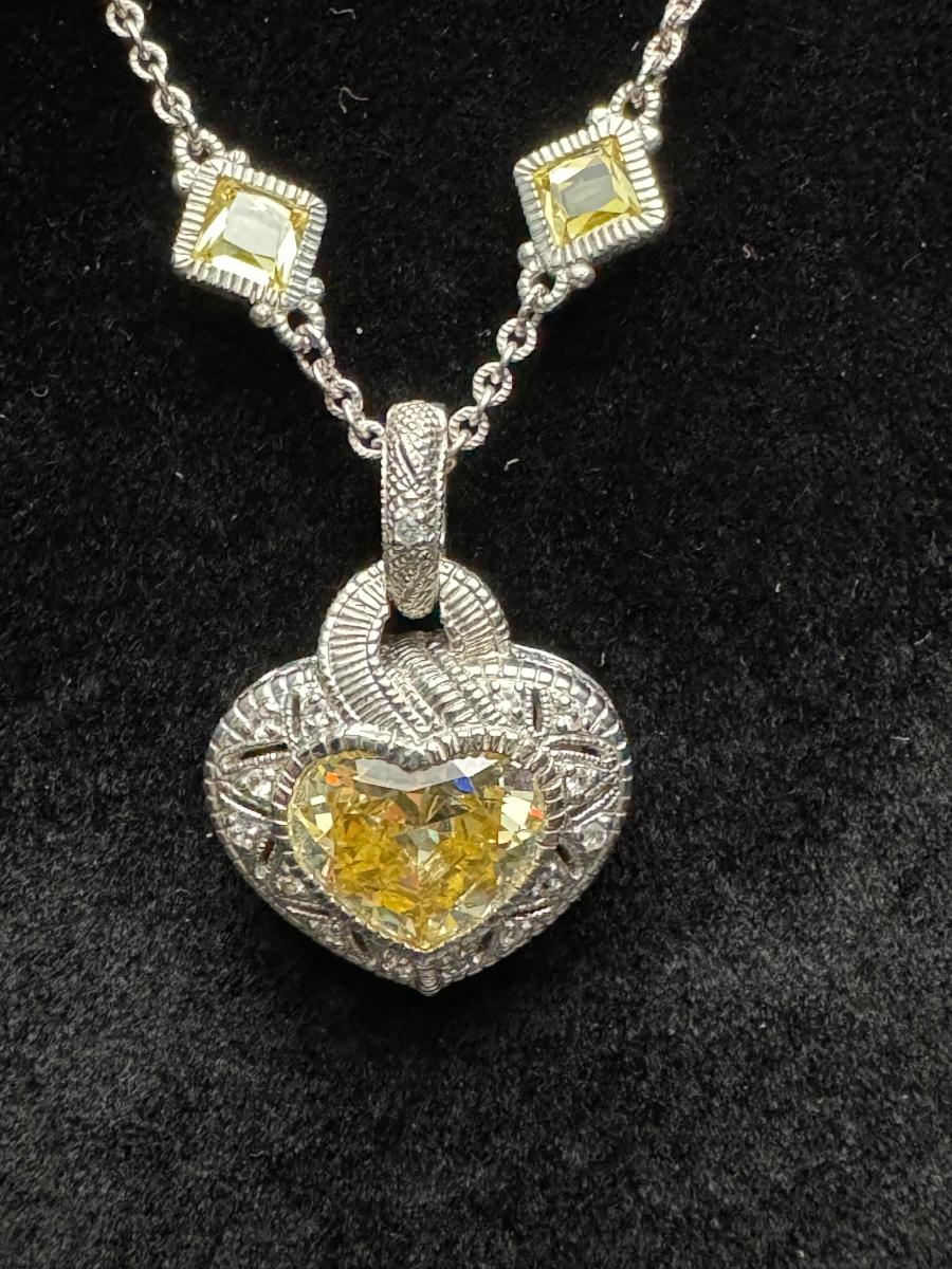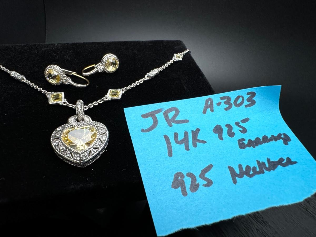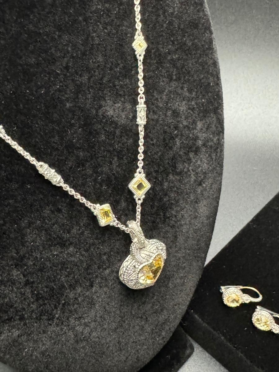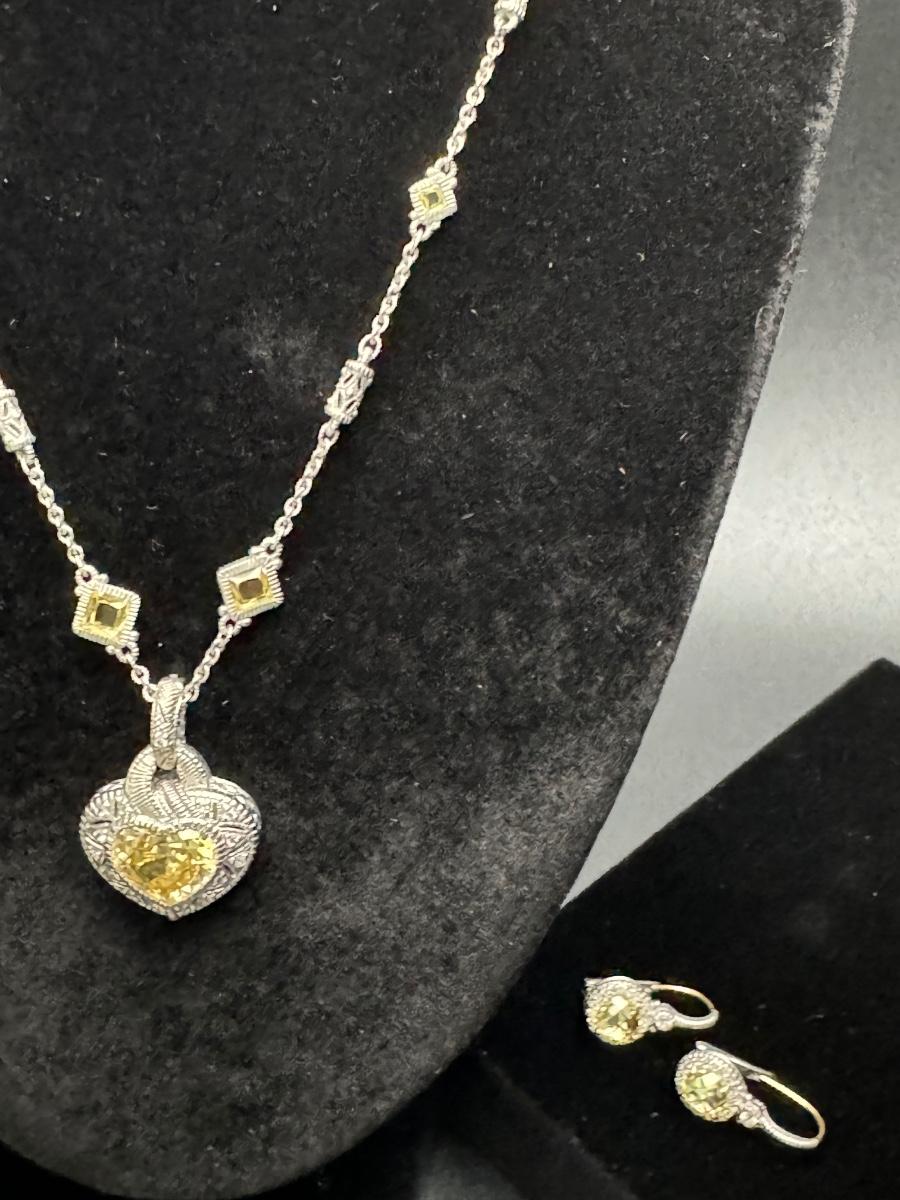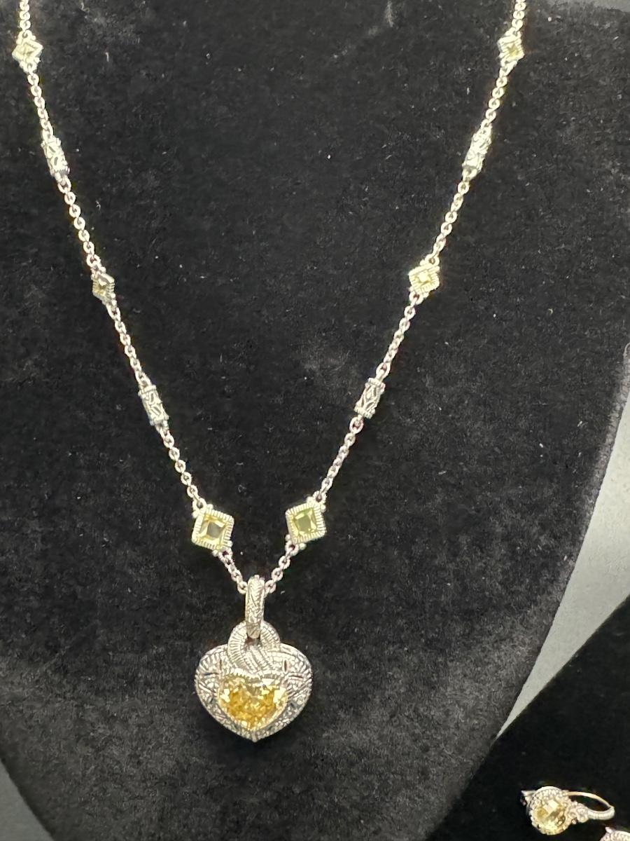 Judith Ripka Heart Necklace and Earrings 14K 925