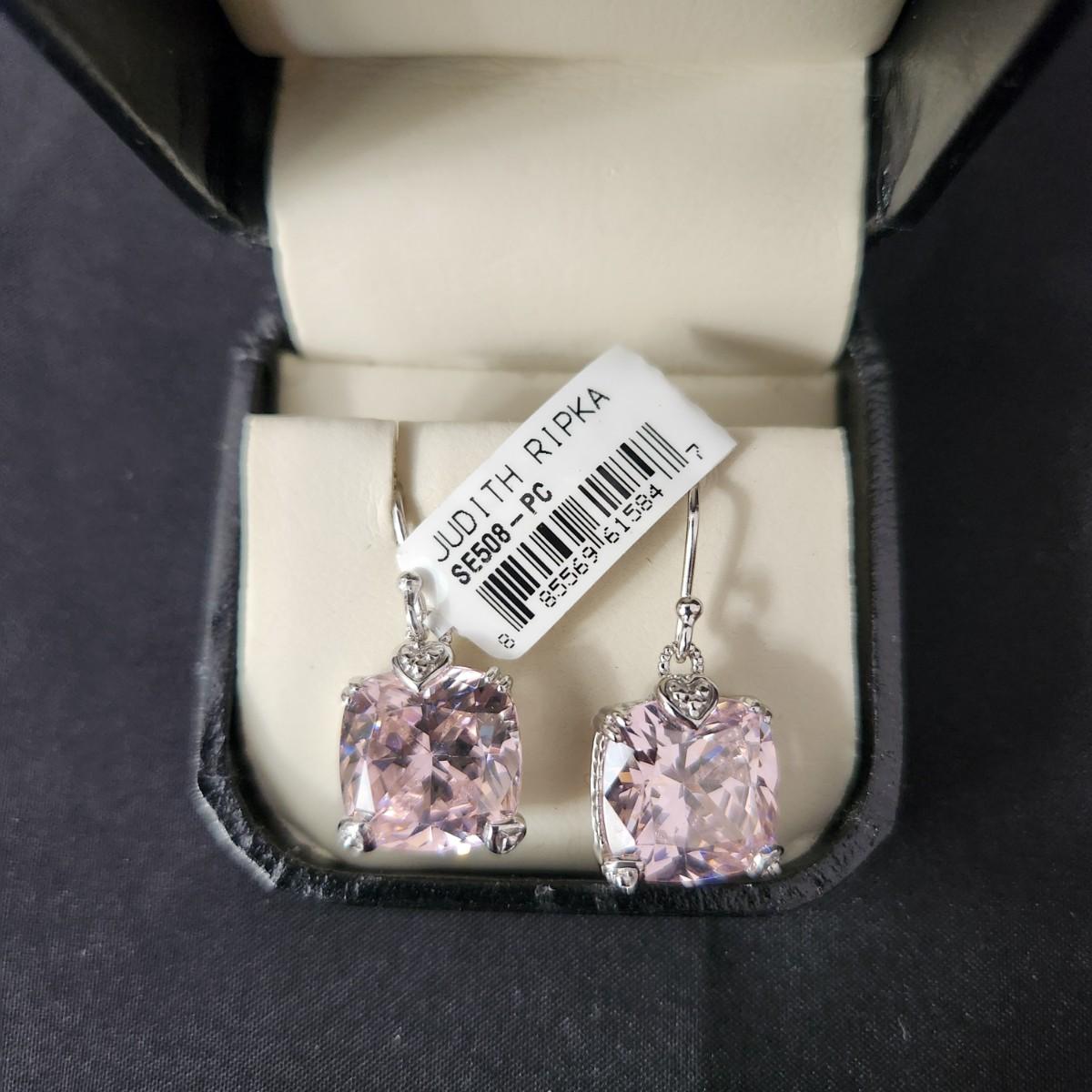 Judith Ripka Pink Crystal Earrings Sterling Silver