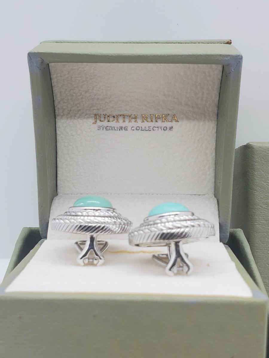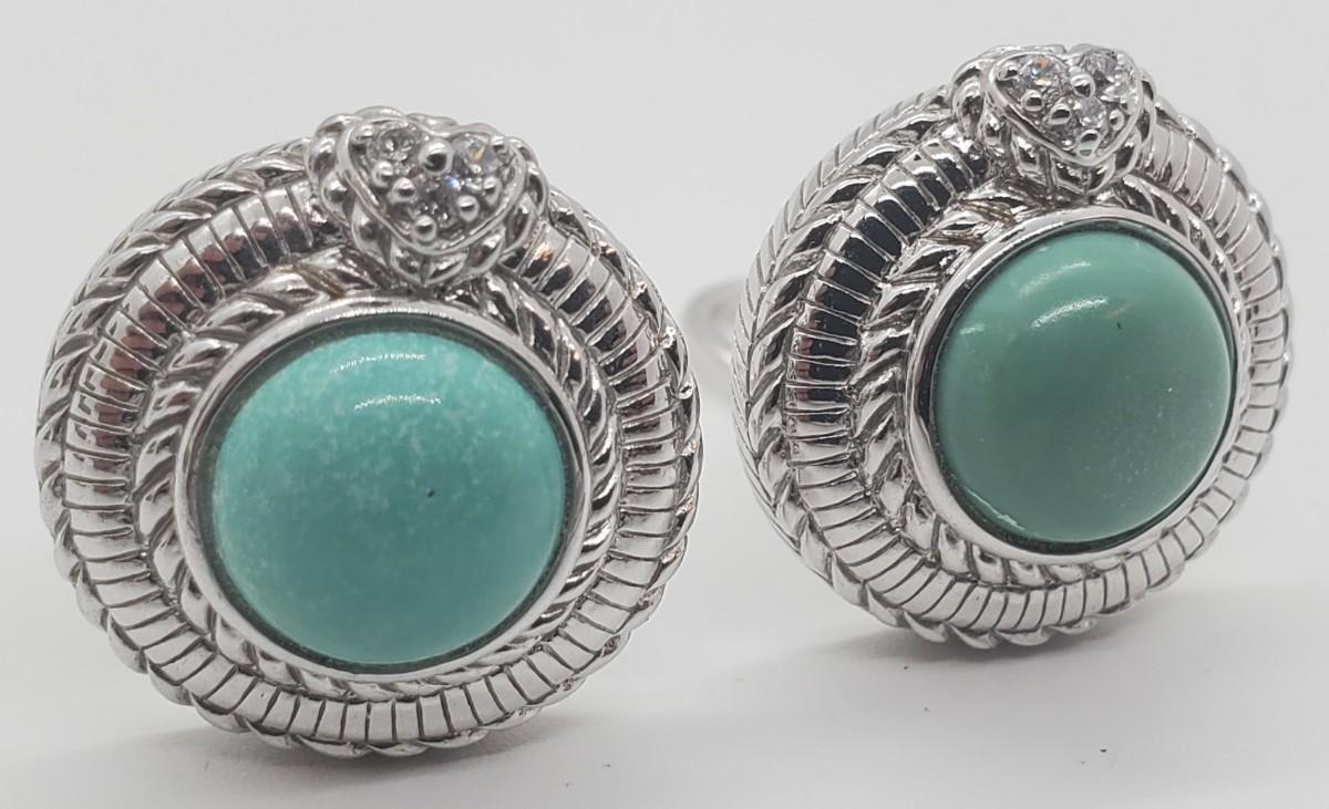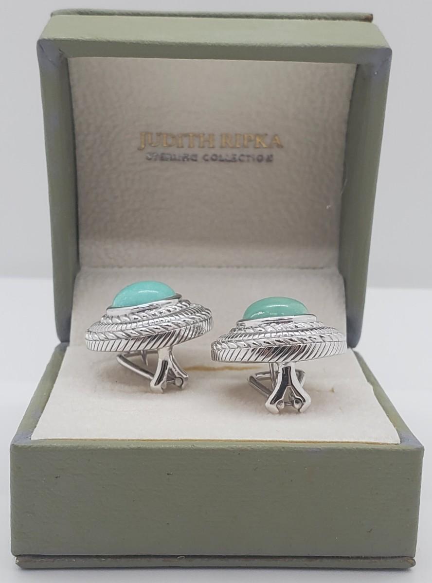 Judith Ripka Sterling Round Green Turquoise Earrings