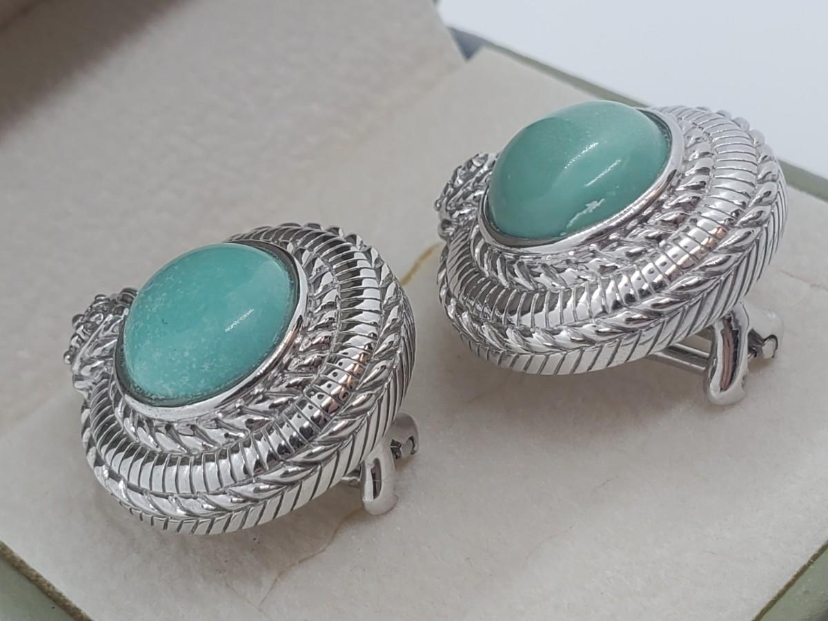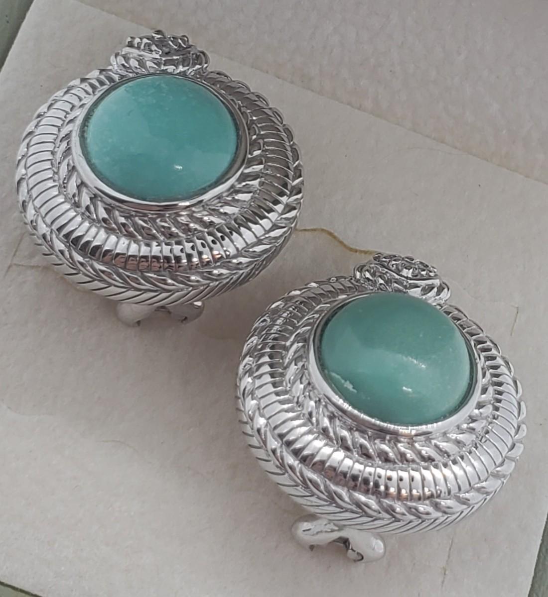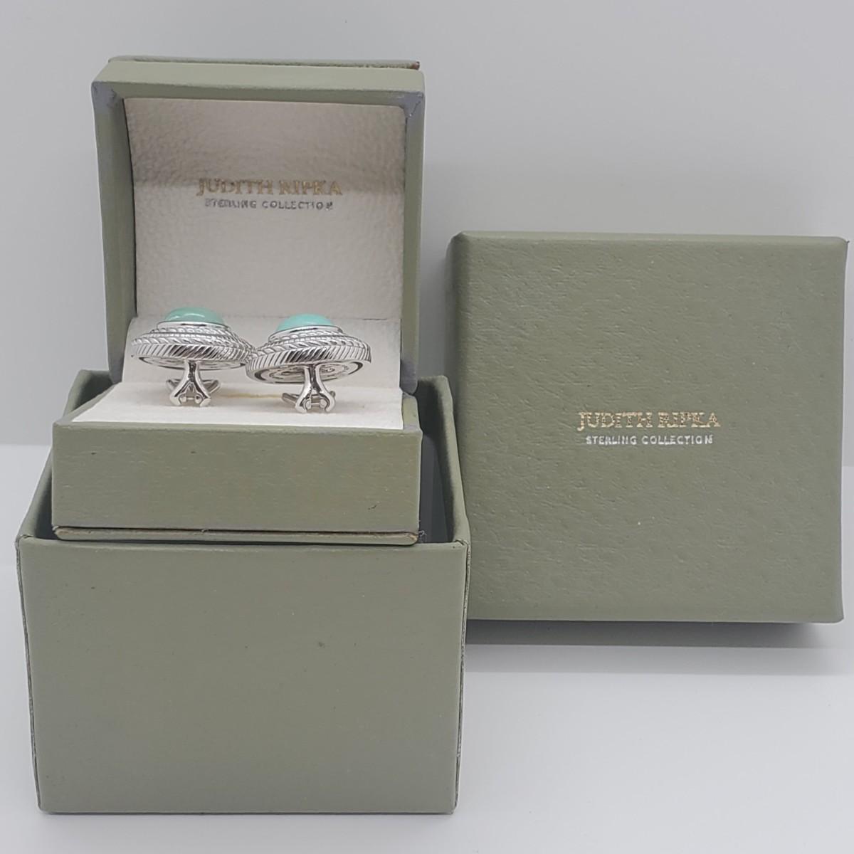 Judith Ripka Sterling Round Green Turquoise Earrings