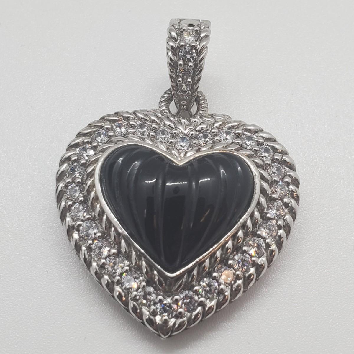 Judith Ripka Sterling Onyx Heart Enhancer/Pendant