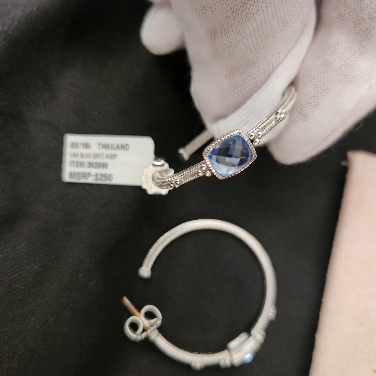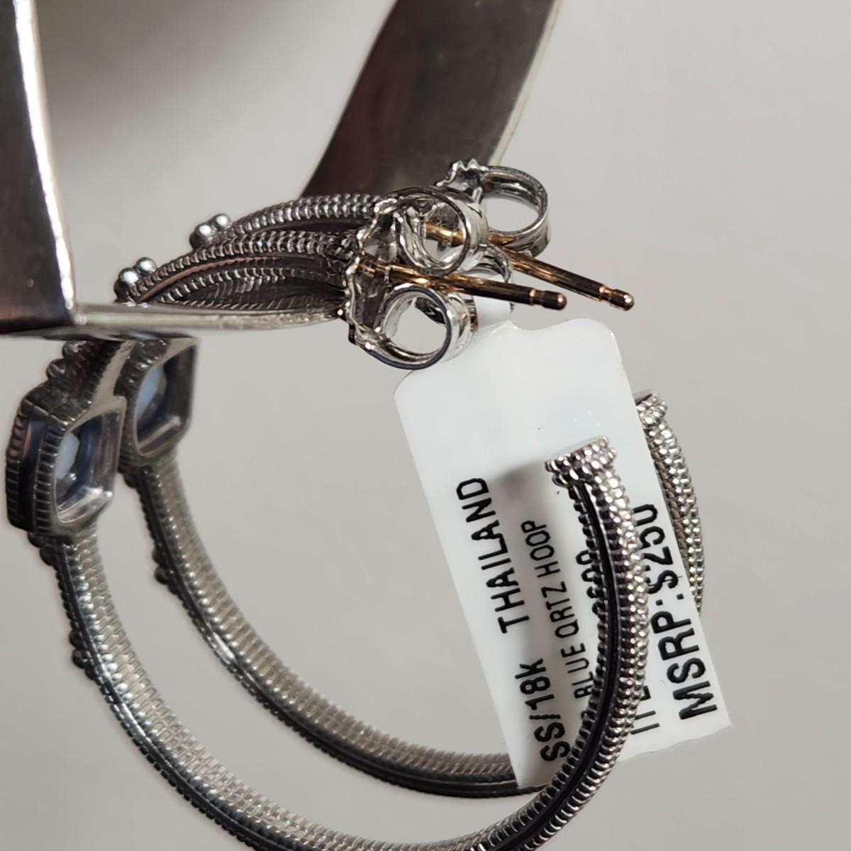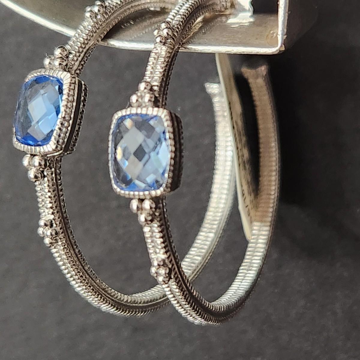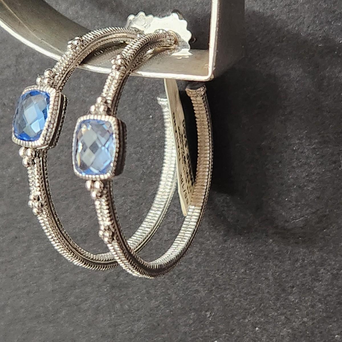 Judith Ripka Sterling Silver 18 K Gold Blue Quartz Large Hoop Earrings