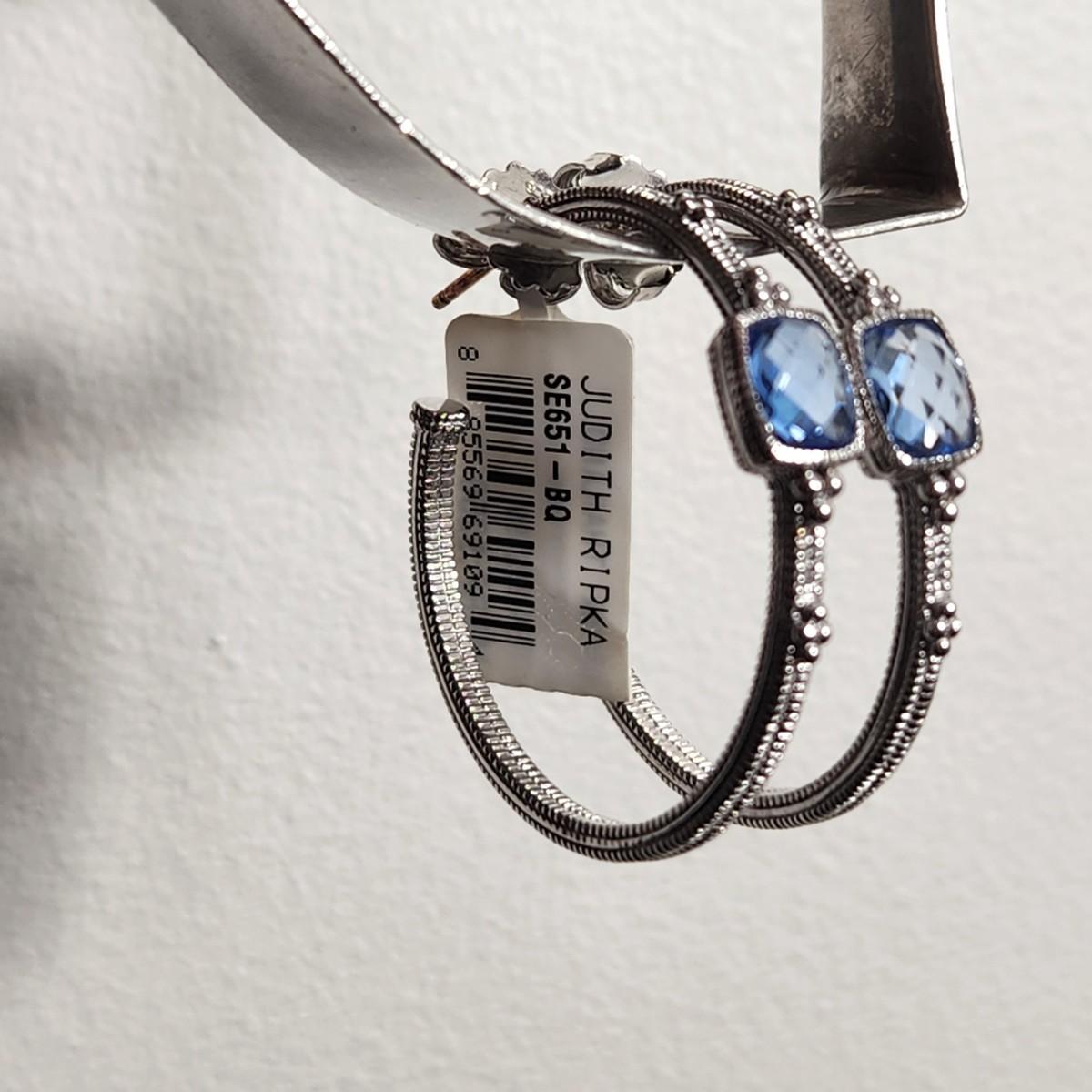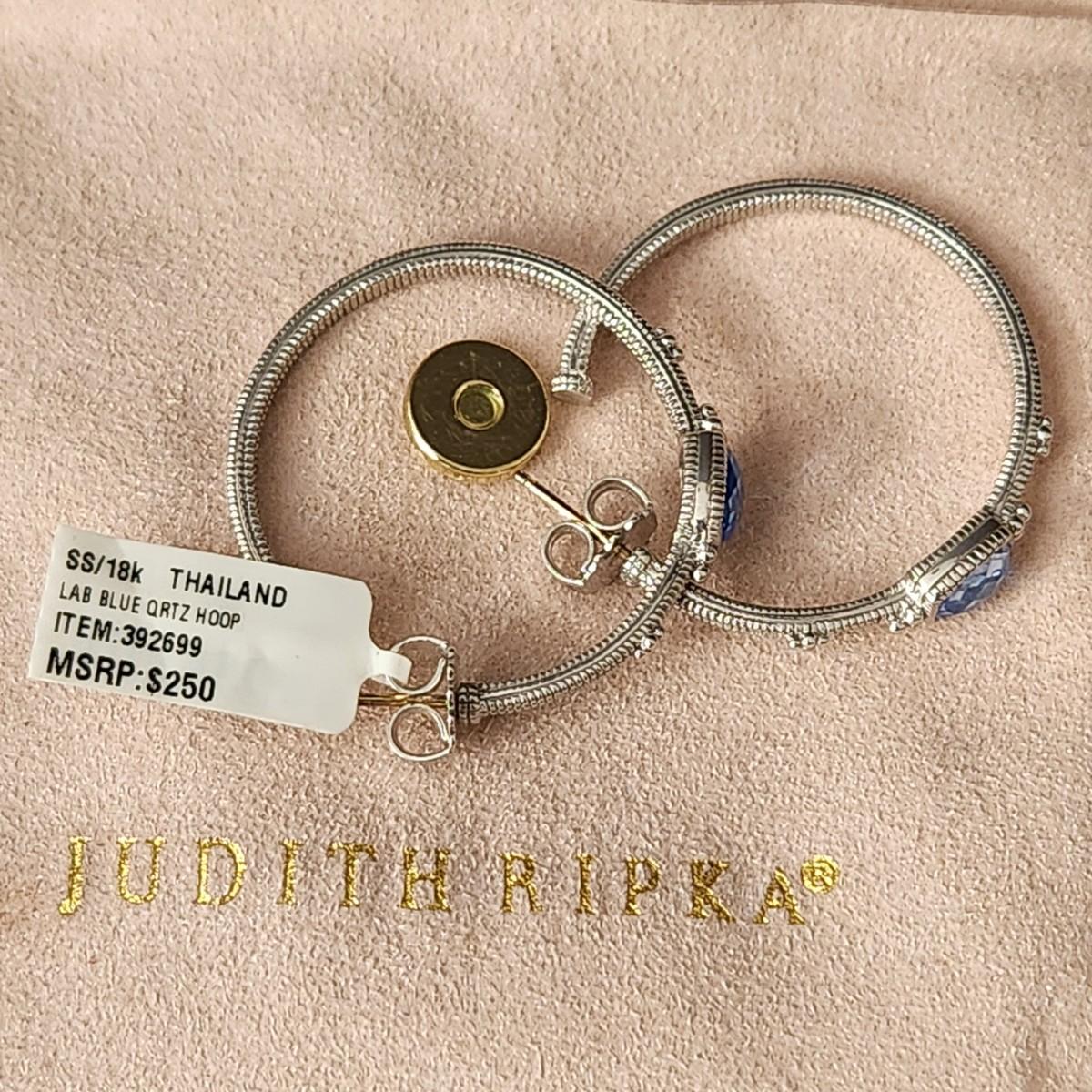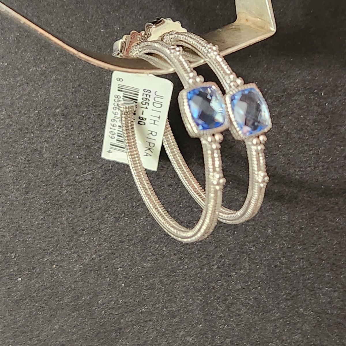 Judith Ripka Sterling Silver 18 K Gold Blue Quartz Large Hoop Earrings
