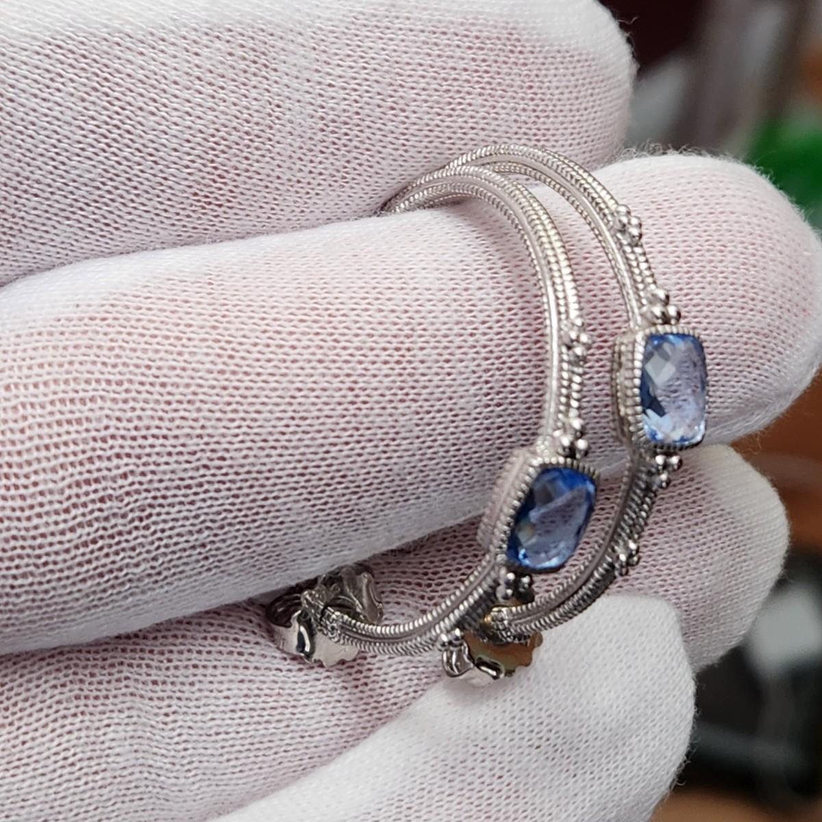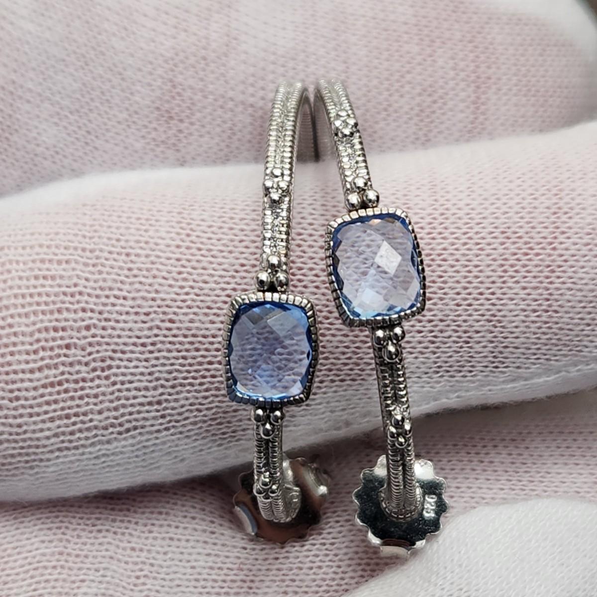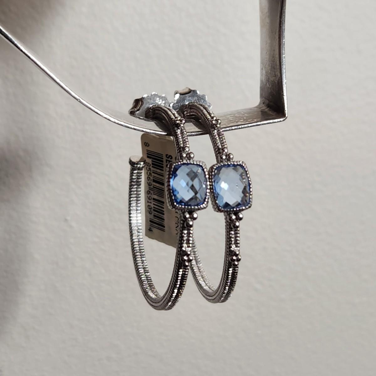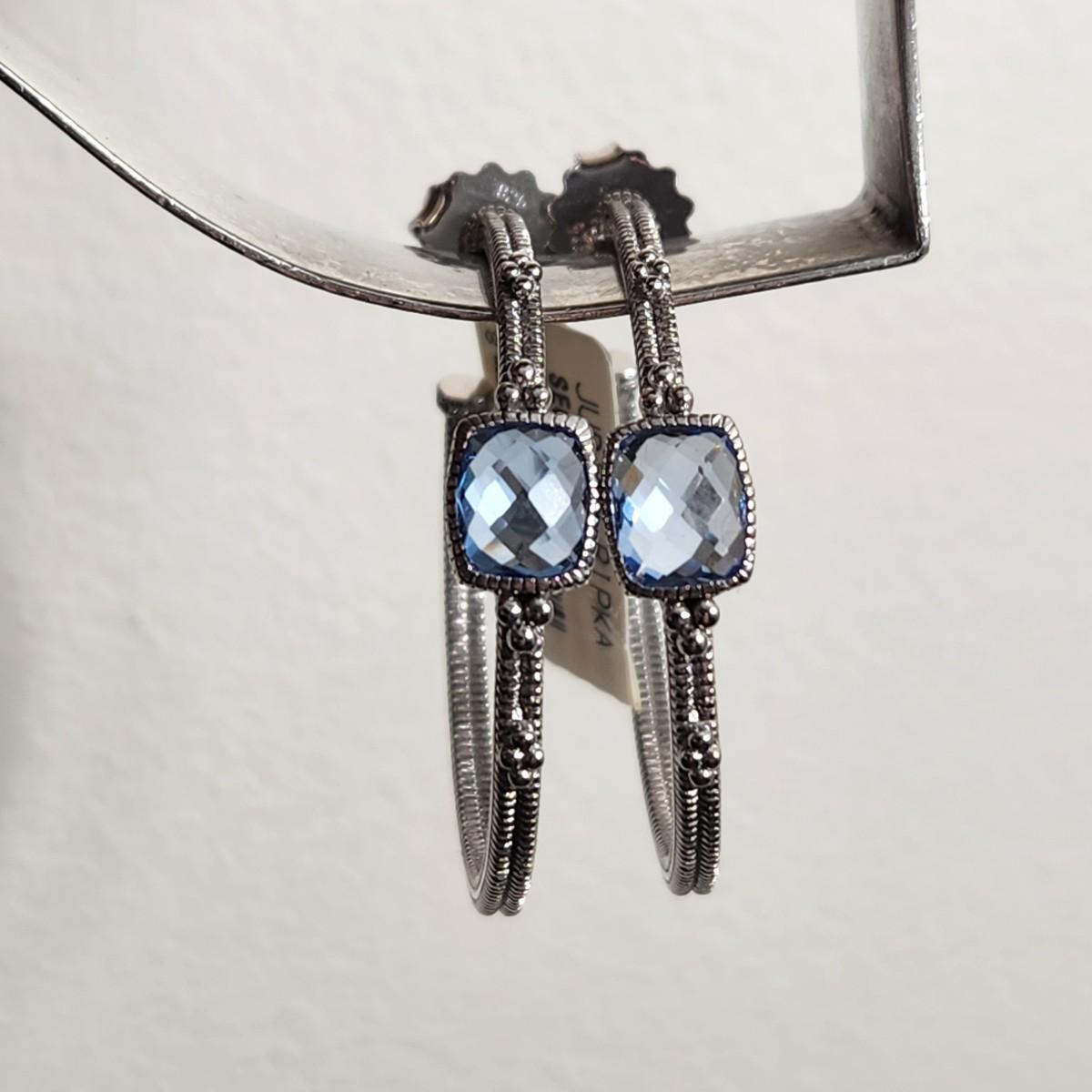 Judith Ripka Sterling Silver 18 K Gold Blue Quartz Large Hoop Earrings