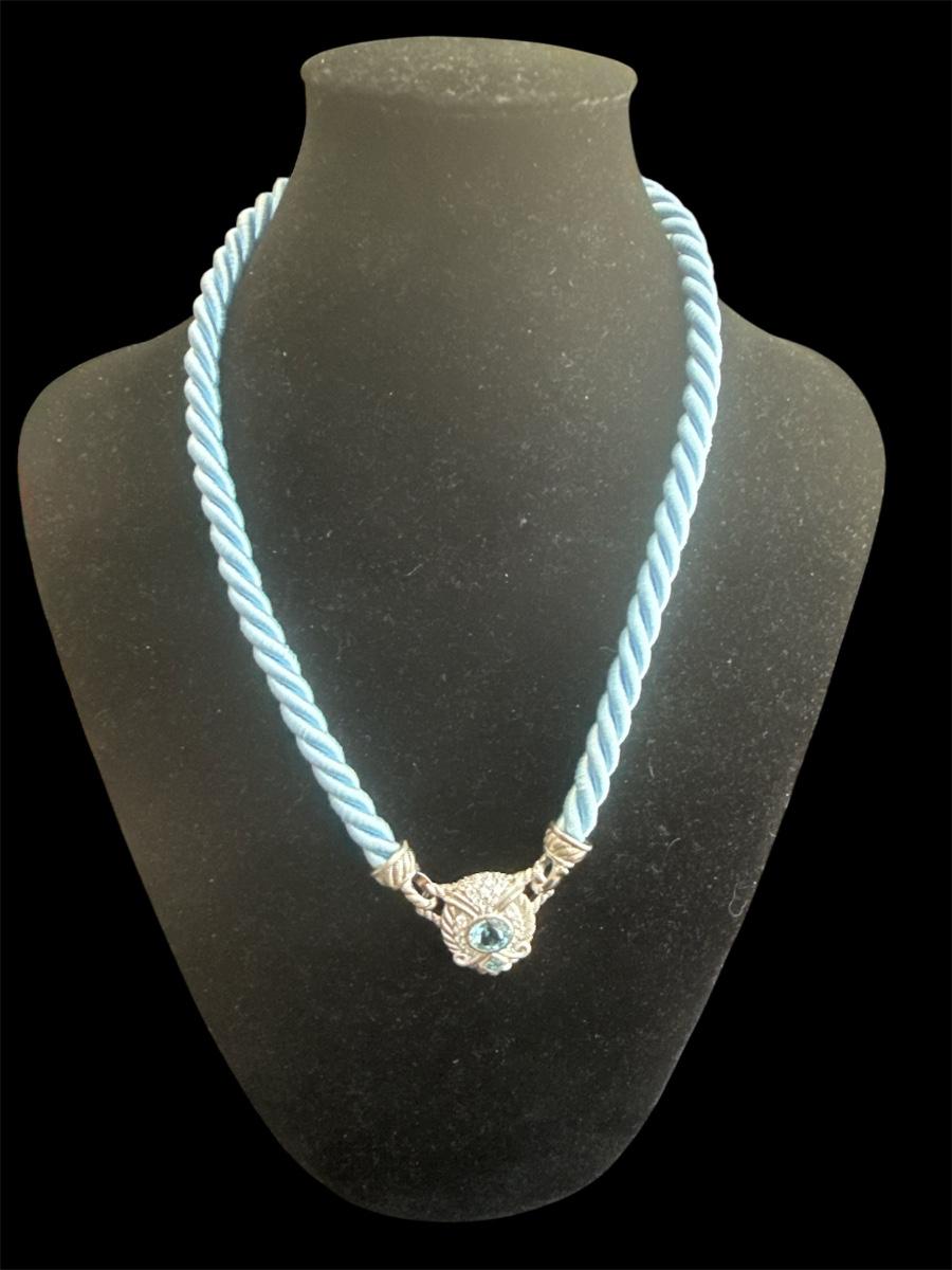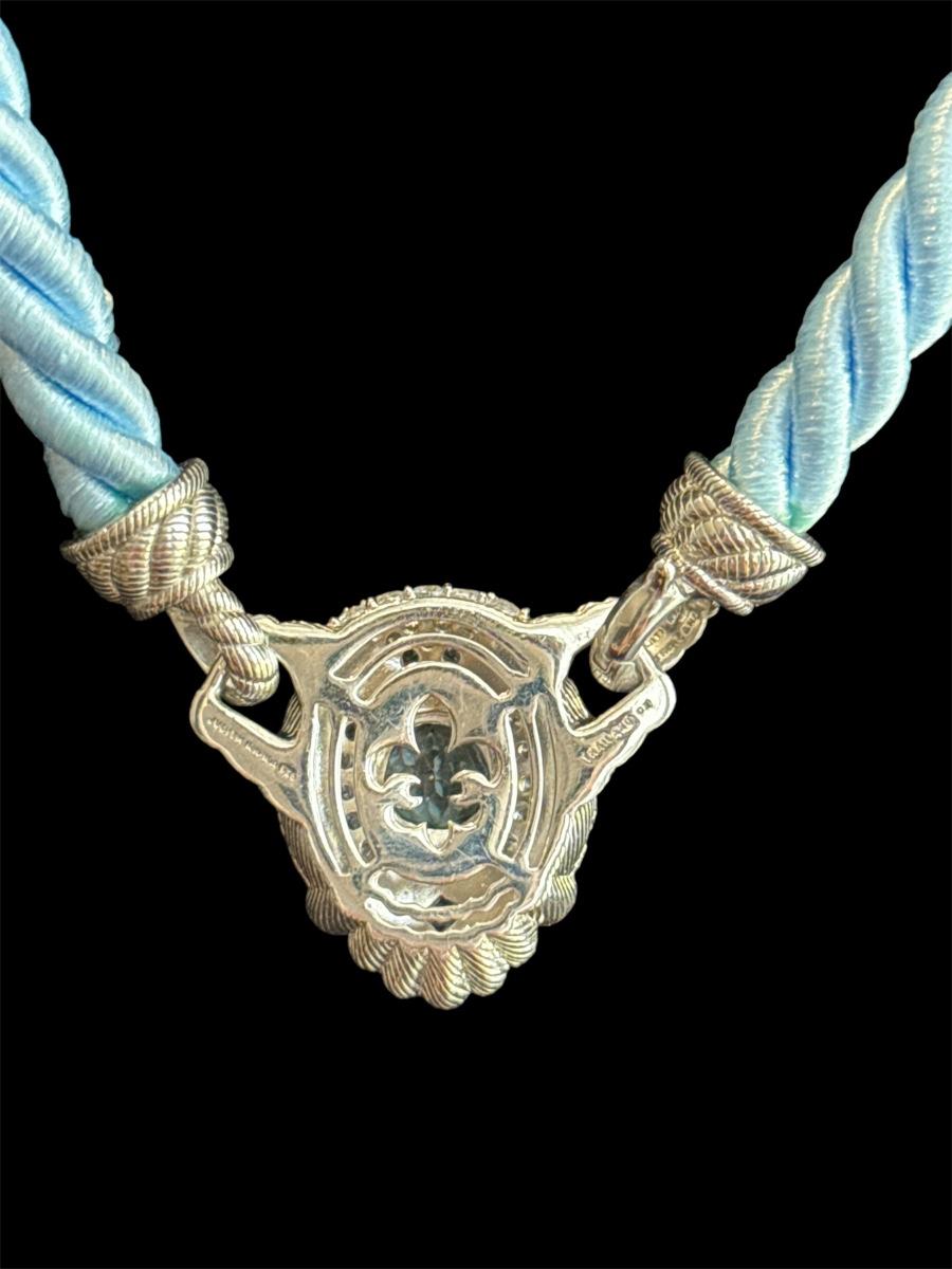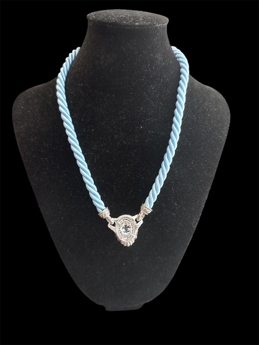 Judith Ripka Sterling Silver Aquamarine Rope CZ Pendant Necklace