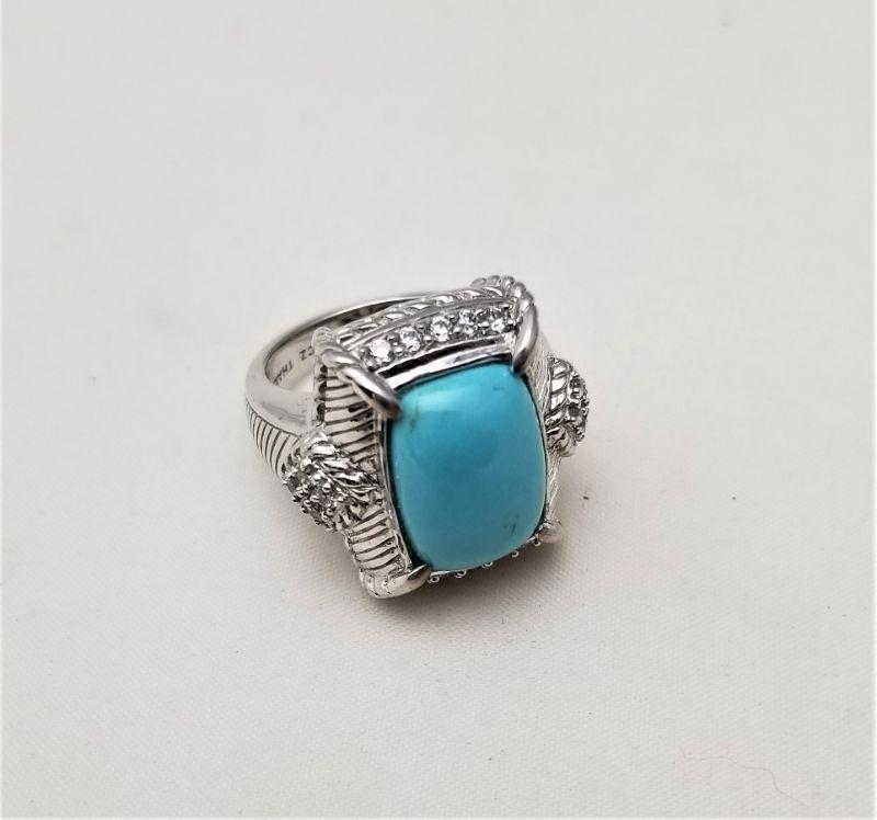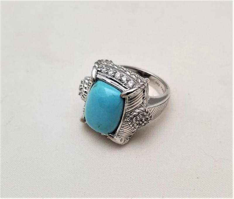 Lot #101 Judith Ripka Sterling Silver Ring set with Turquoise and CZs