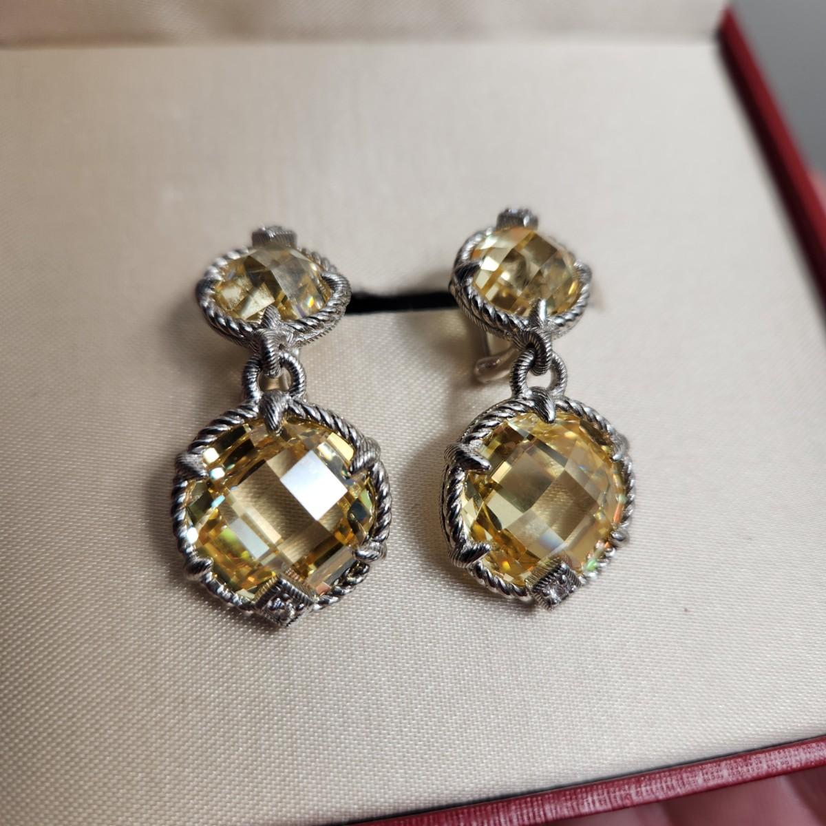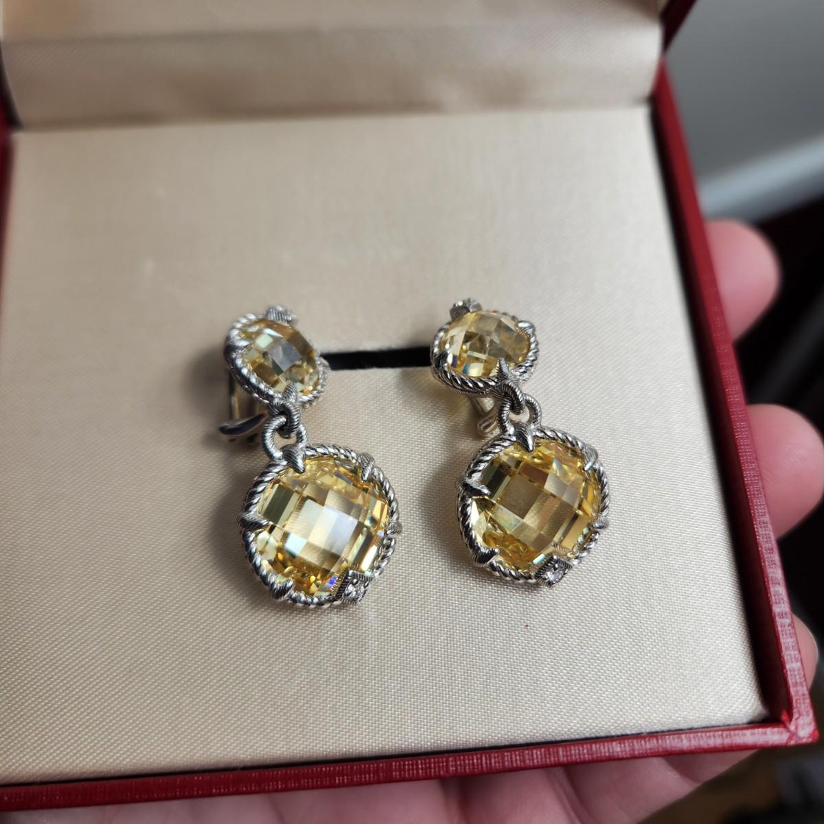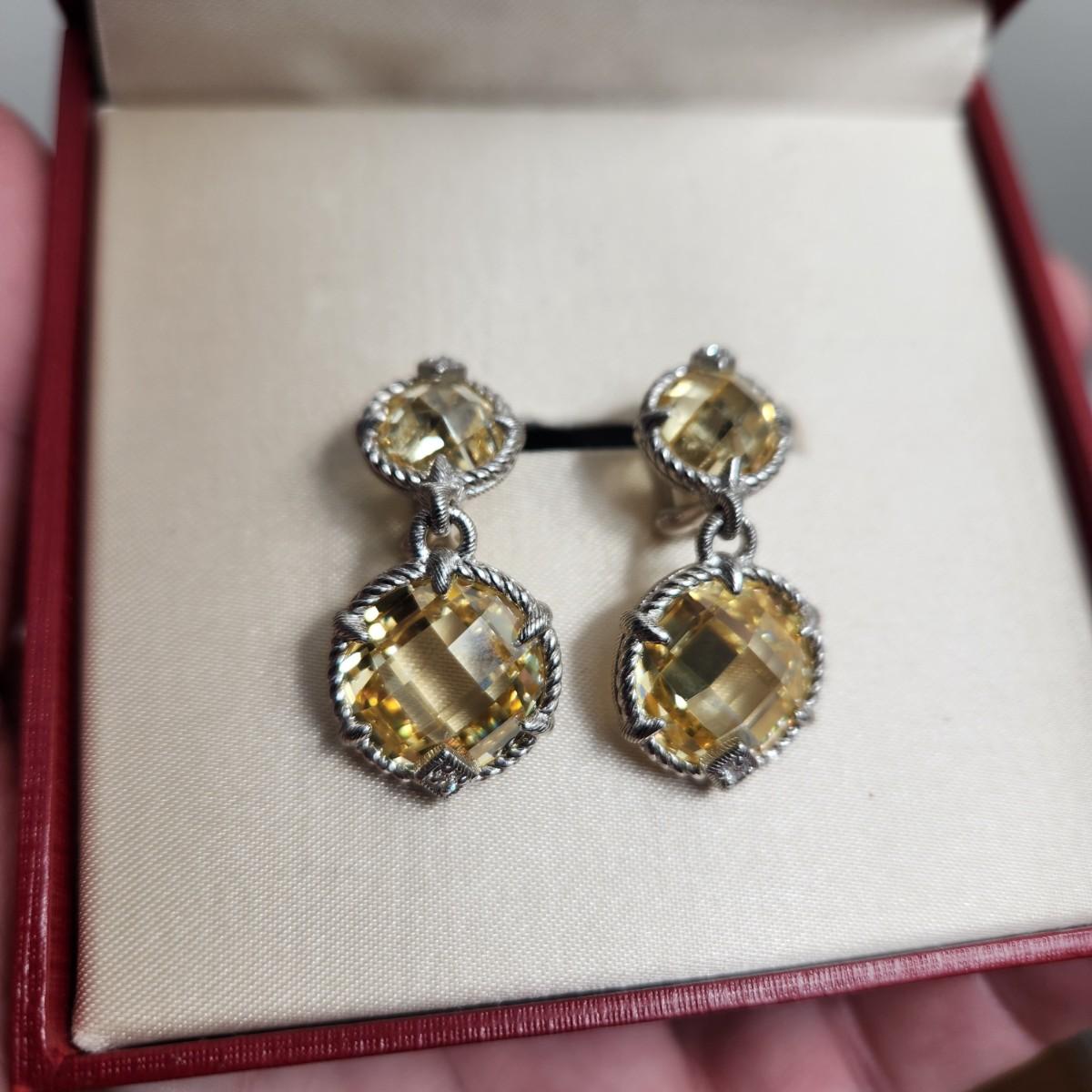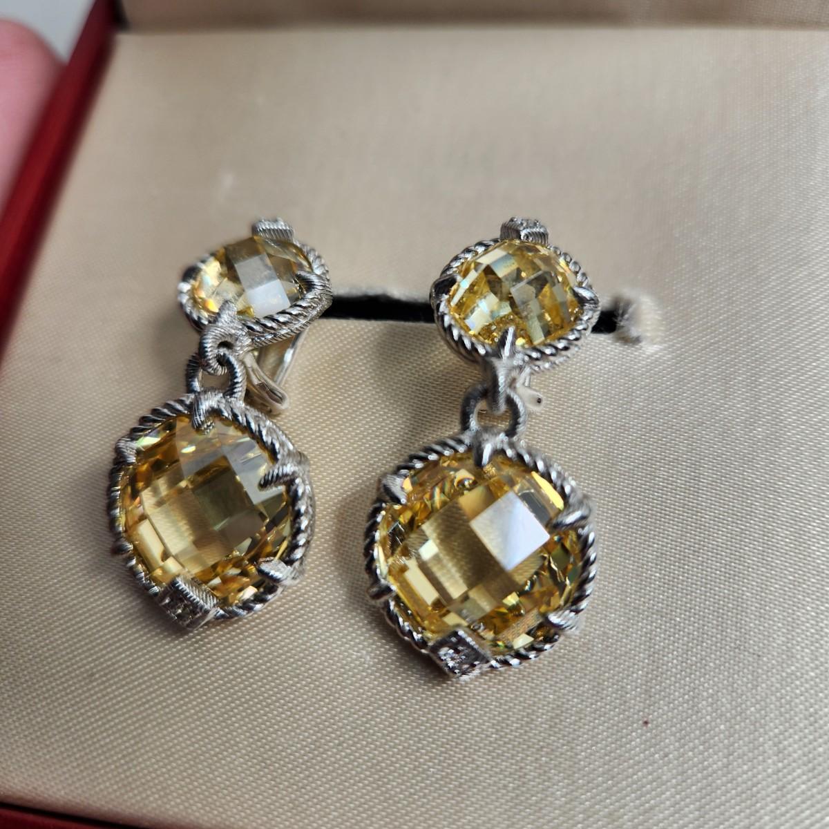 Judith Ripka Sterling Silver Yellow Cz Earrings