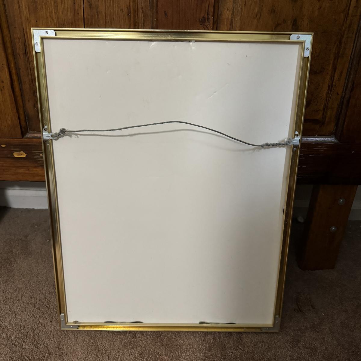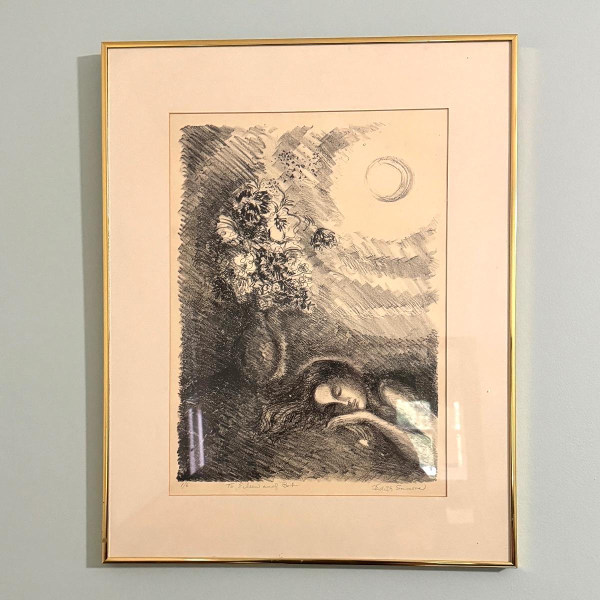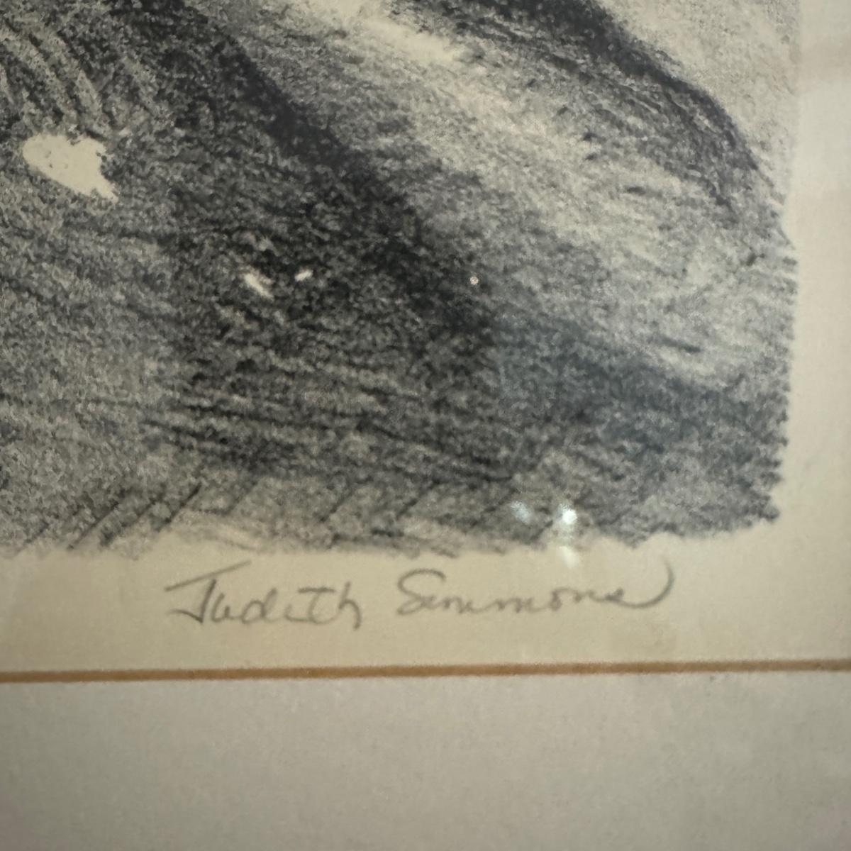 Gold metal framed artwork pencil signed by Judith Simmons. 1 of 6. Glass front. Measures 19” x 24”. Shipping Available. Shipping can be costly. We suggest contacting our preferred local shipping provider, Postage Express, with dimensions and getting an estimate before bidding: (828) 255-9250 or shipping@postageexpressnc.com.