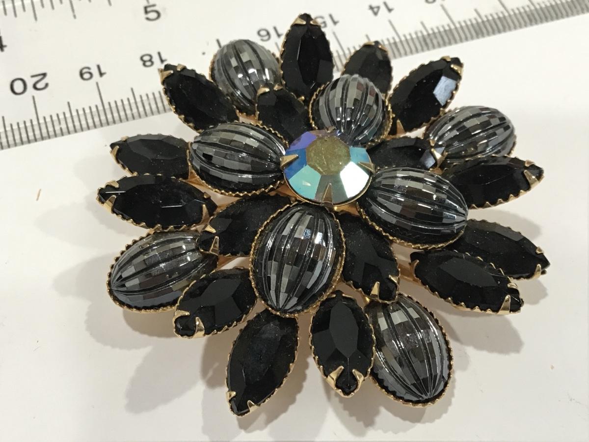 Judy Lee Rhinestone / HÉMATITE Brooch Marked