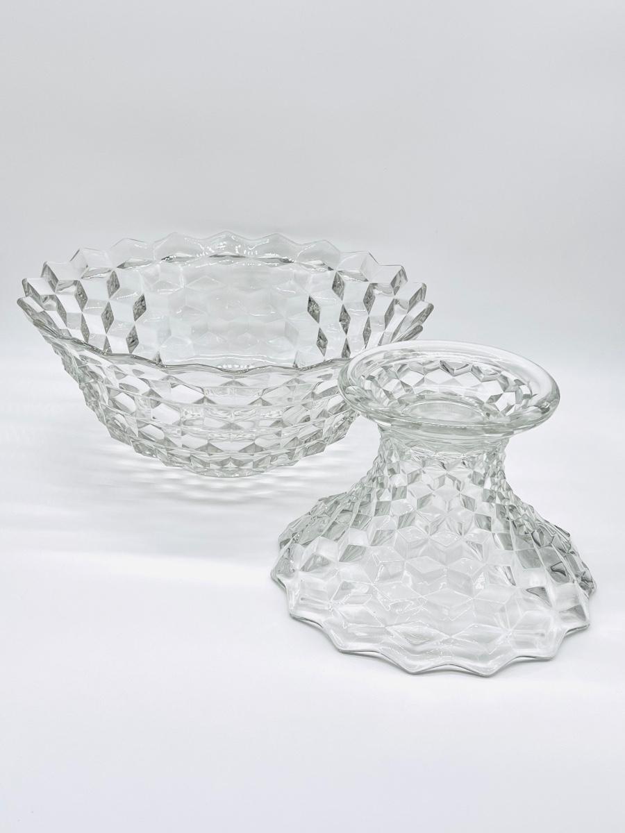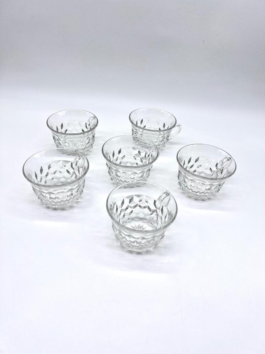 FOSTORIA ~ American ~ Glass Pedestal Punch Bowl & Six (6) Cups