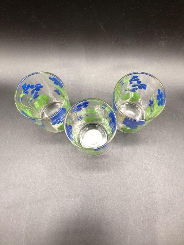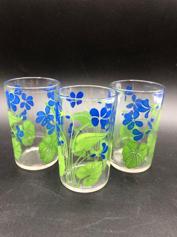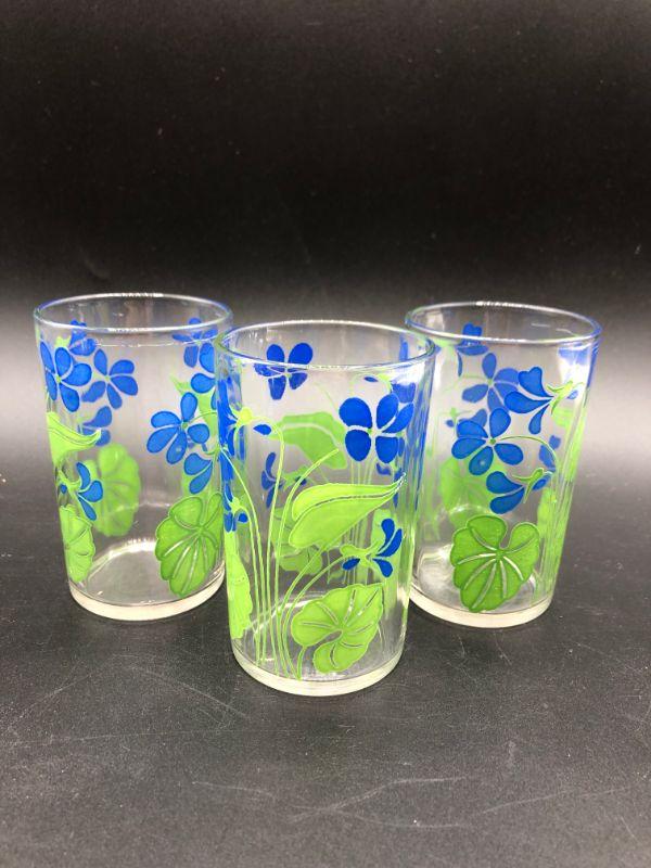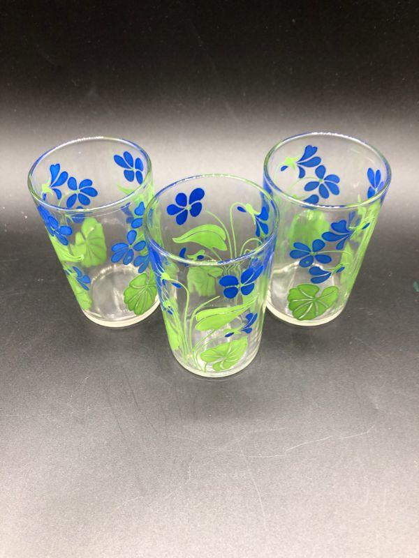 Vintage Swanky Swig Juice Glasses Blue Floral Set of 3
