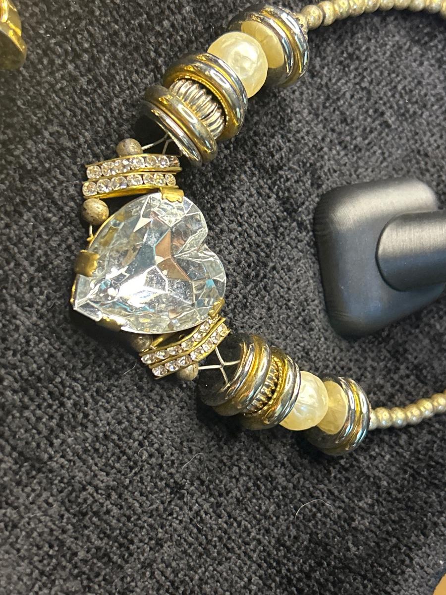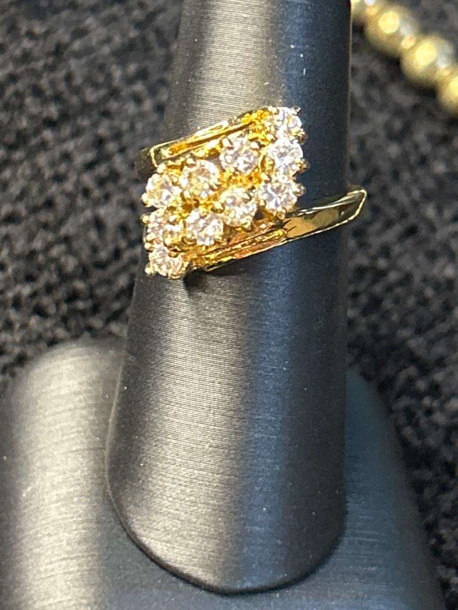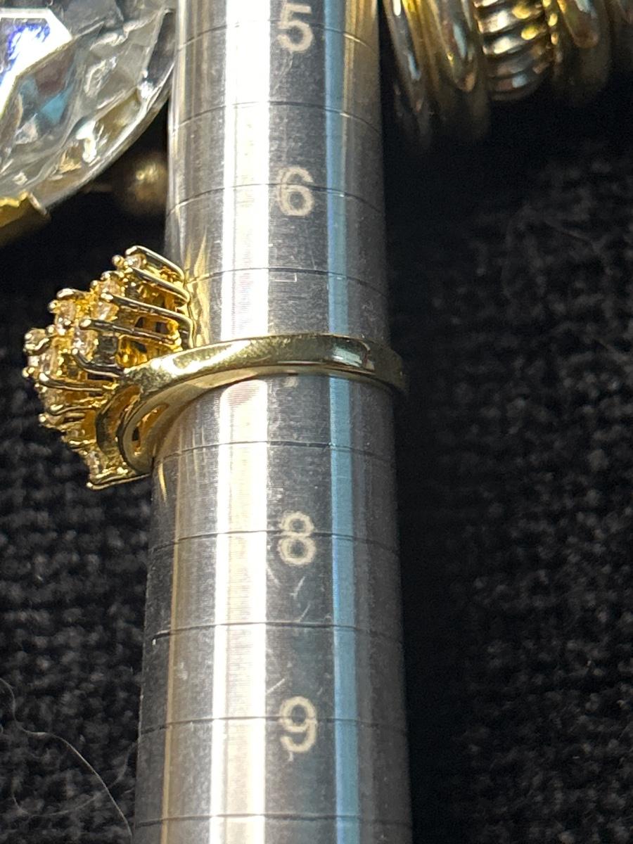 The items in the red boxes are pins and both 24 karat gold plated. The bracelet is lucite and the ring is stamped 925.