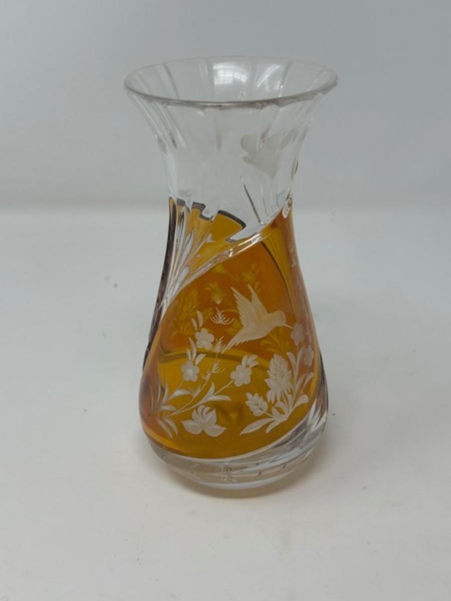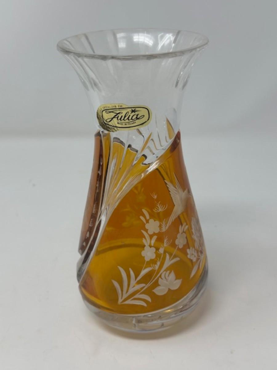 JULIA GLASSWORKS AMBER AND CRYSTAL VASE MADE IN 1960S POLAND