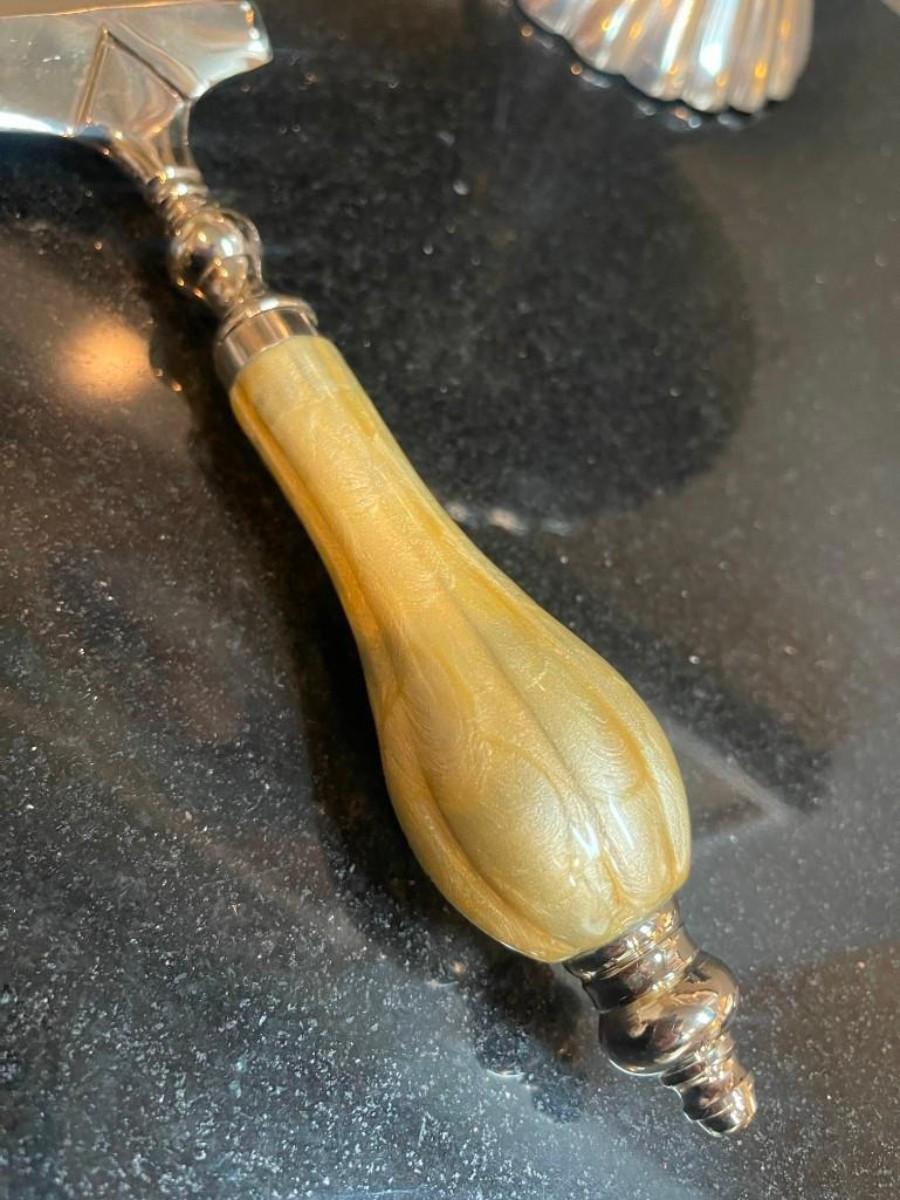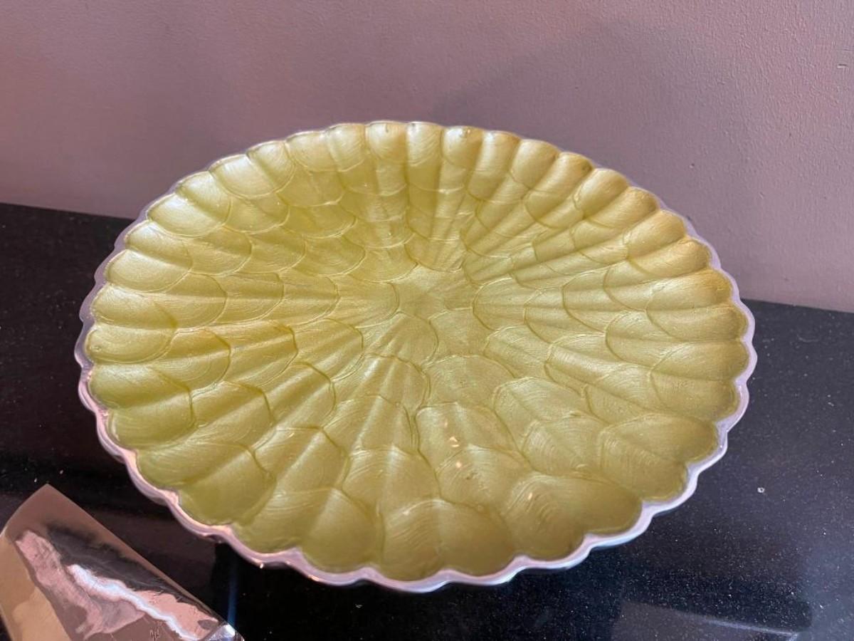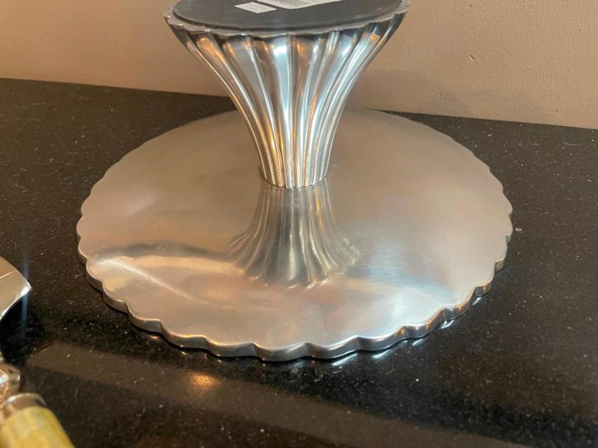 Julia Knight 10" Peony enameled metal, footed cake plate in like new condition with coordinating enameled handle cake server.