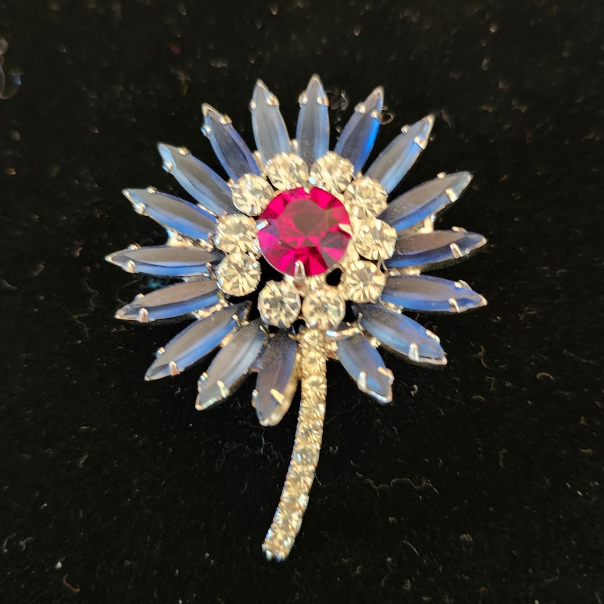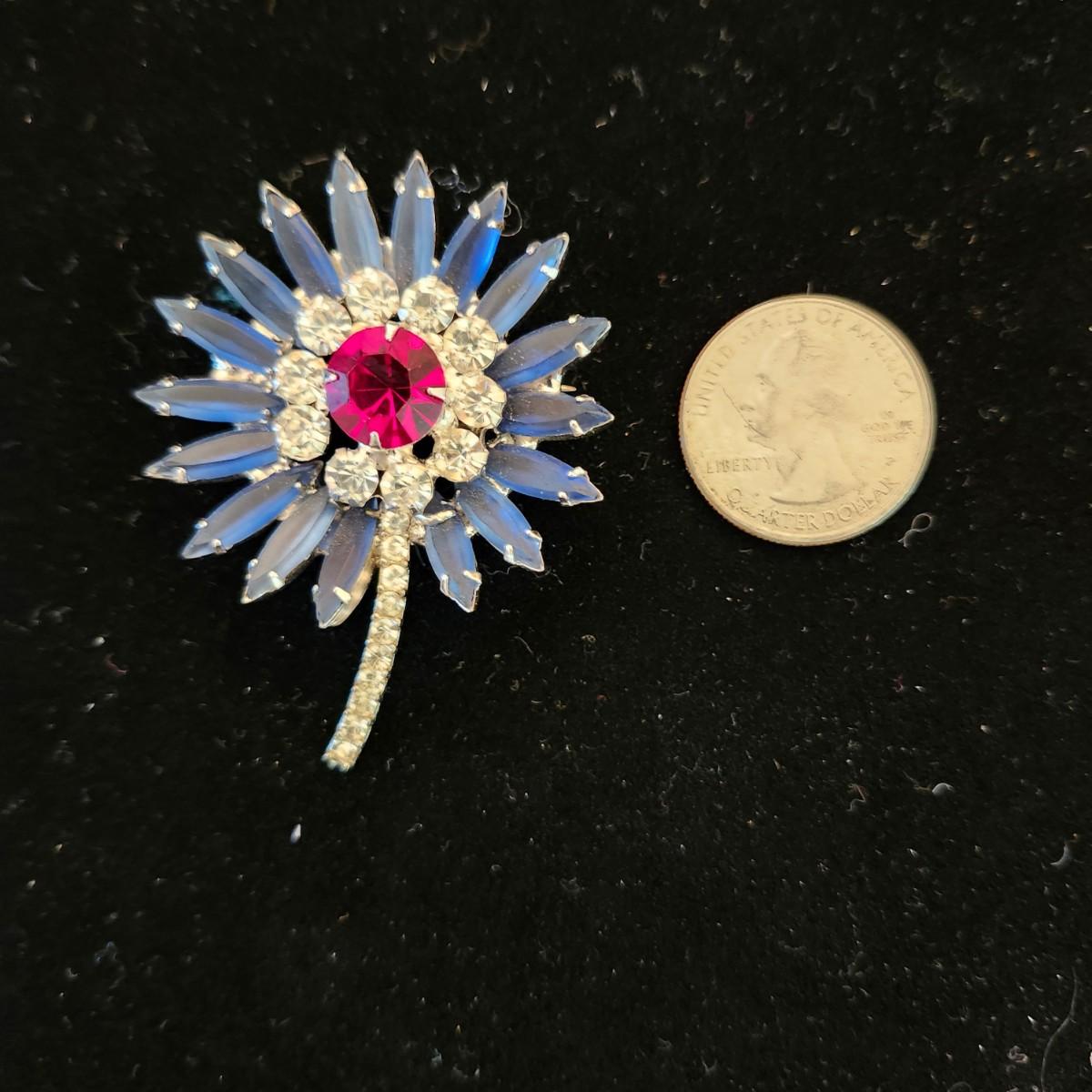 Lovely vintage stemmed flower pin with rhinestones. Good condition.