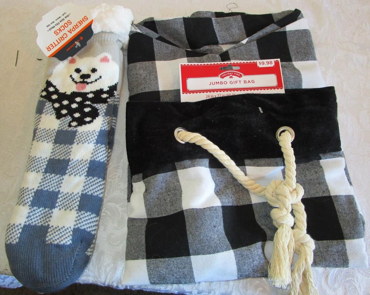 Jumbo gift bag; Sherpa Critter socks