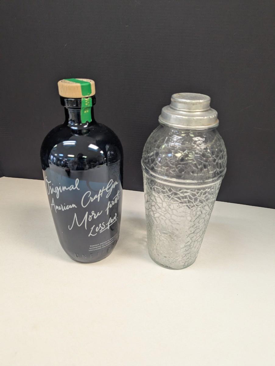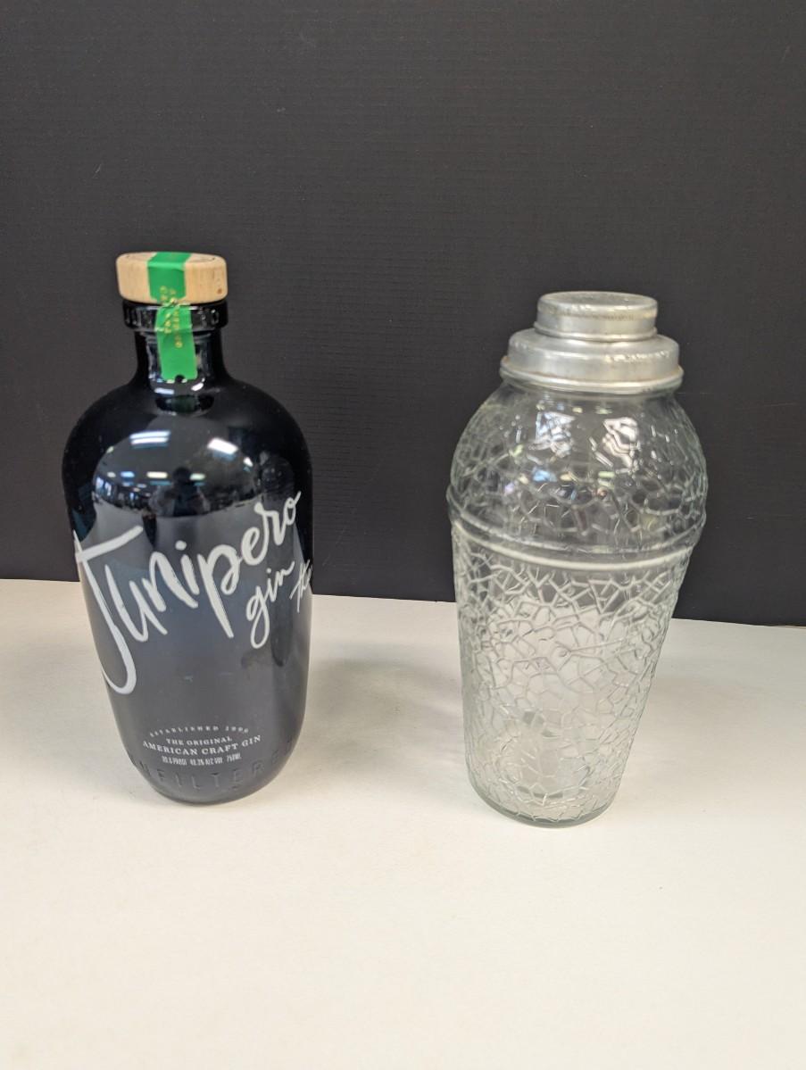 Jumipero Gin Bottle & Glass Cocktail Martini Shaker Crackle Glass w/ Lid
