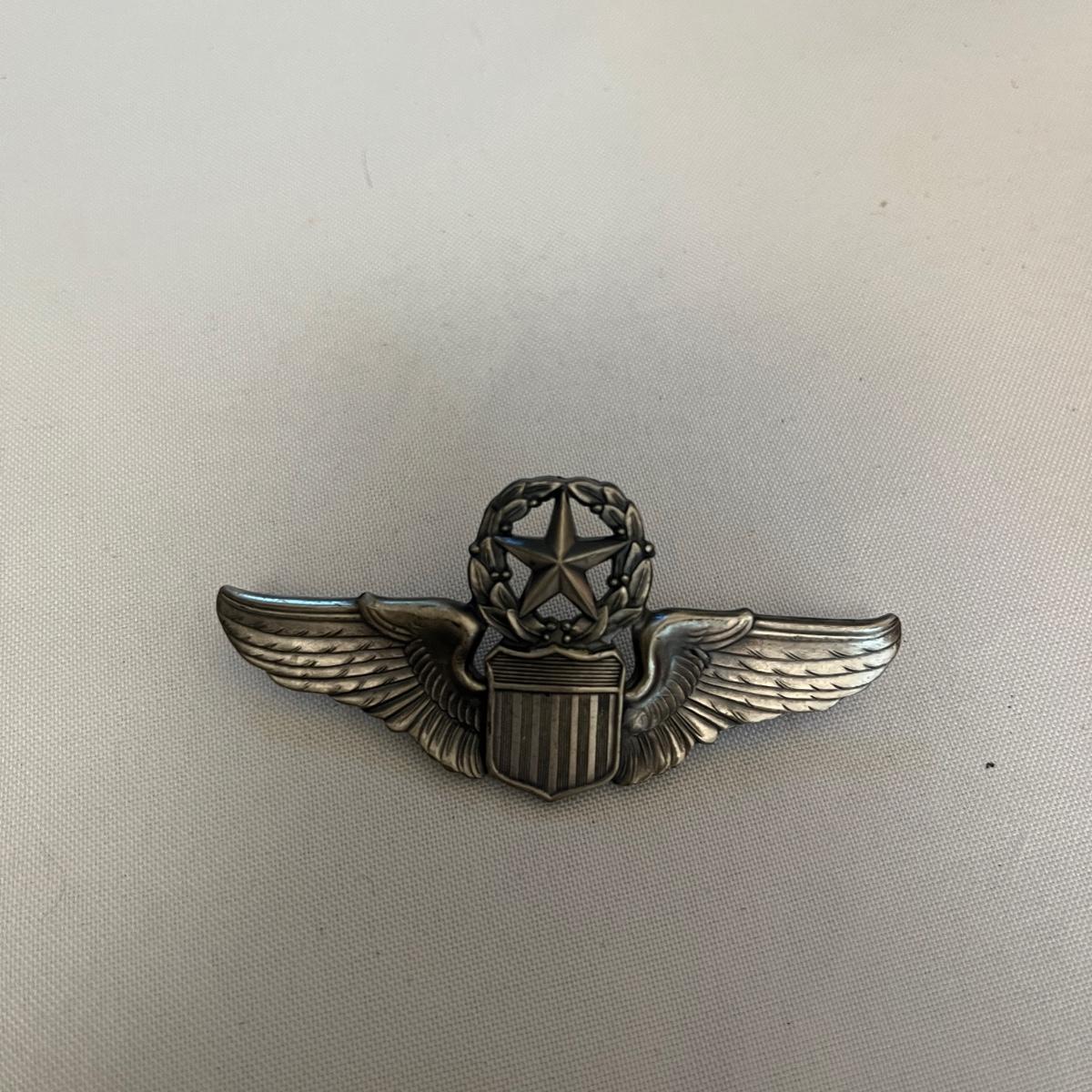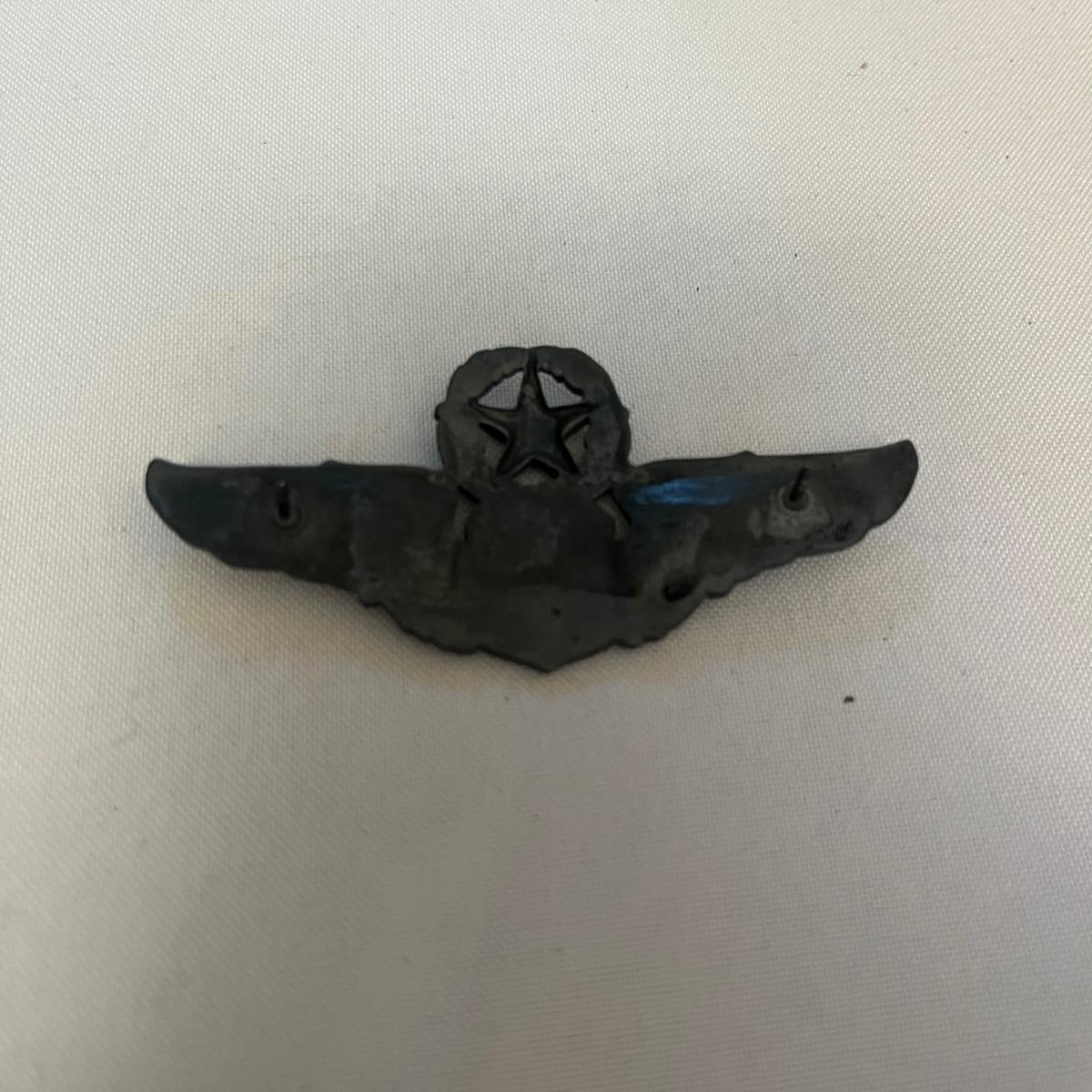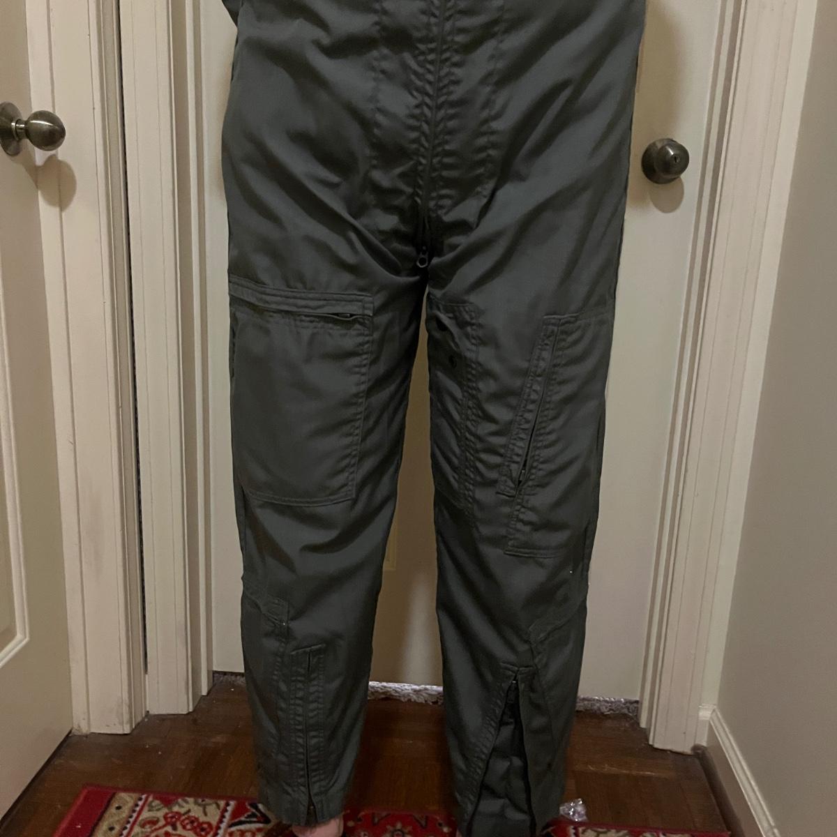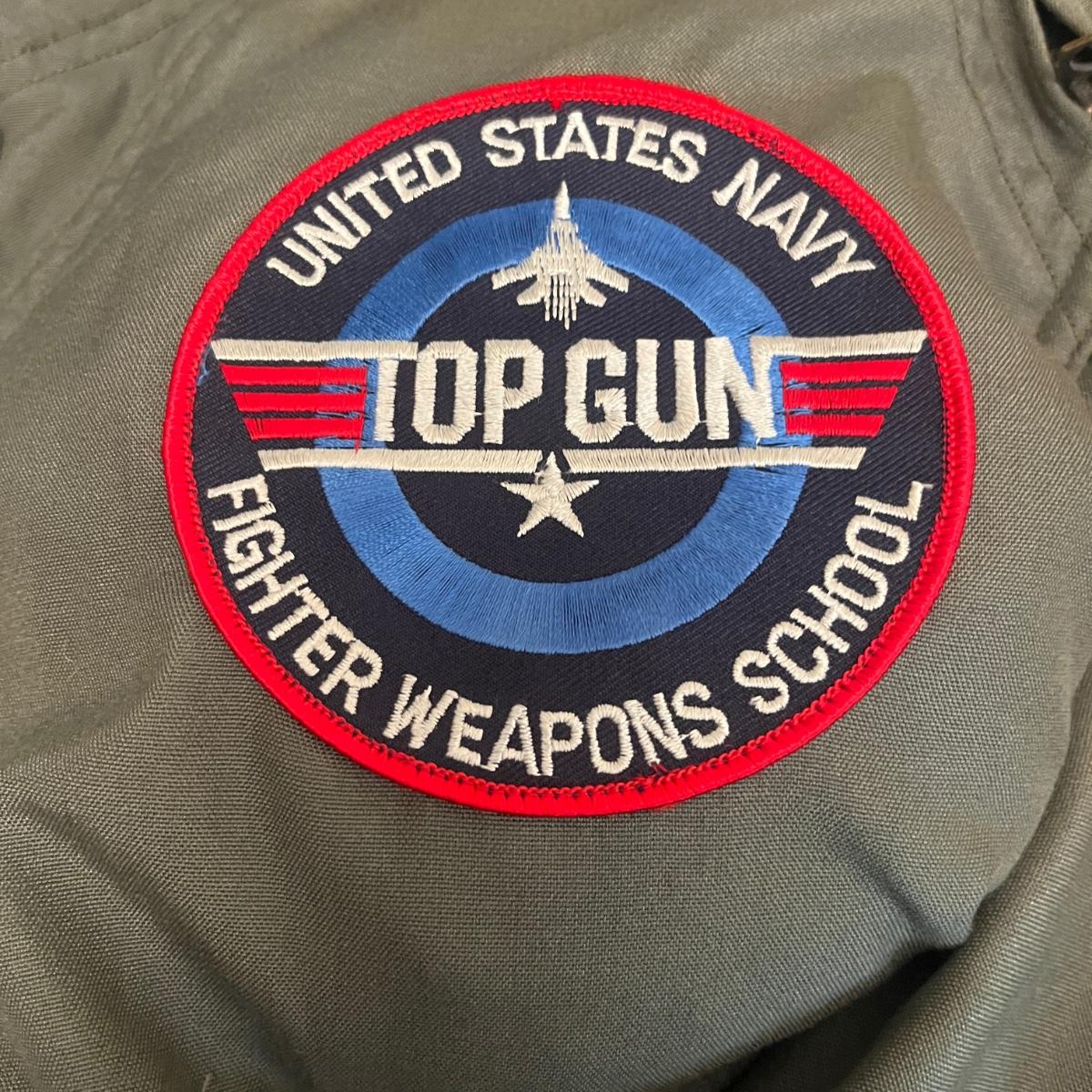 This jumpsuit has patches from Top Gun, Columbia, Air Force Academy, NASA, Gemini and Rapid Deployment Force. Jumpsuit measures 22” chest, 18” hips and 29” inseam. Also has a metal pair of wings.