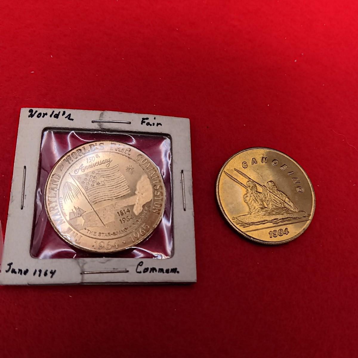 JUNE 1964 MARYLAND'S WORLD'S FAIR & 1984 OLYMPICS CANOEING COINS