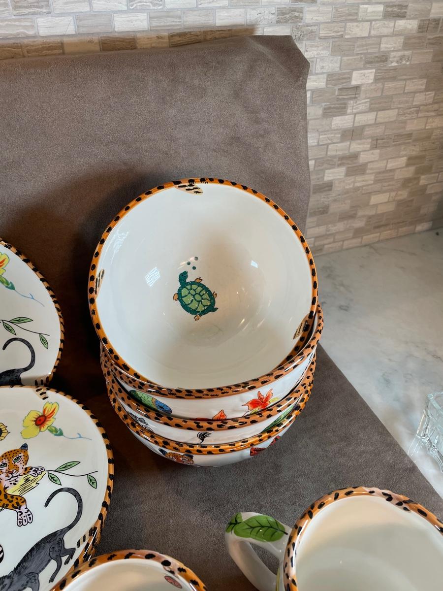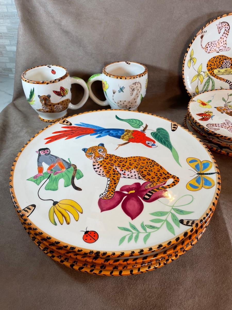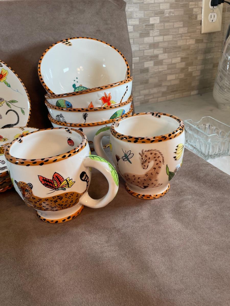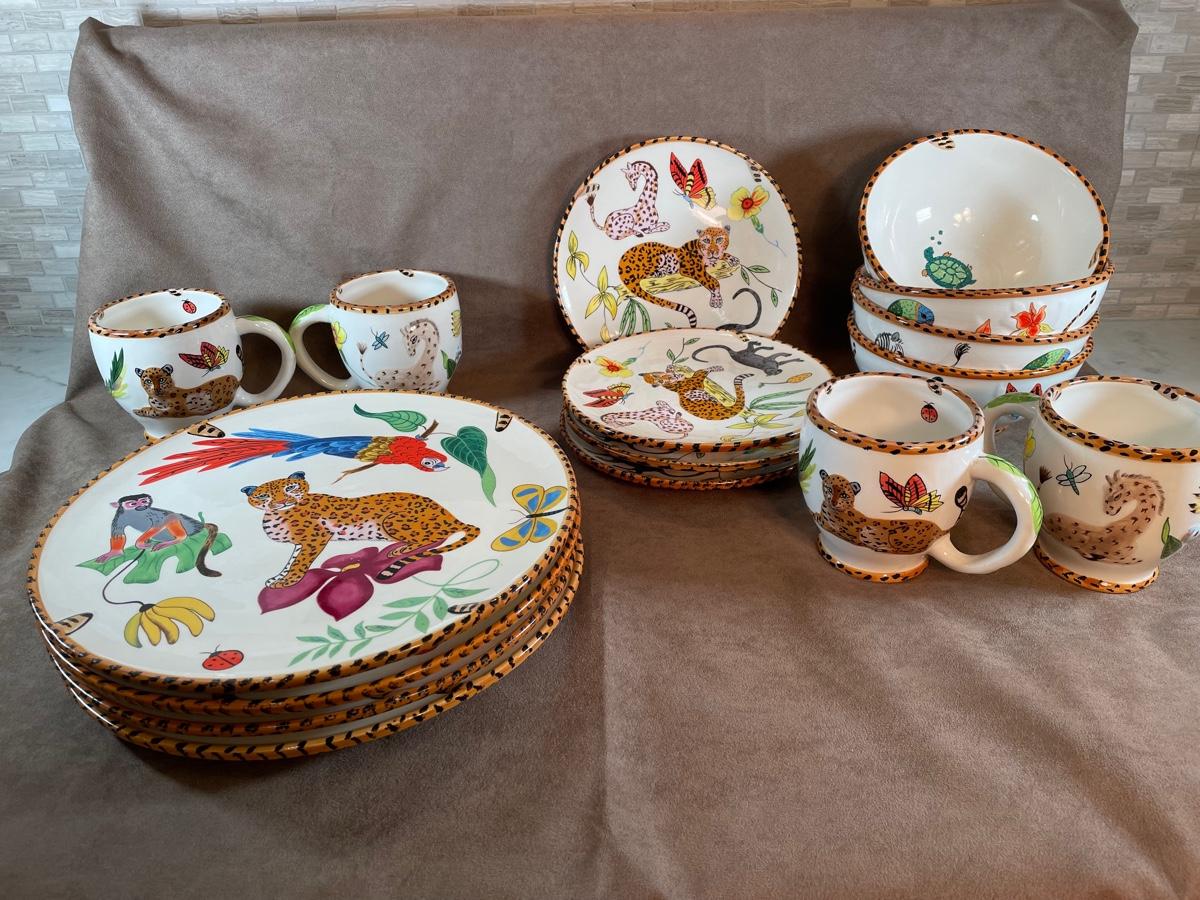 Set of four 4-piece place settings including 4 each of dinner plates, luncheon plates, bowls and mugs. Excellent condition. Reserve $200