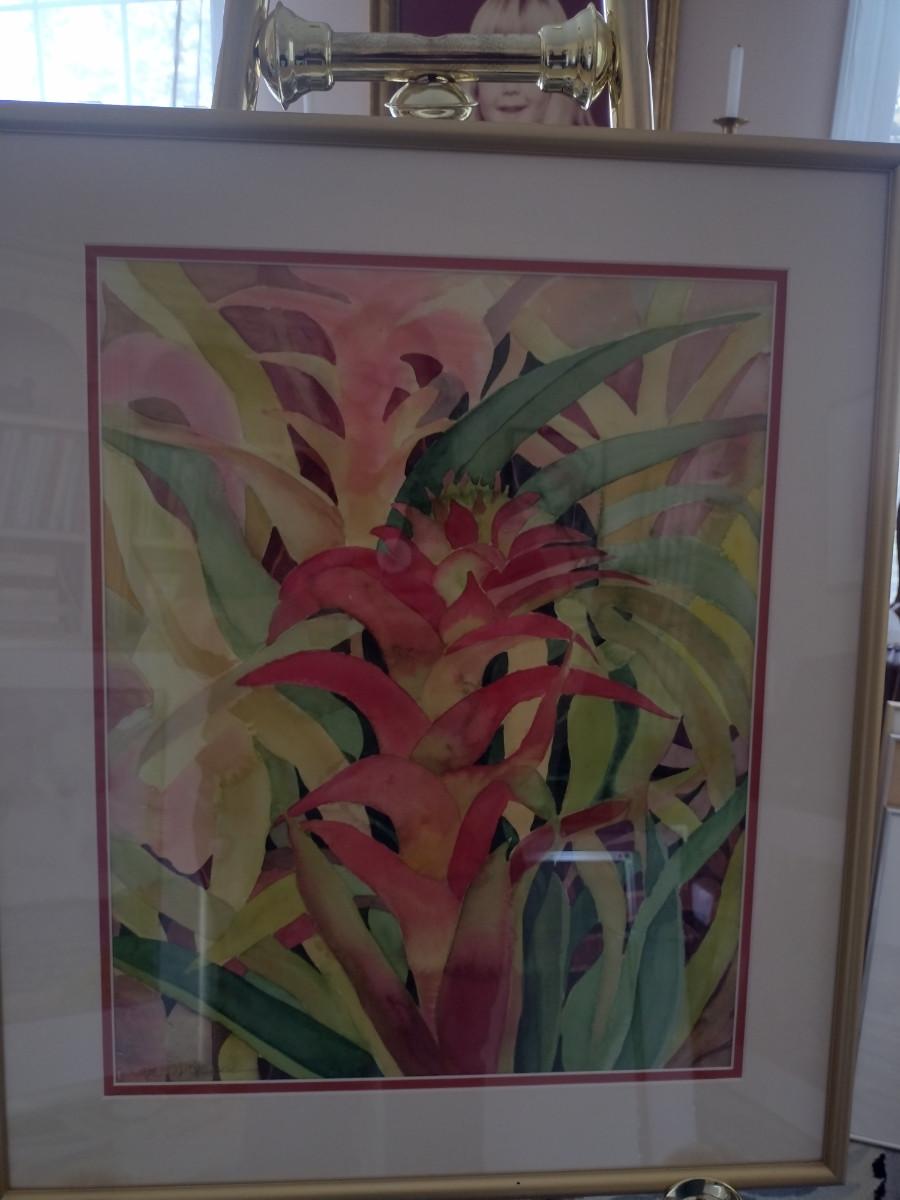 'Jungle Tangle' Original Framed Watercolor by Nationally Recognized Artist Susan Anderson. Item is framed under plexiglass.