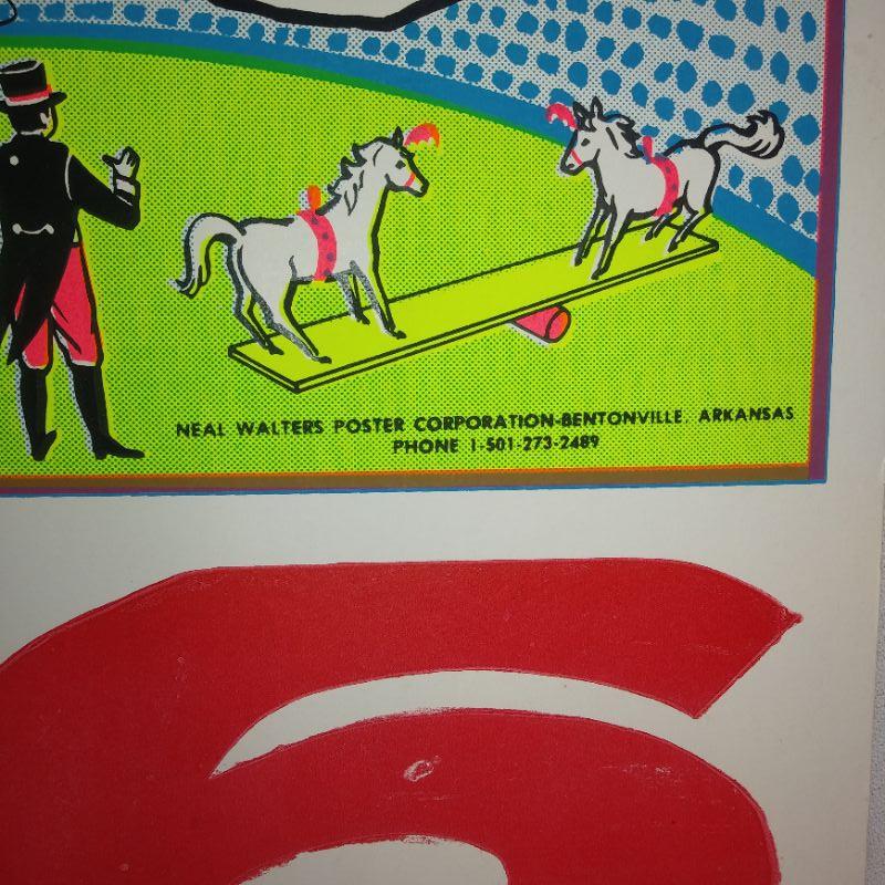 This vintage poster is in really great condition. Screen printed on cardboard and some of the paint is fluorescent and glows in the dark. It is 14-inches X 22-inches. This one is really neat. This is the type poster that would be posted in store windows or on telephone poles along the roadside when the circus was in town.