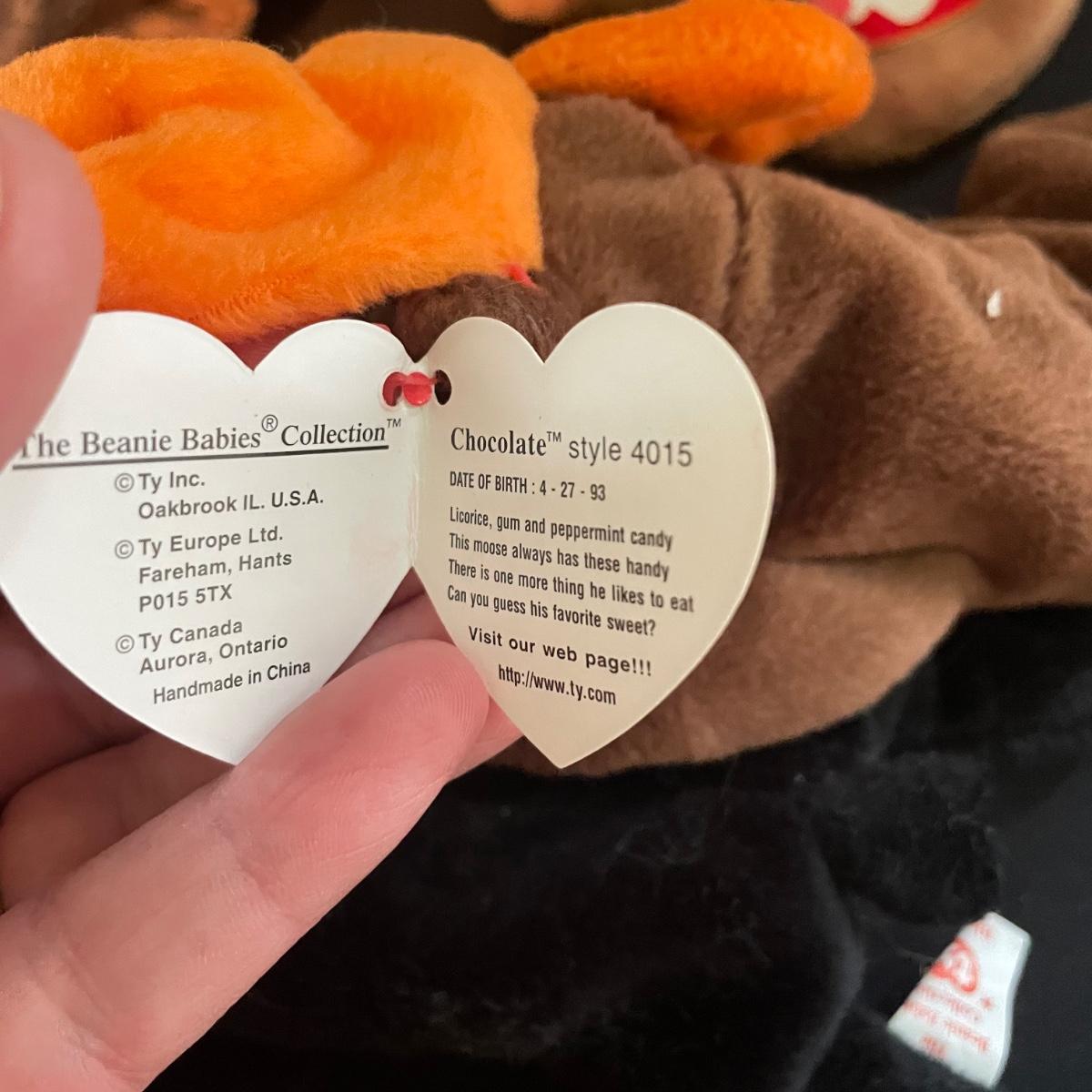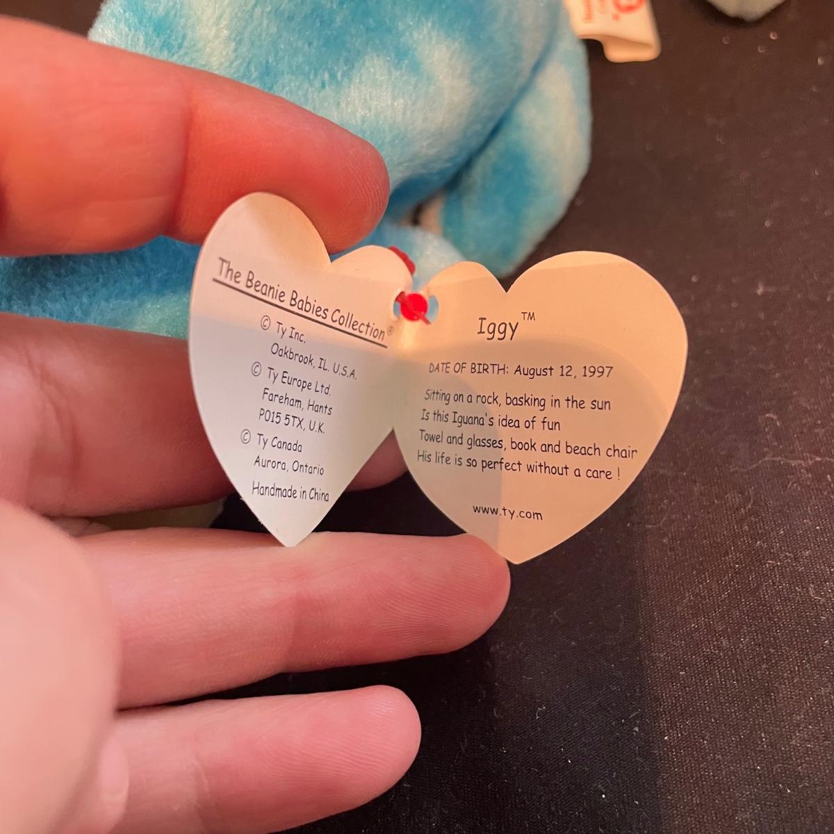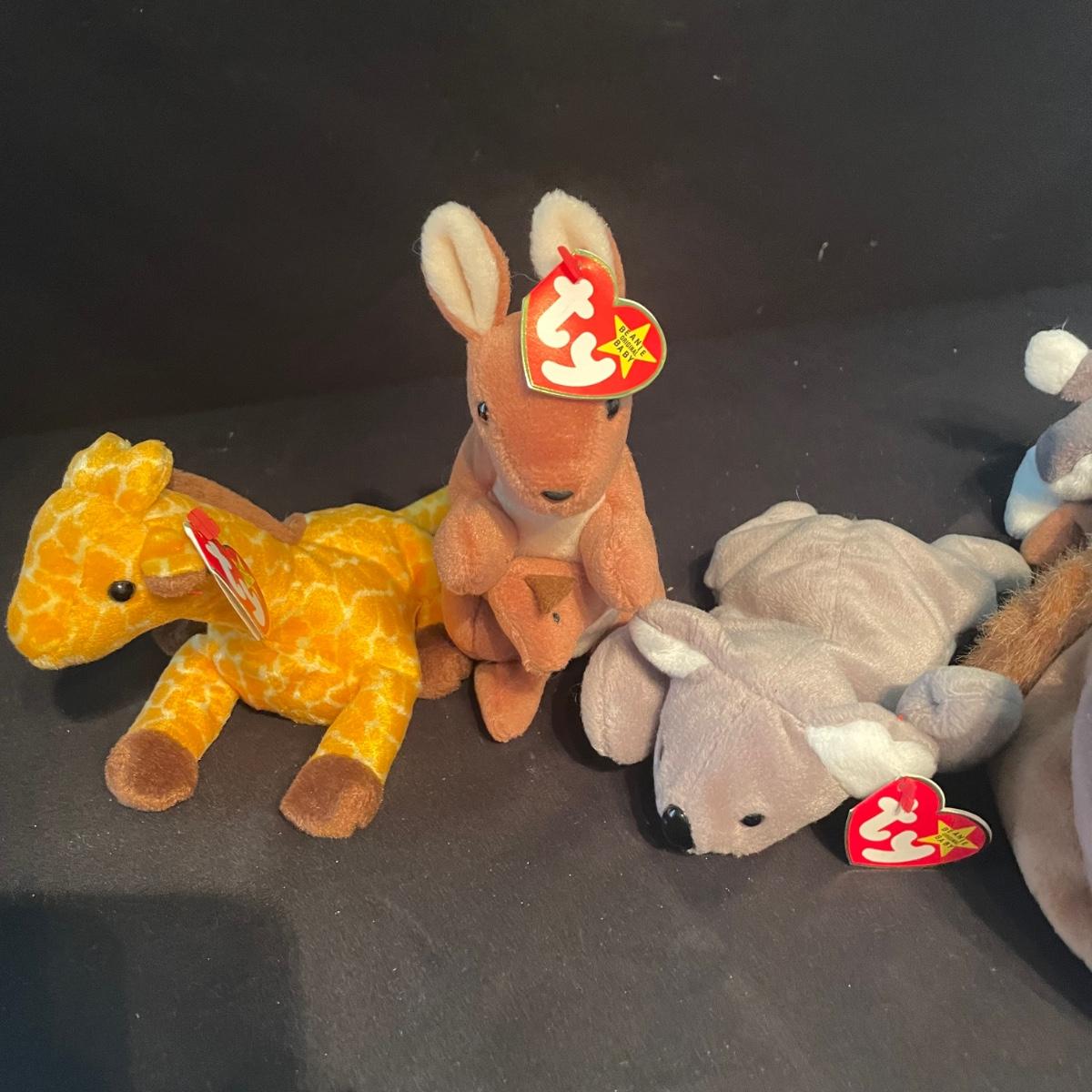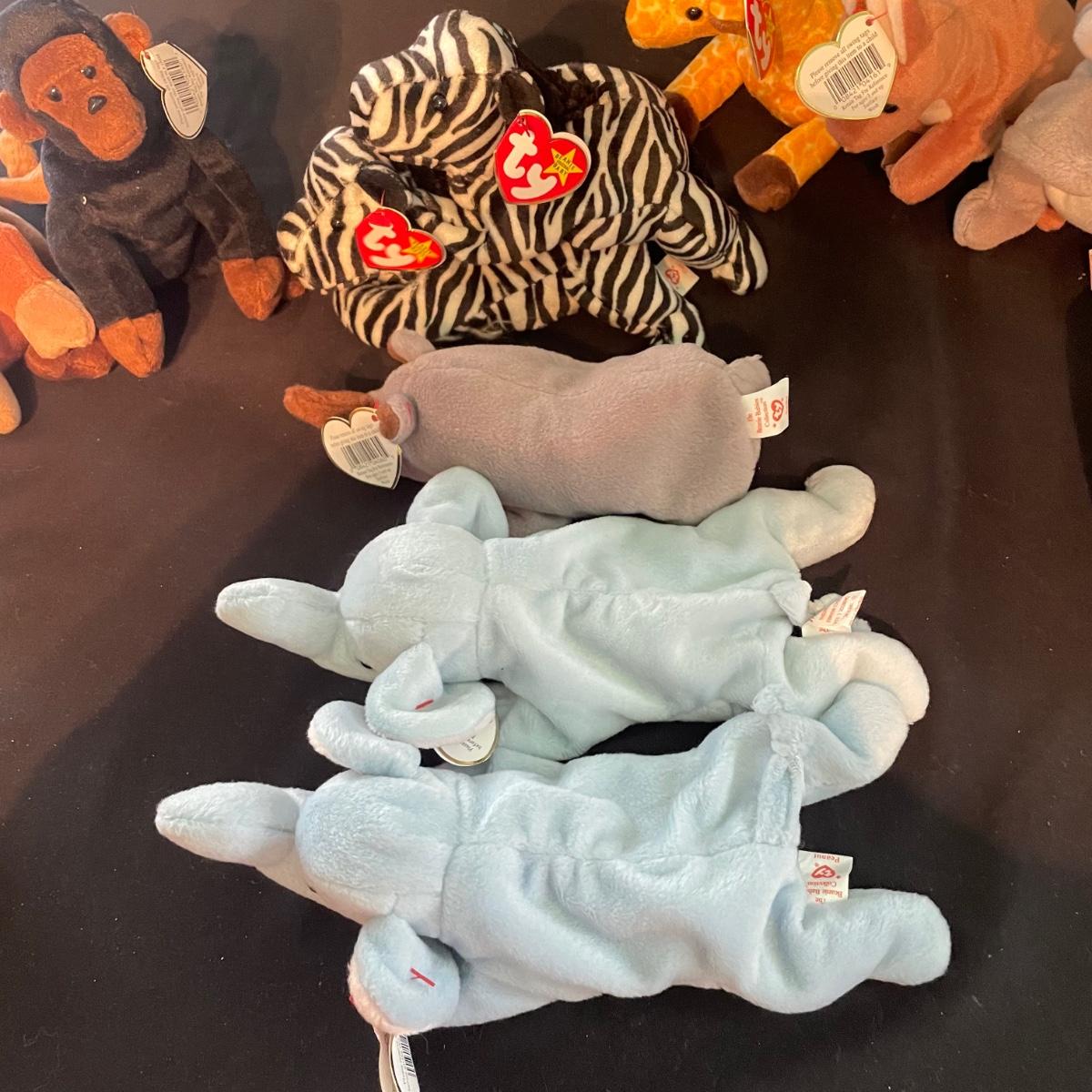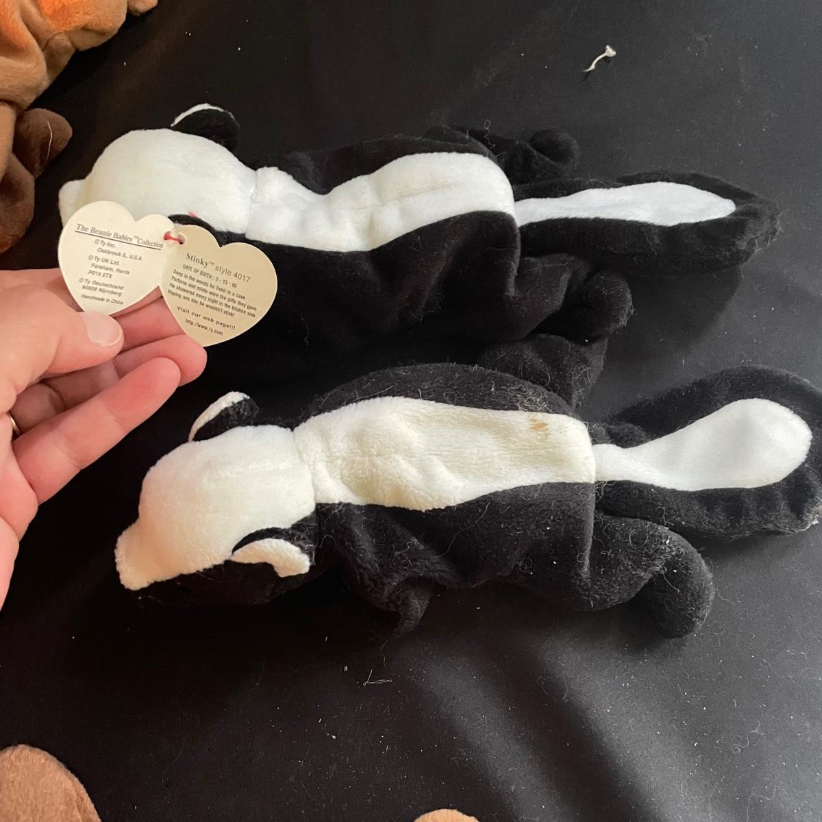 Over thirty Beanie Babies with tags including a 1997 Iggy, Hissy. Most animals are from 1995 and 1996. Cubbie and Chocolate are the oldest from 1993. There is one Stinky without tags and a spot on its back, see photos. The rest appear to be without blemishes and have the original TY tags. See images. Shipping available.