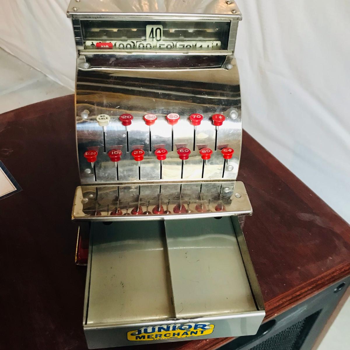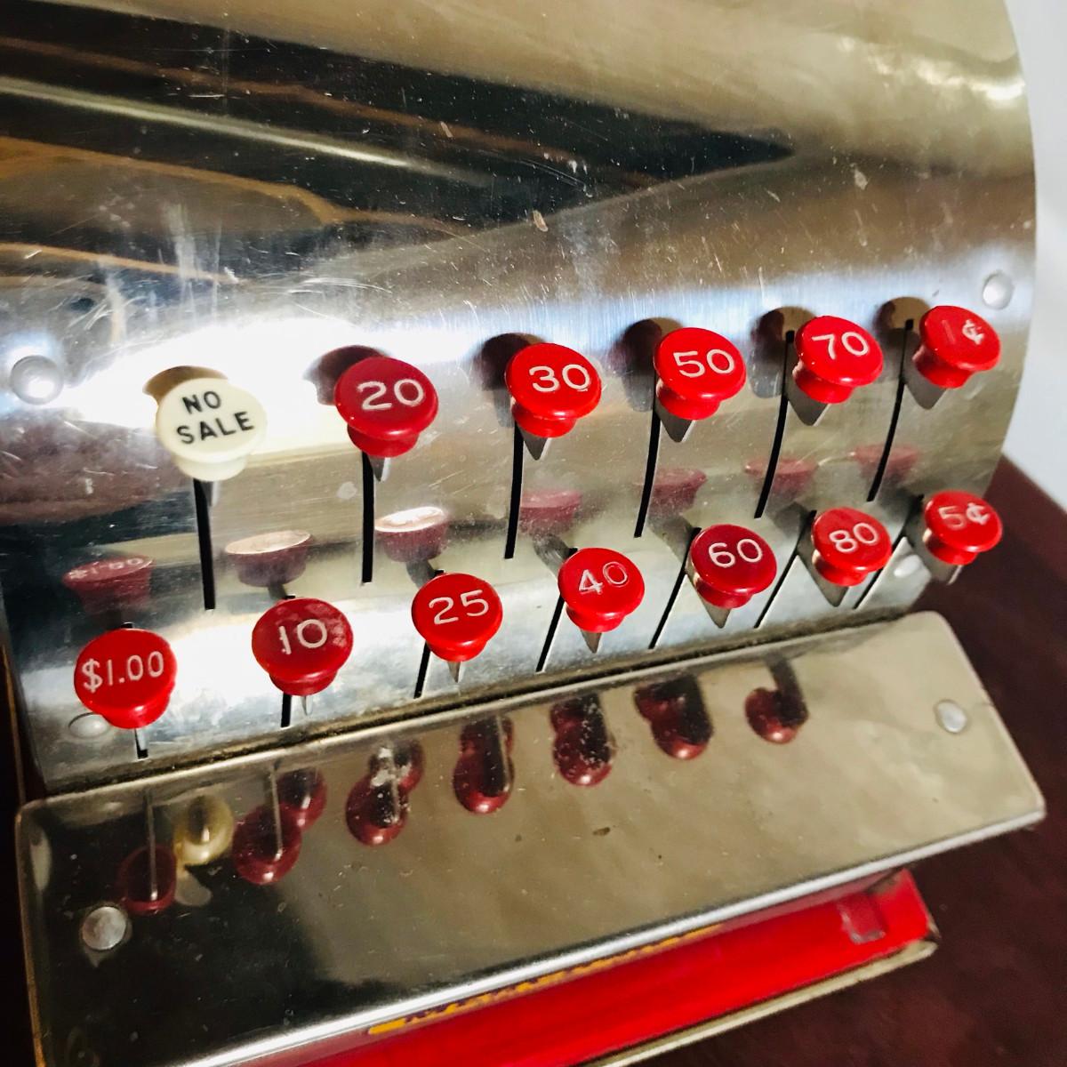 There is some design on back, not original. Can be removed. Cash register in good condition otherwise!