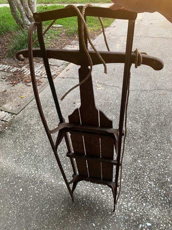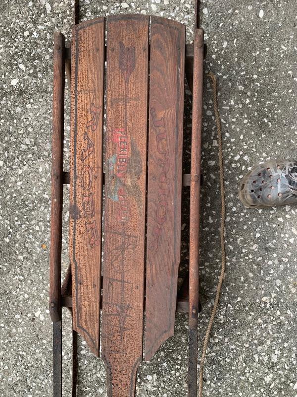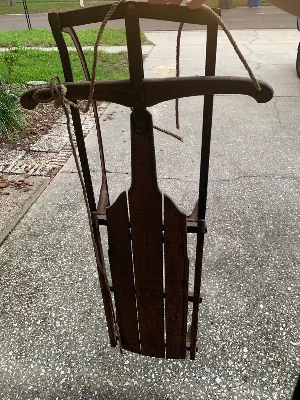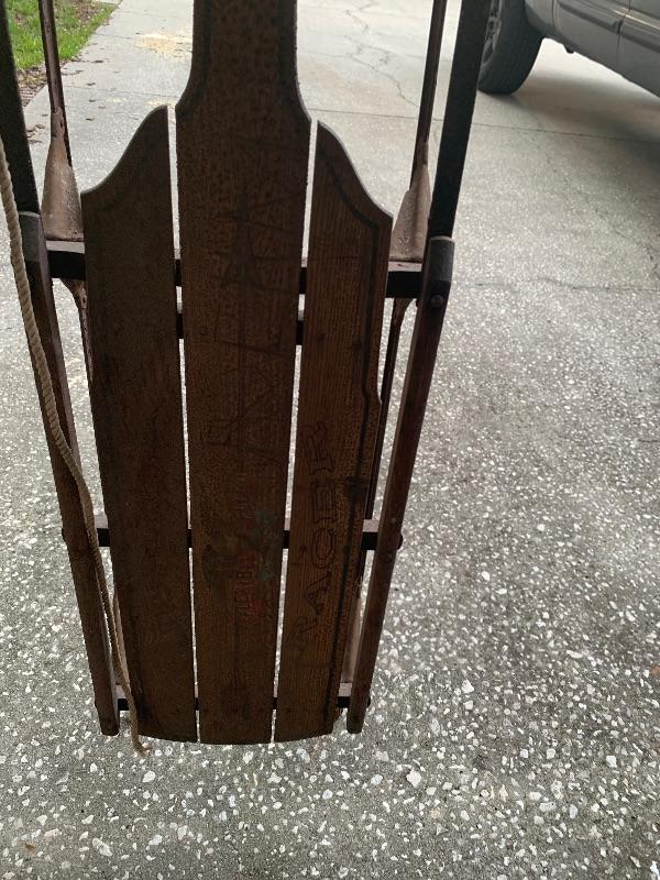 Vintage junior racing sleigh! Awesome piece in still great condition! Small rust at ends in the back but nothing bad.