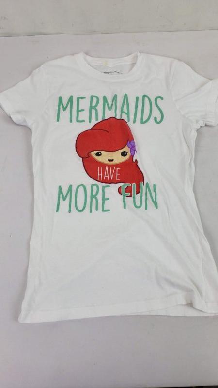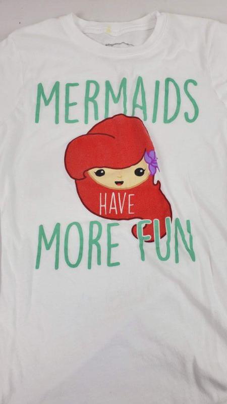 Junior Size Small Mermaids Have More Fun Shirt, Stain on Inside of Collar
