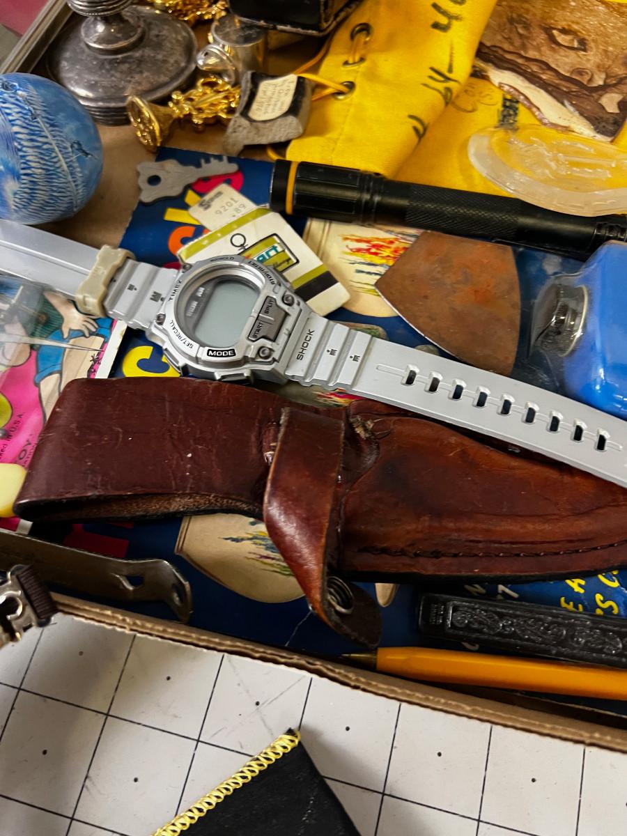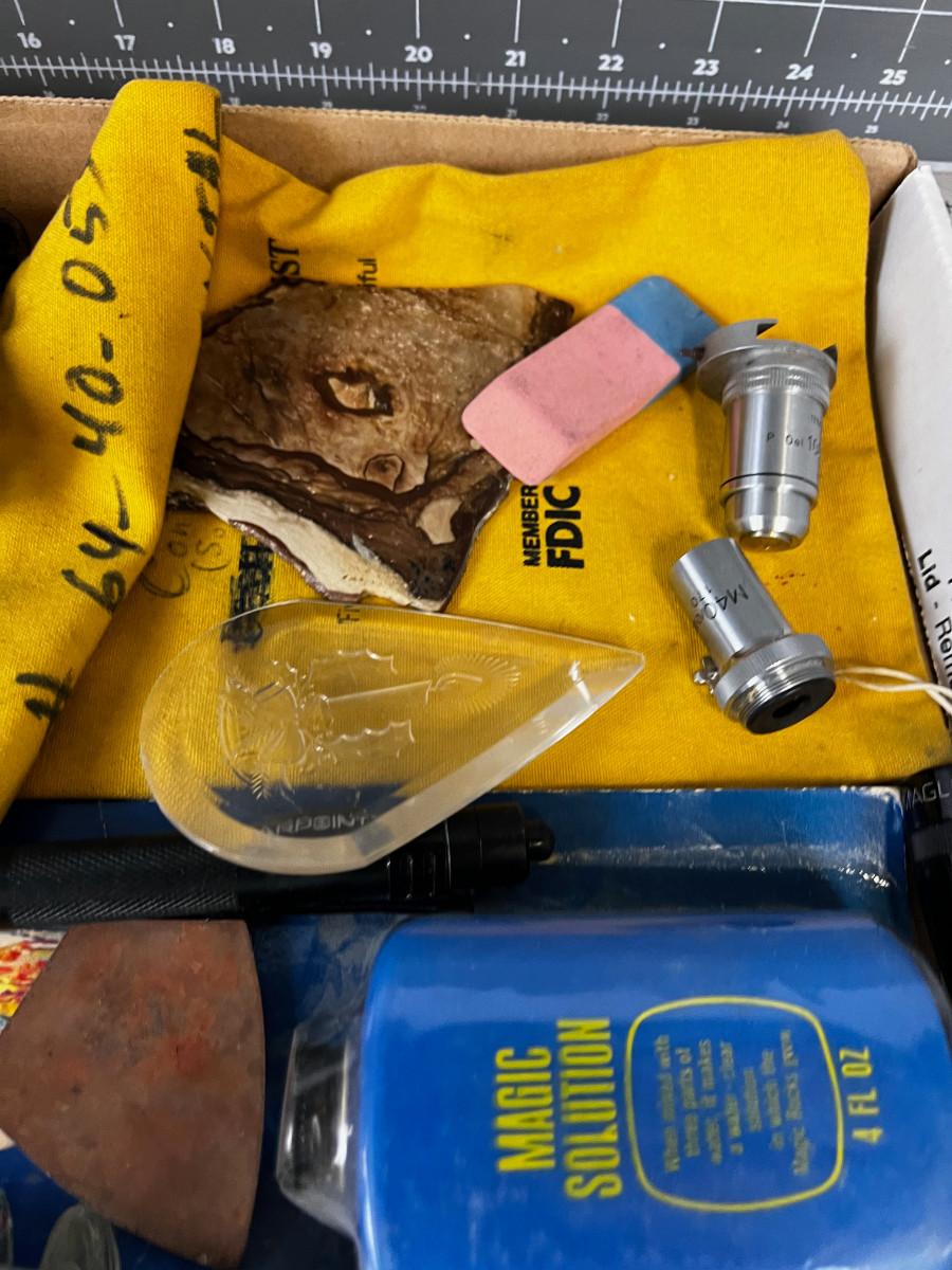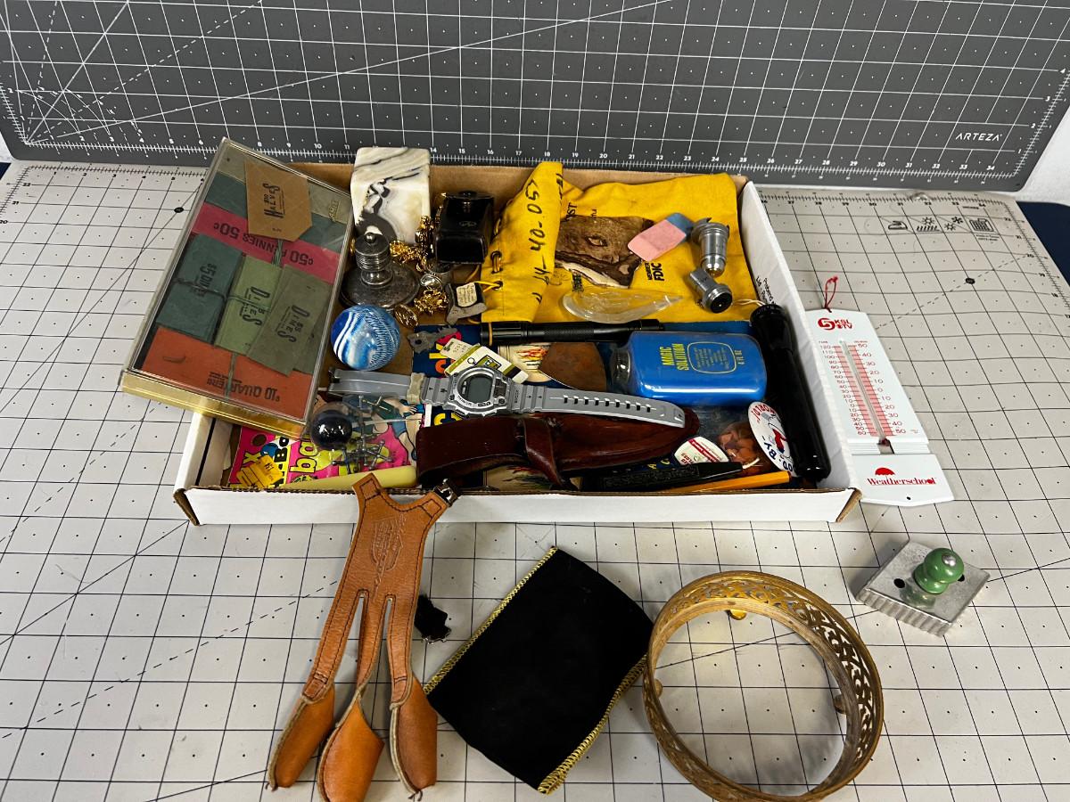 Junk Drawer Clean out: Paper Weight, Knife sheath, Bank Bag, Super Ball