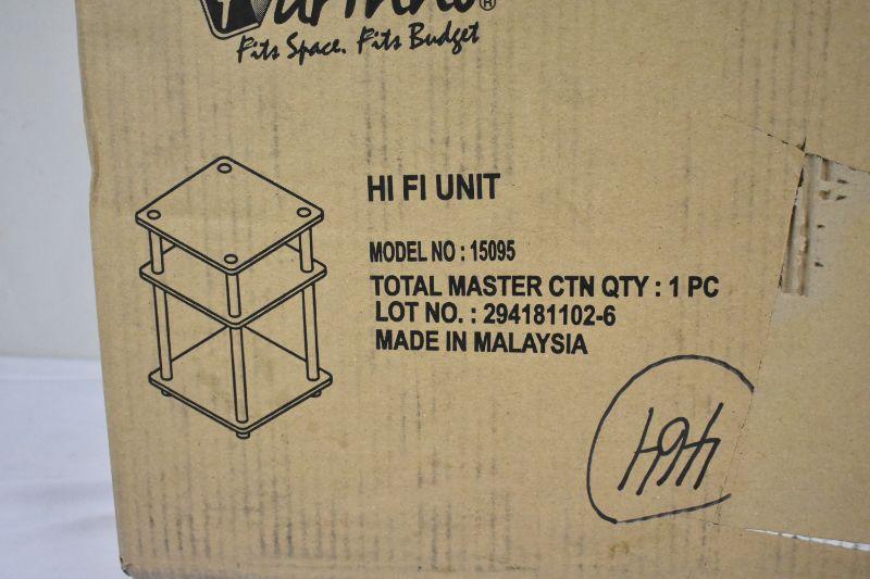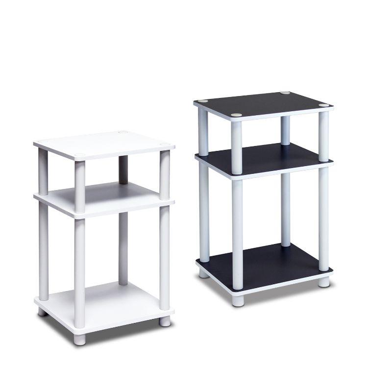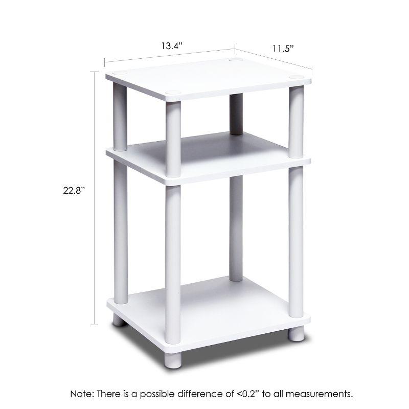 Just 3-Tier No Tools Tube End Table, White w/White Tube, Set of 2, Furinno - New