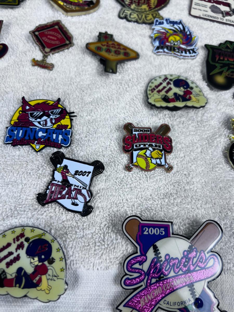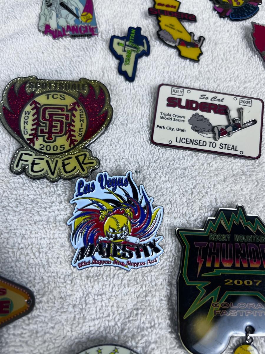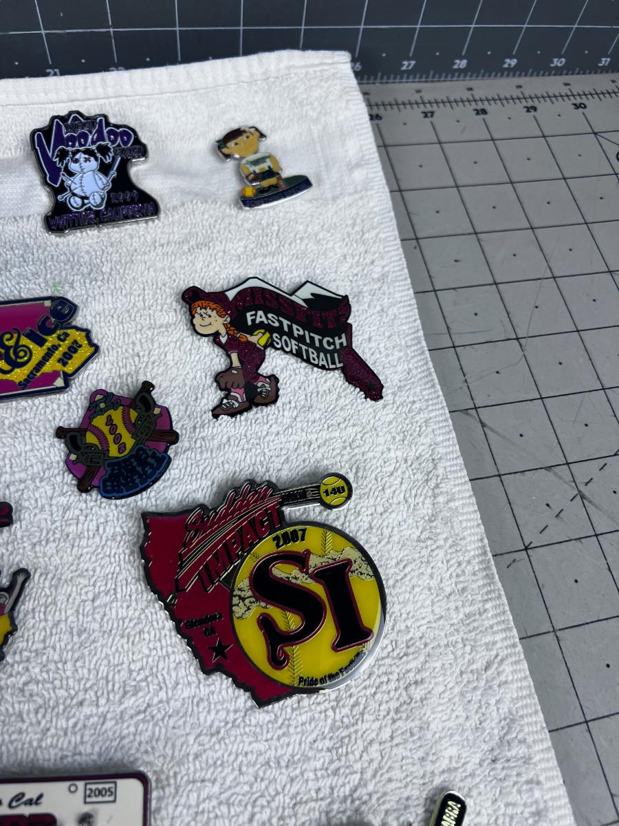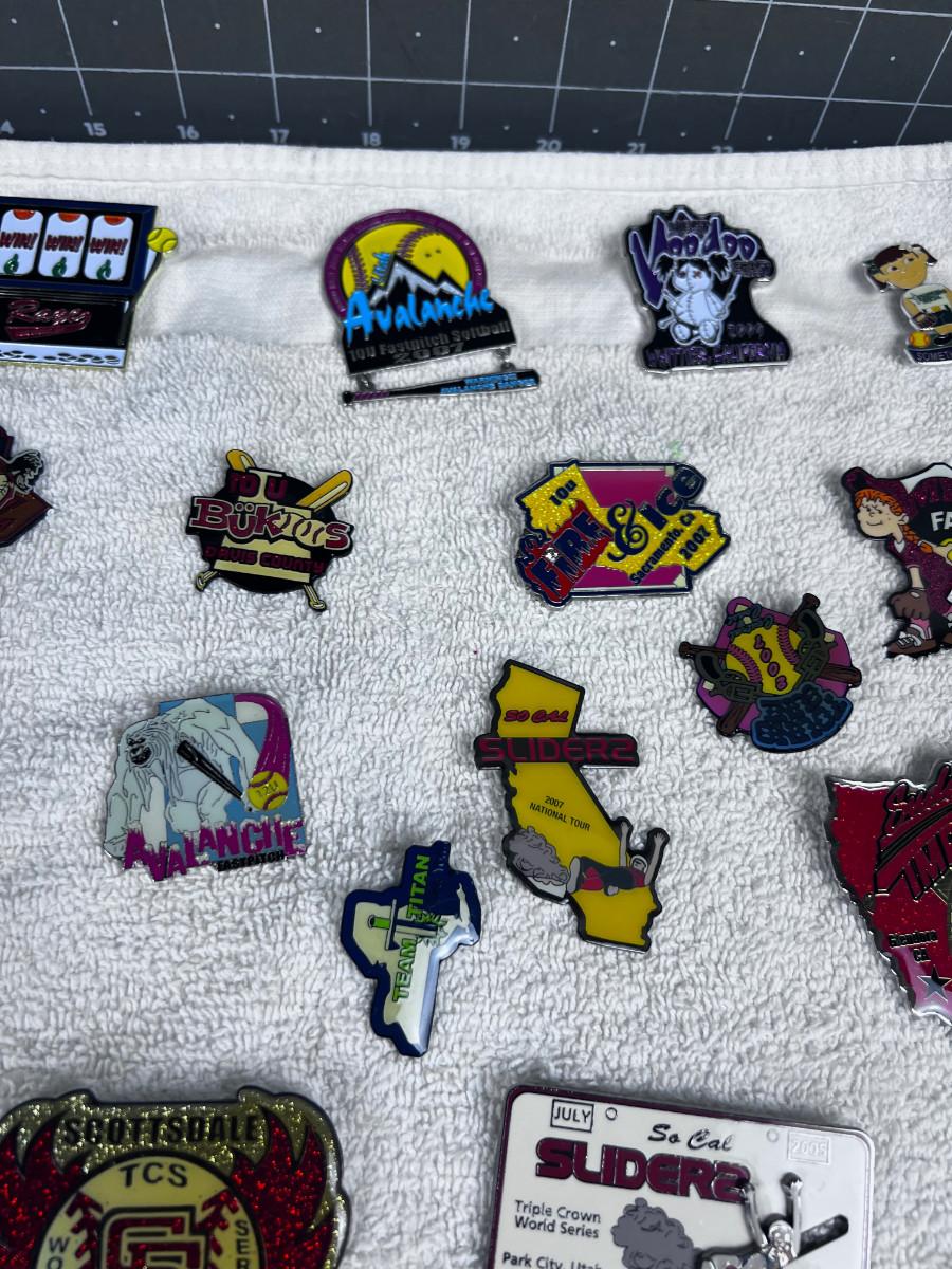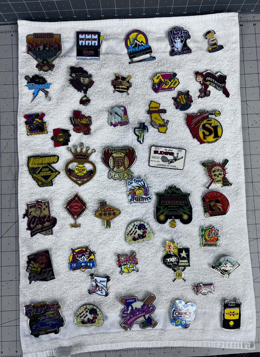 Just a towel of Pins from 2005,2006 and 2007 Women's Fast Pitch Softball.