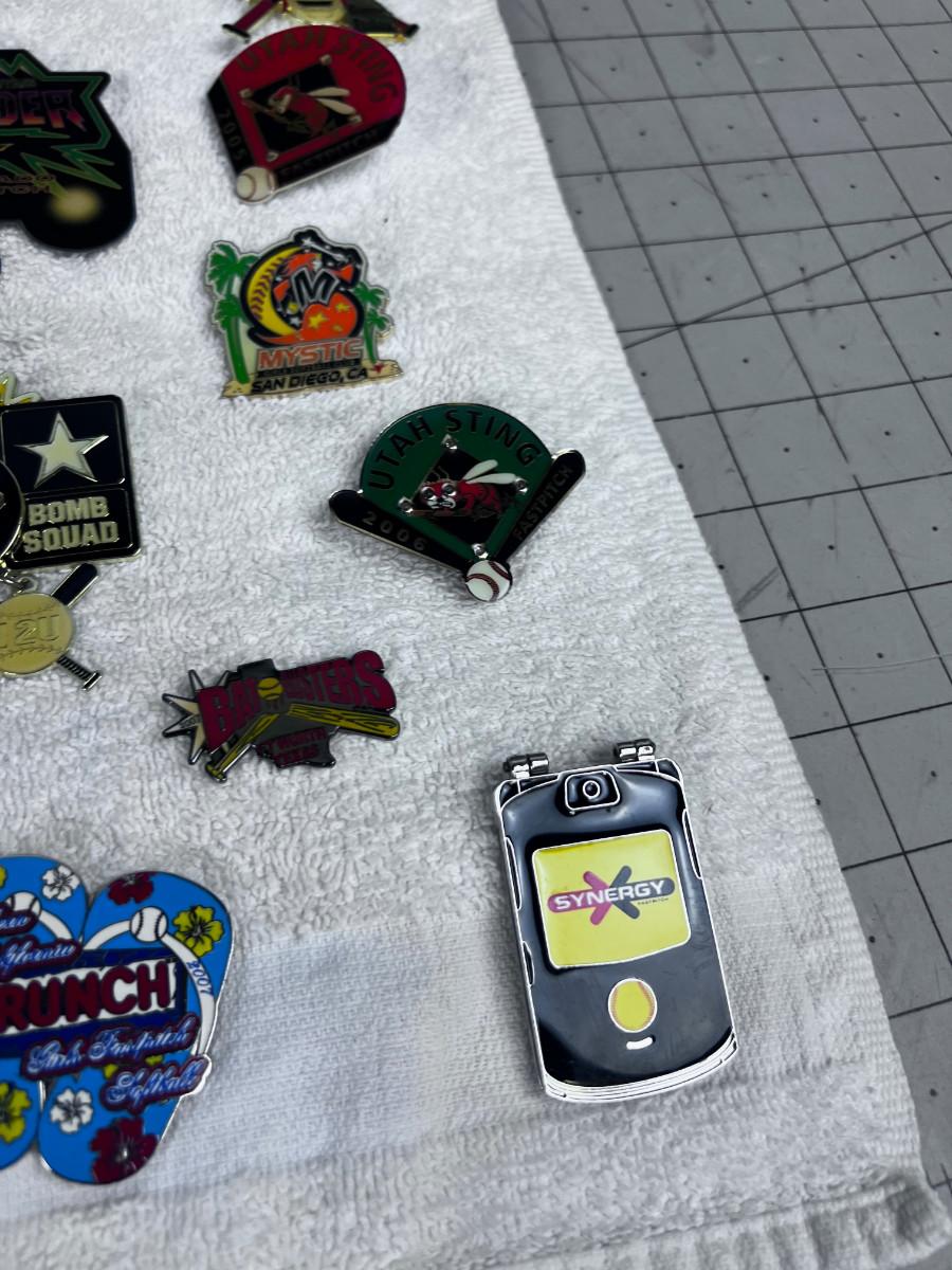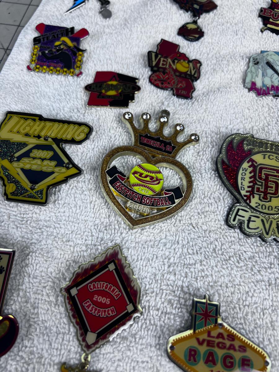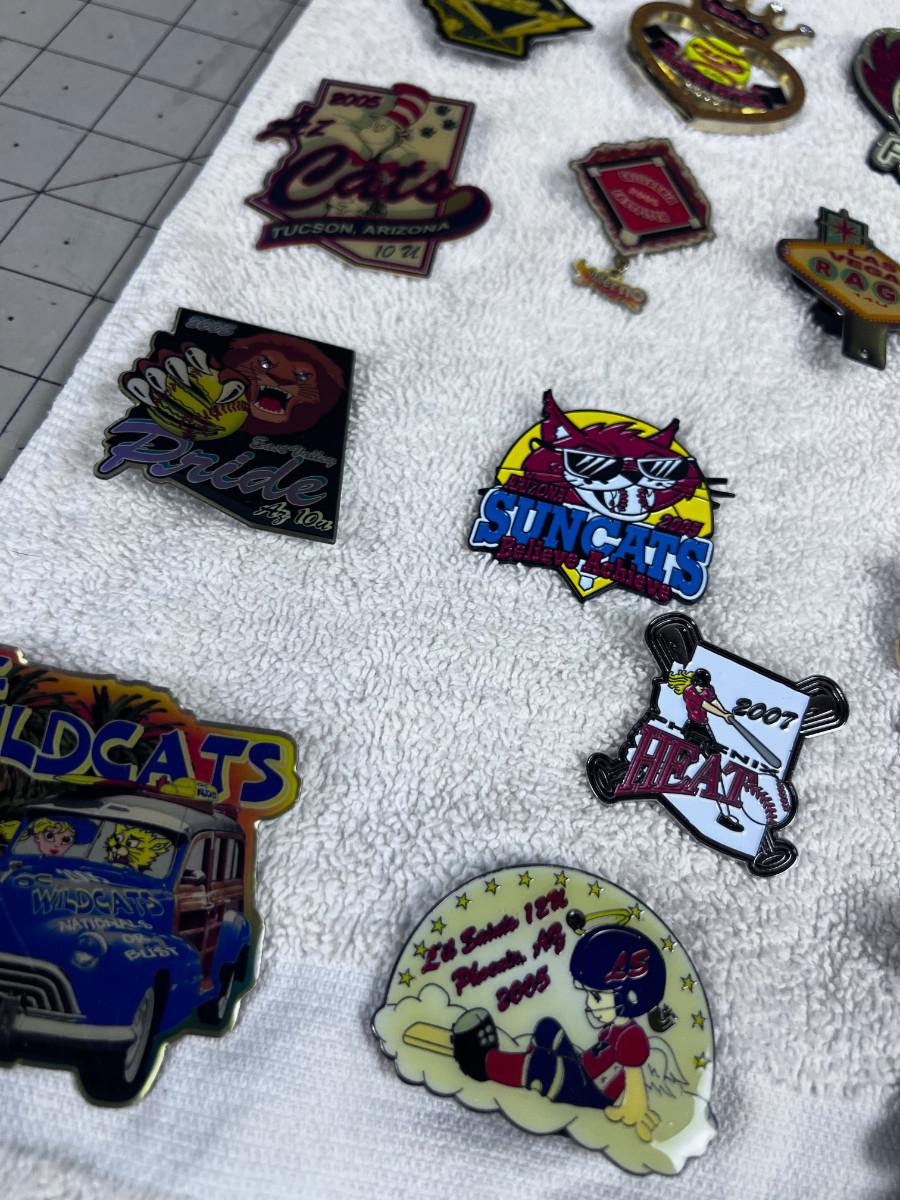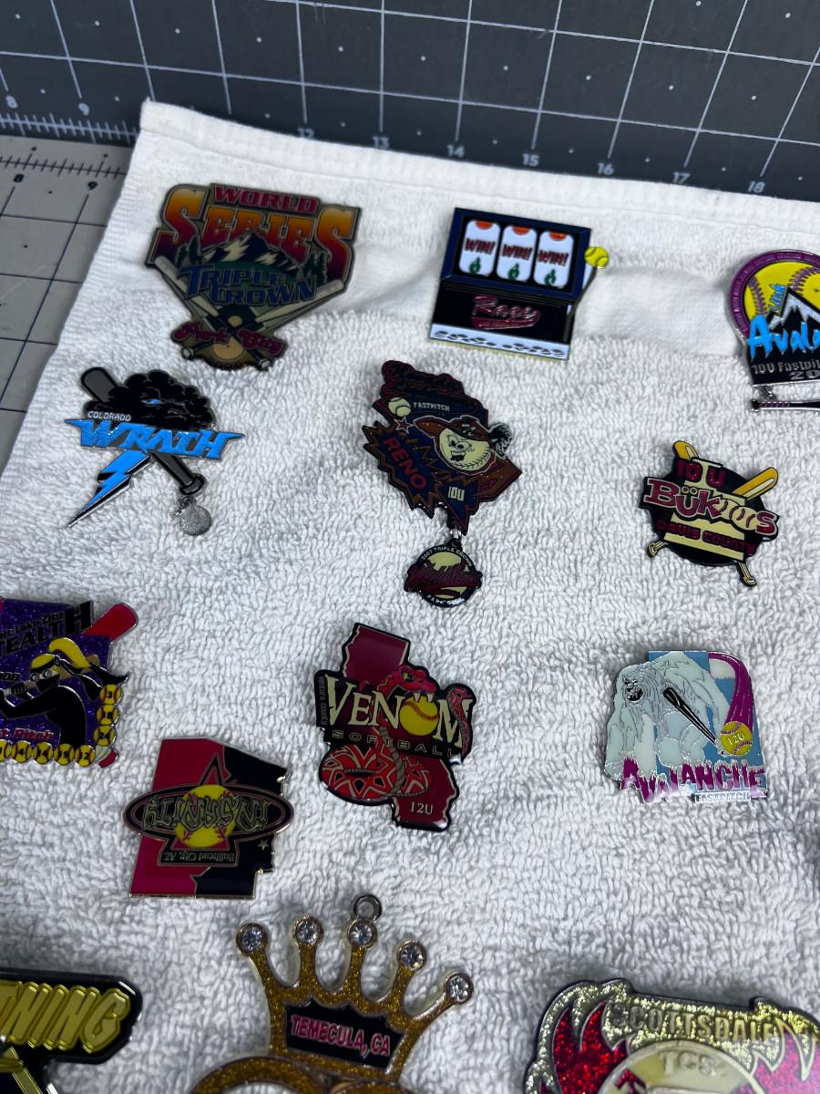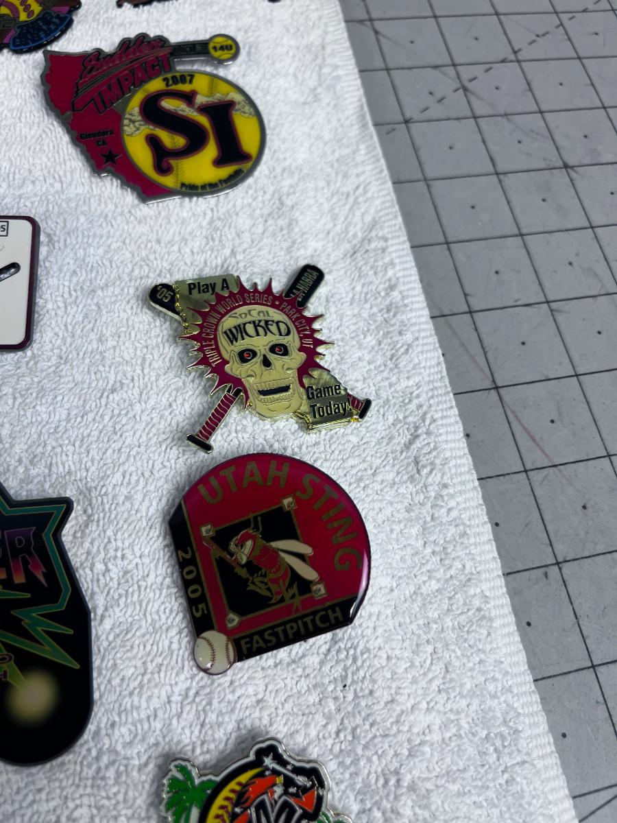 Just a towel of Pins from 2005,2006 and 2007 Women's Fast Pitch Softball.
