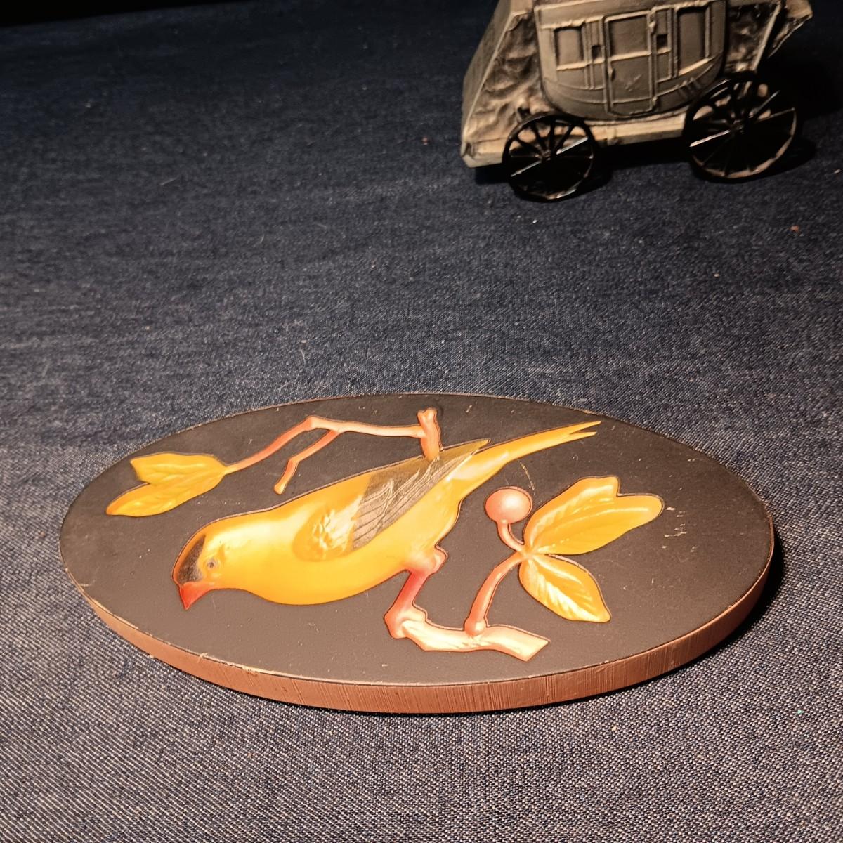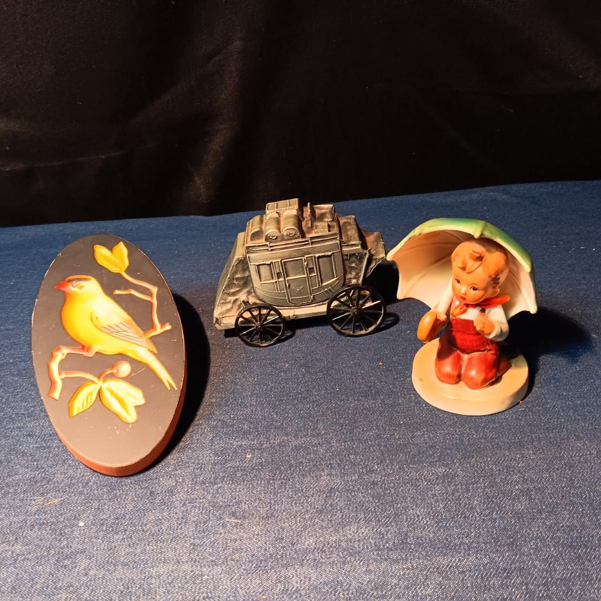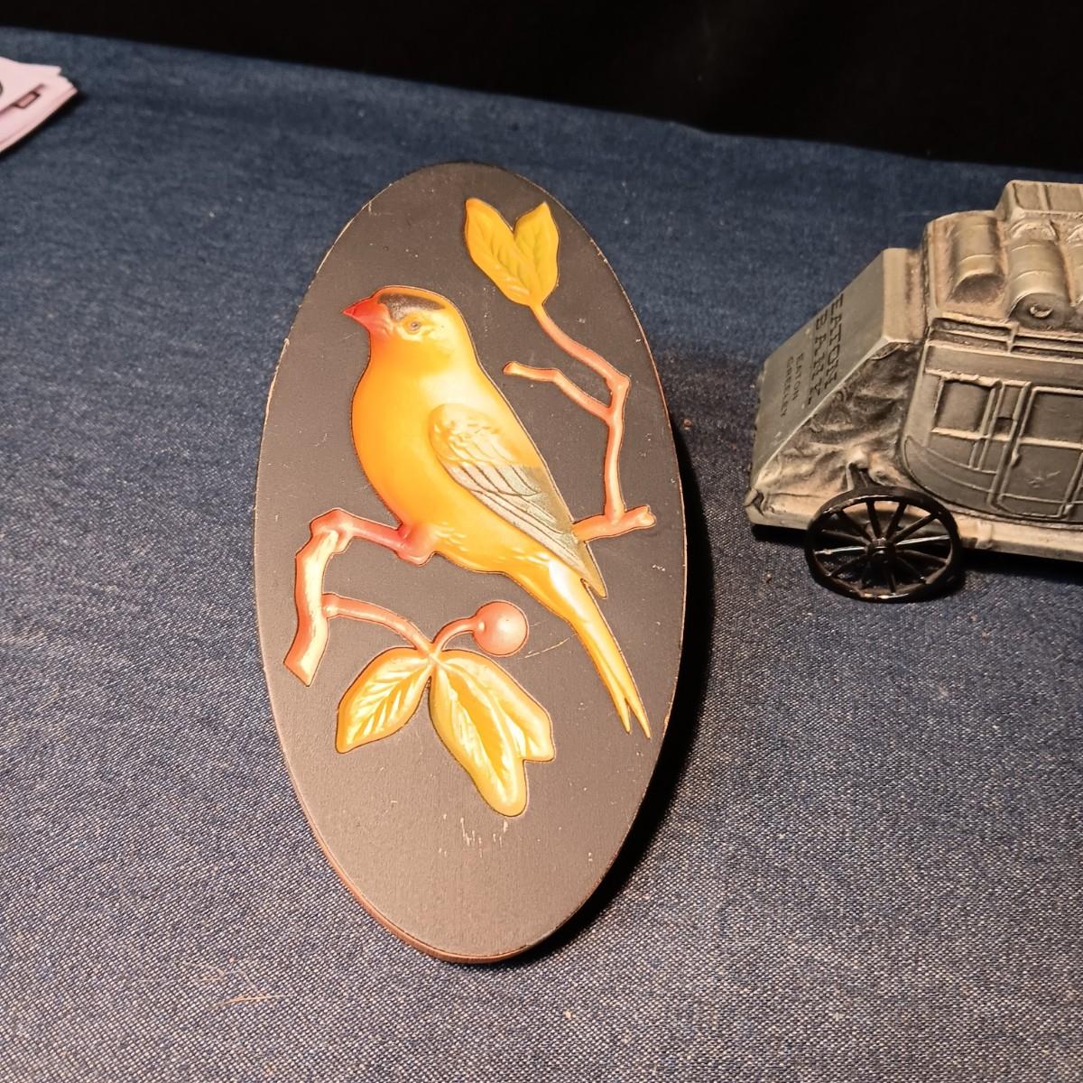 "JUST KIDS" BY INARCO, EATON BANK DIE-CAST BANK & CHALKWARE BIRD WALL HANGING