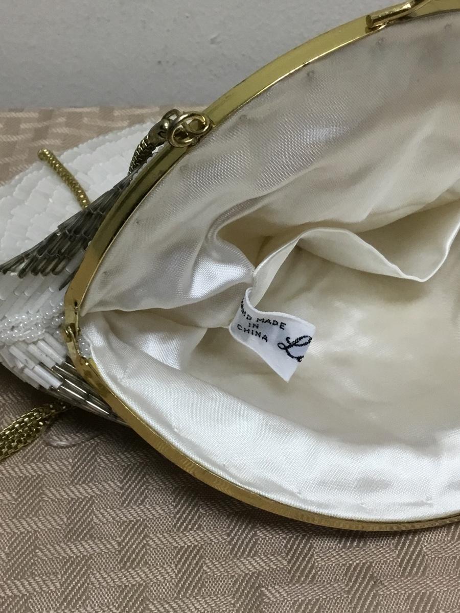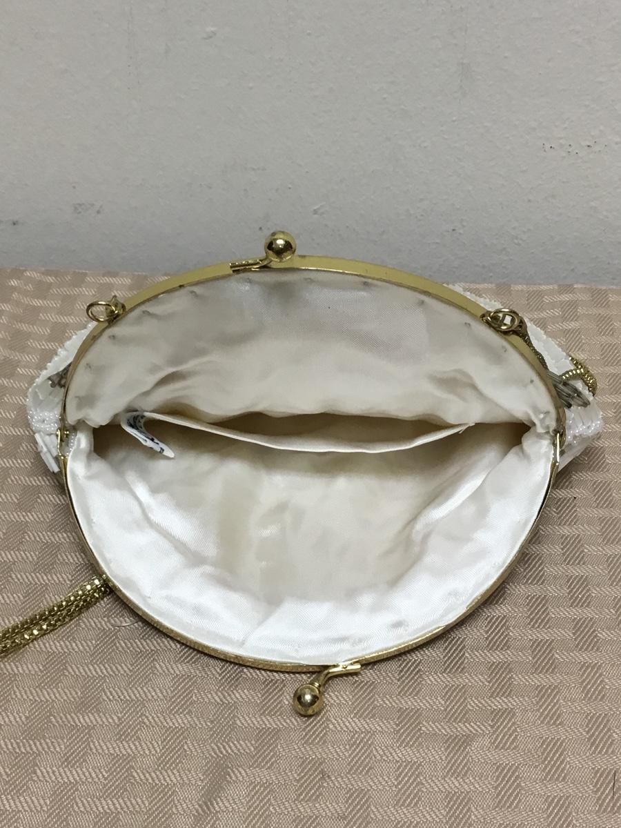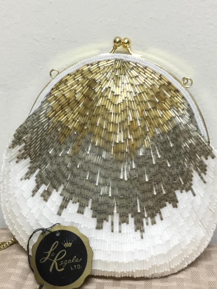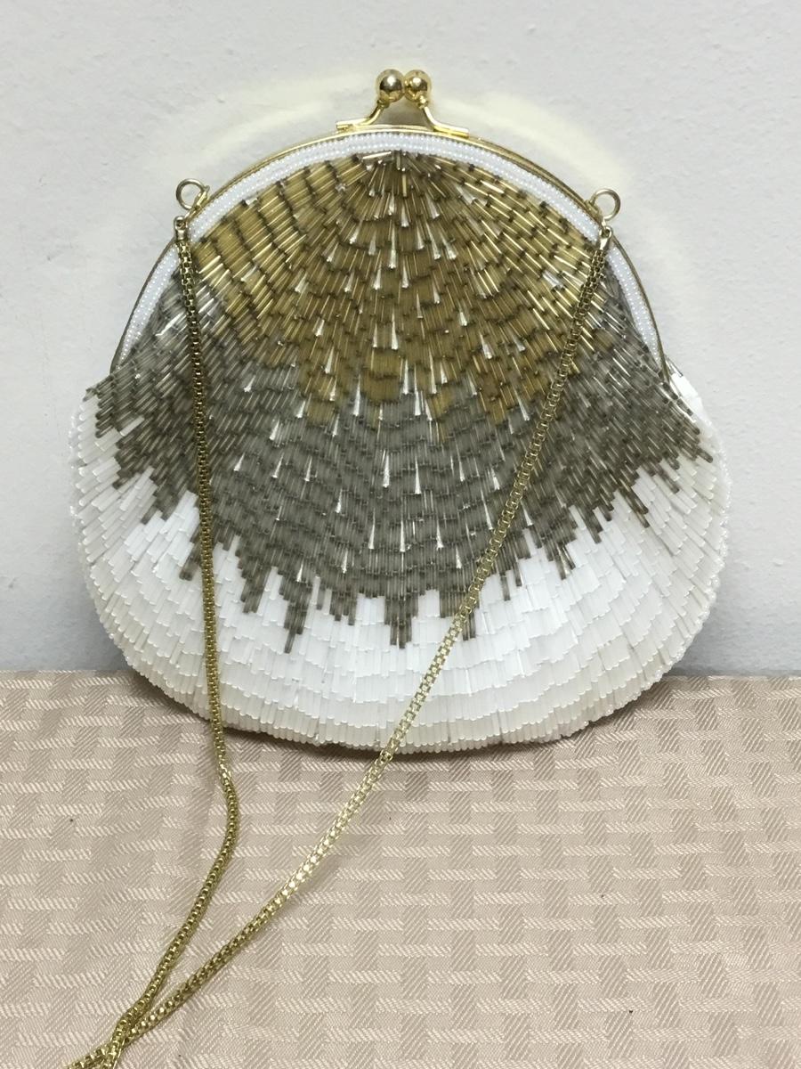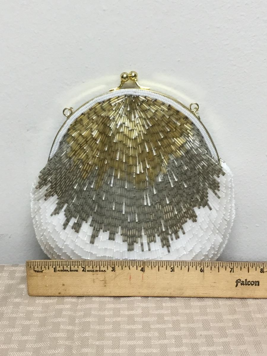 Vintage Gold Silver & White Beaded Purse Clutch Evening Bag