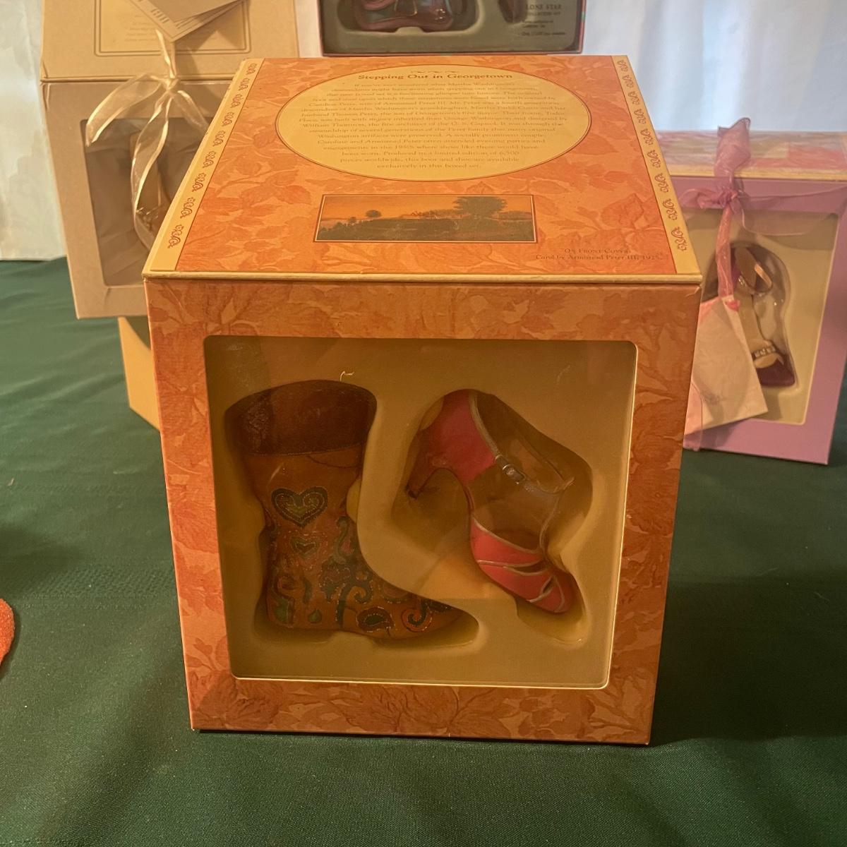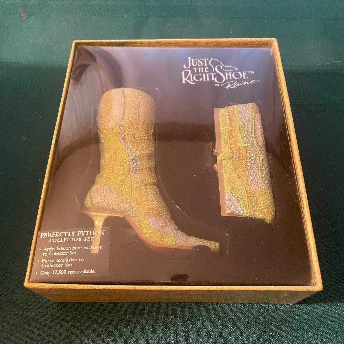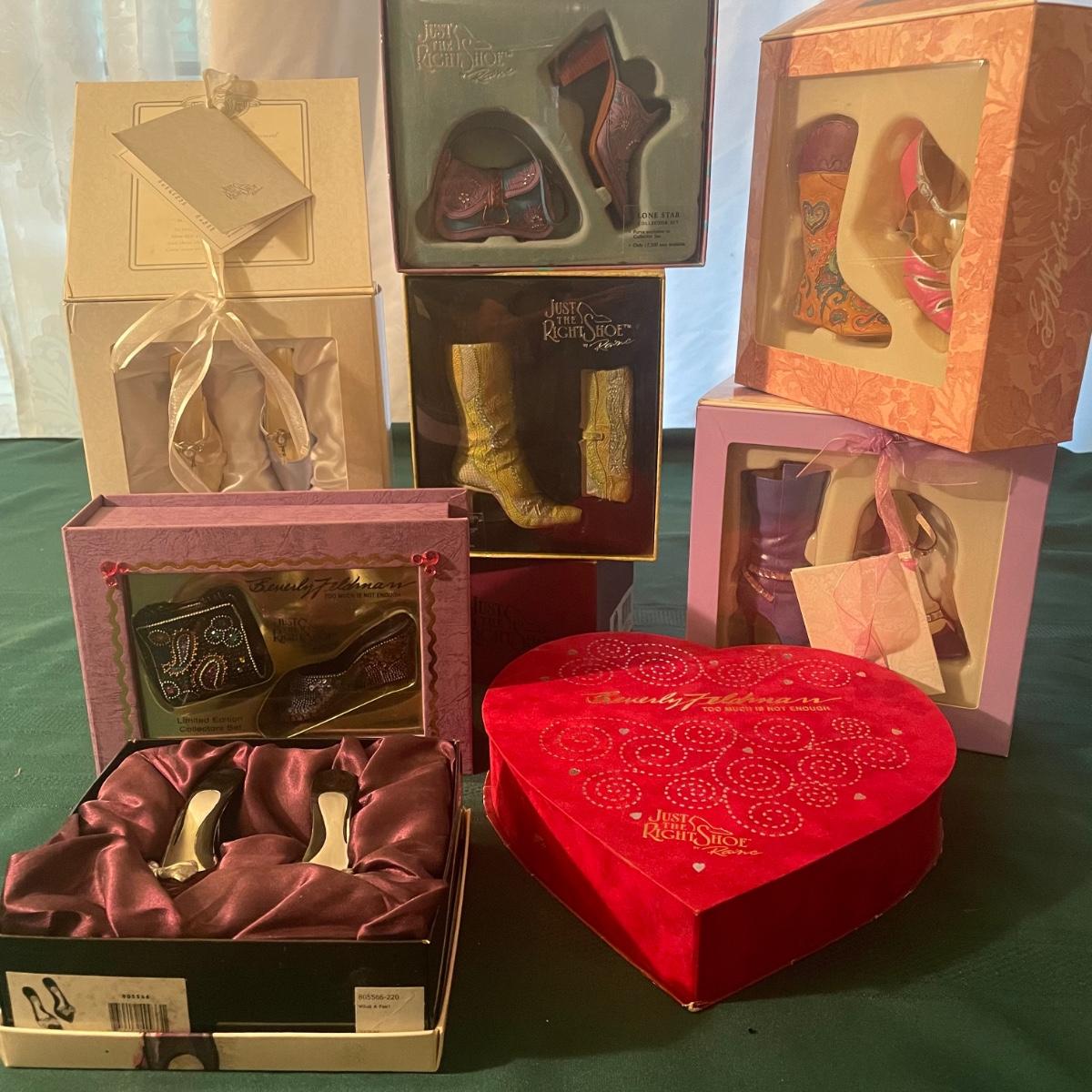 Ten boxes of what appears to be new in packaging miniatures “˜Just The Right Shoe’ Collectibles. See images for these boxes of cold cast figurines for their item numbers/collection names where found.