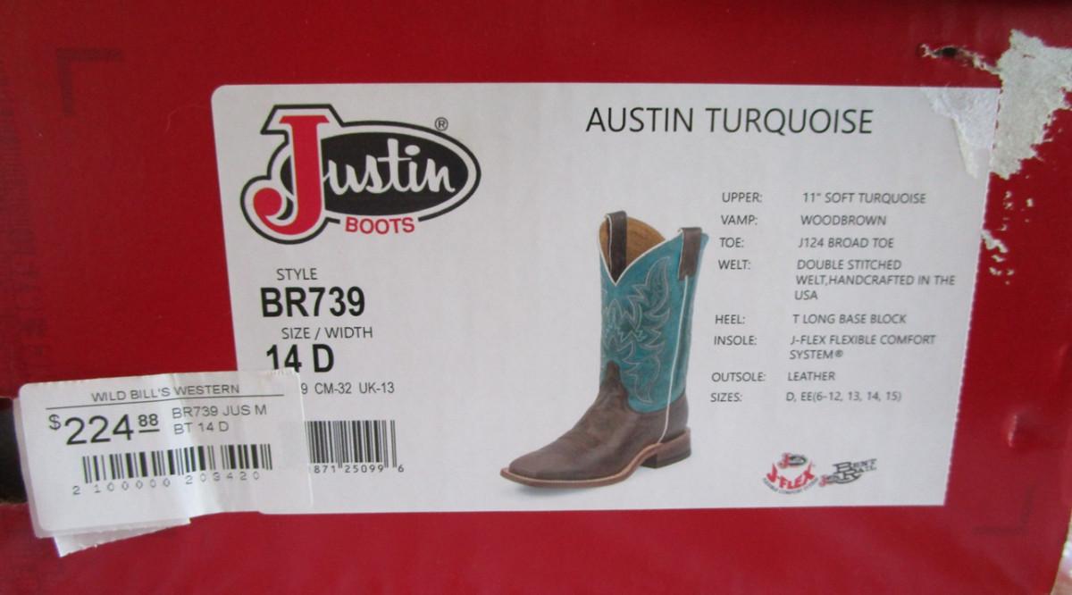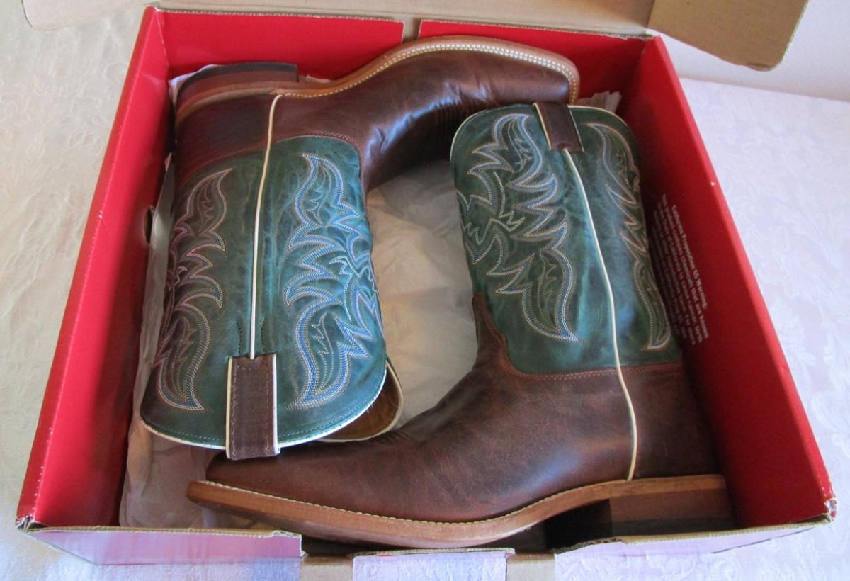 New in box Size 14D, 13" tall, Green & brown, see pictures