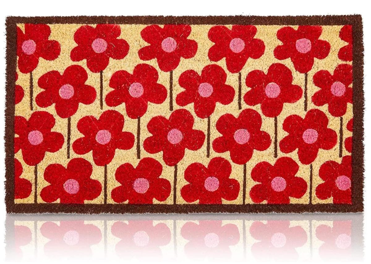 Juvale Natural Coir Floral Spring Door Mat for Front Entry - 30 x 17 Inch Cute Door Mat with Flower Decor - Indoor & Outdoor Doormat Entry Rug - Floral Rug
