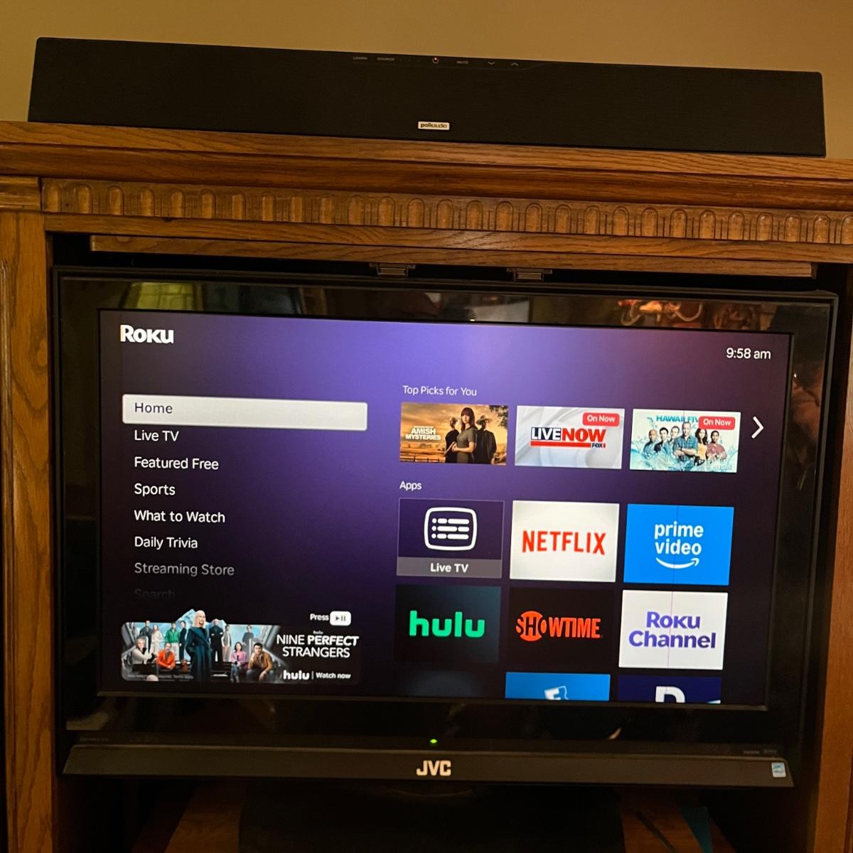 JVC 32” TV & Polk Audio Sound Bar & Sub Woofer & Roku (LR-MG)