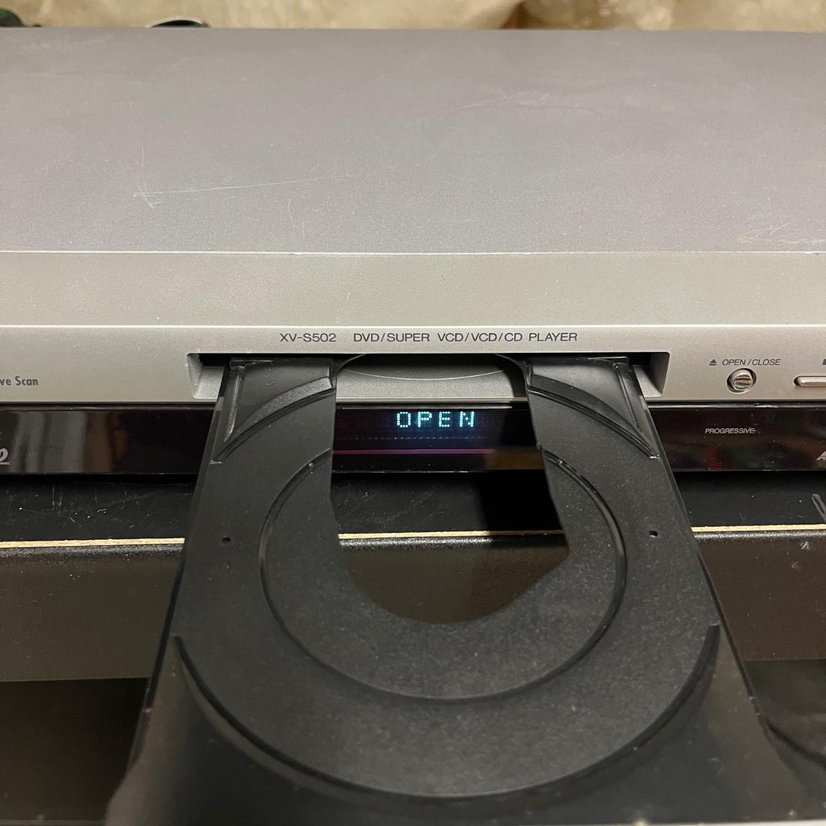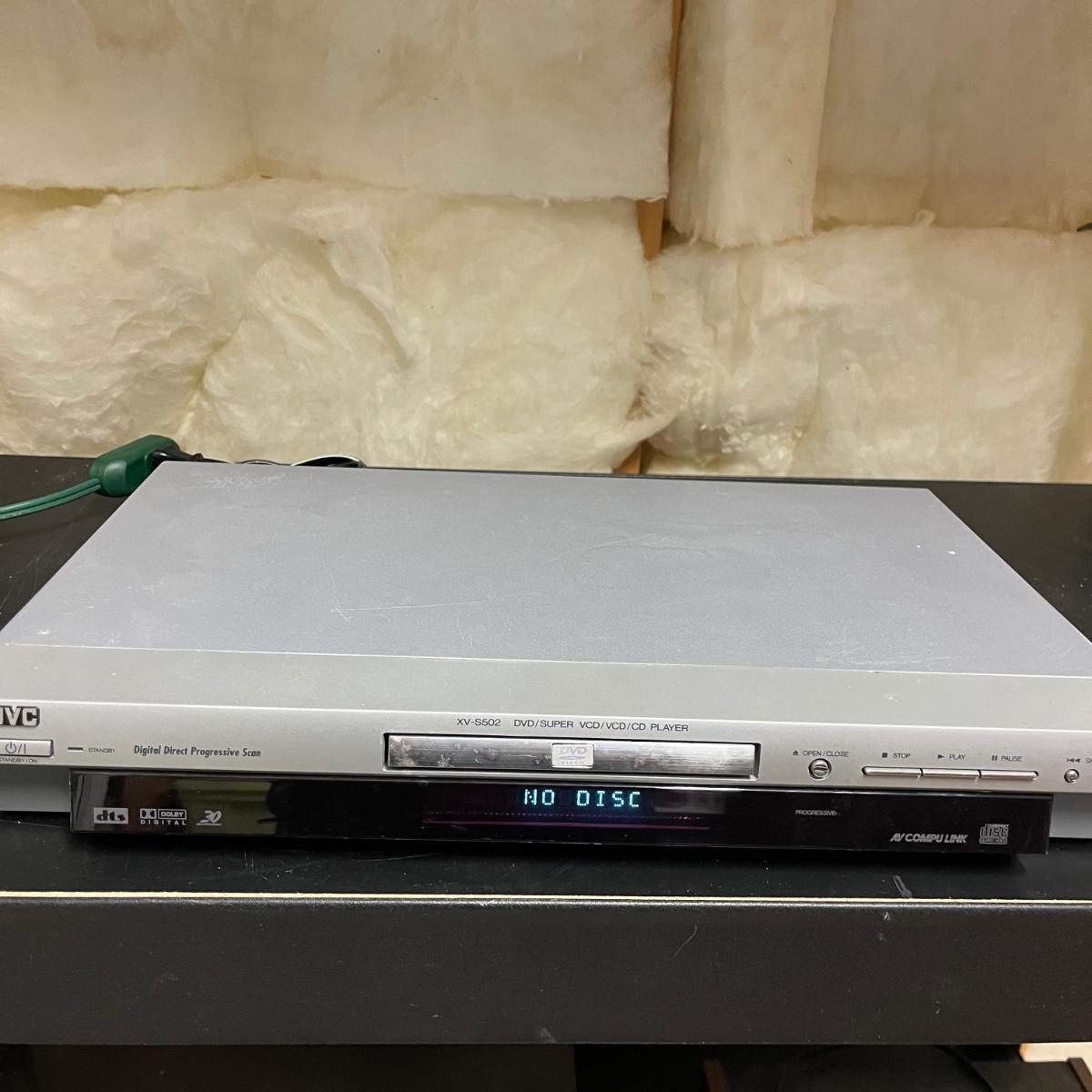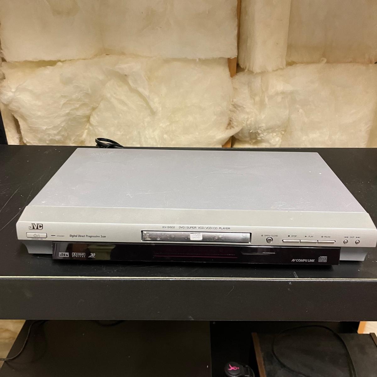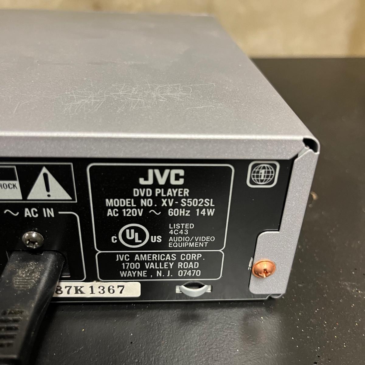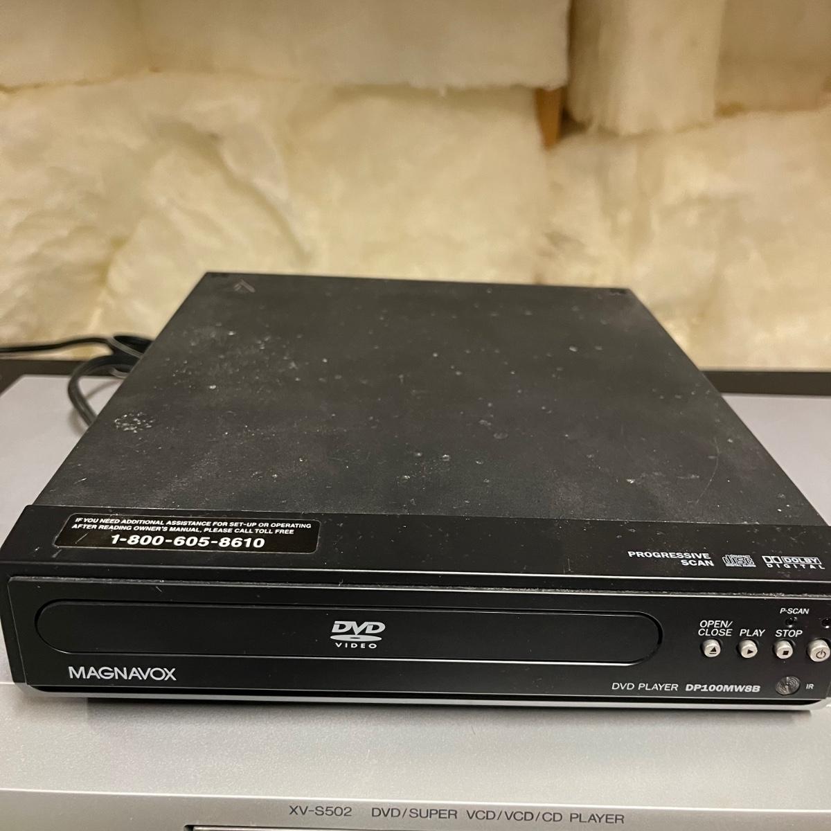 Lot includes a JVC DVD Player model # XV-S502 and a Magnavox DVD player model # DP100MW8B. Both units powered on when tested. JVC unit measures 10” x 17” x 2.75”.