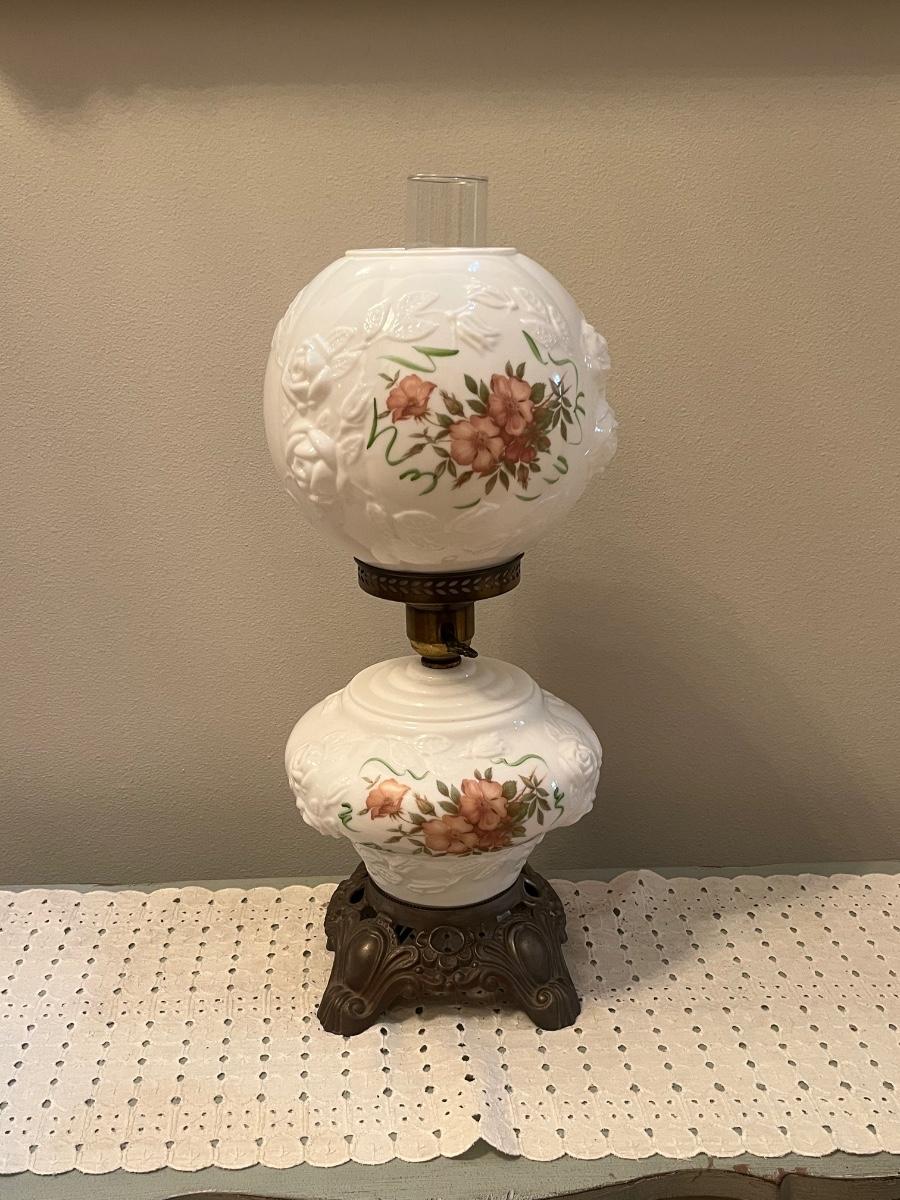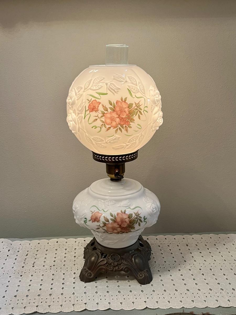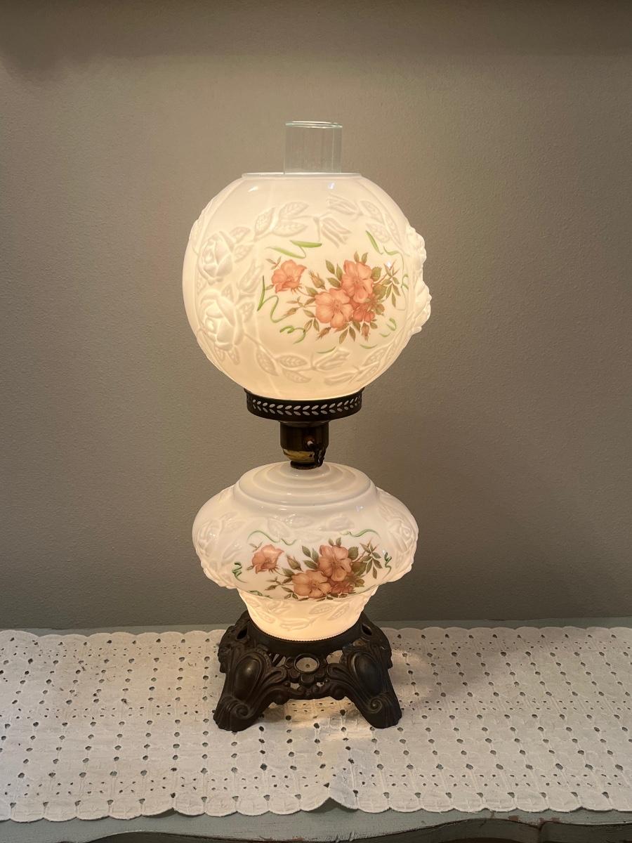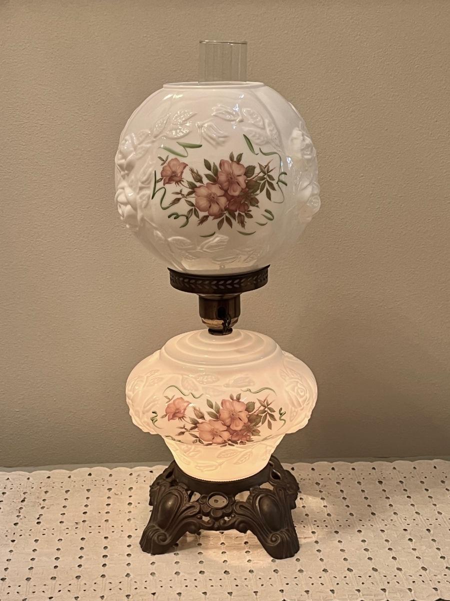Wild Rose Vintage Style Lamp ~ 3-Way ~ Brass/Bronze Base