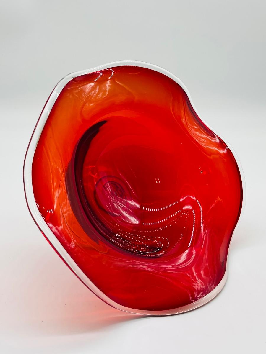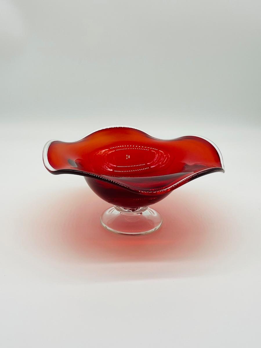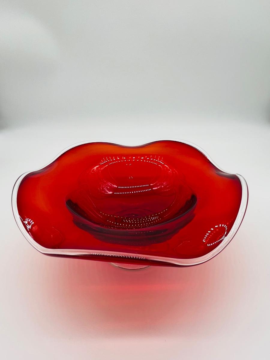 Red Blown Glass ~ Fluted Pedestal Bowl