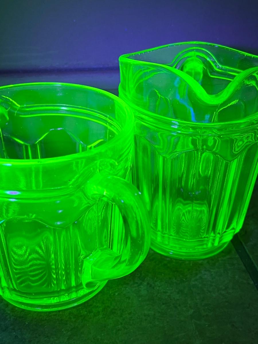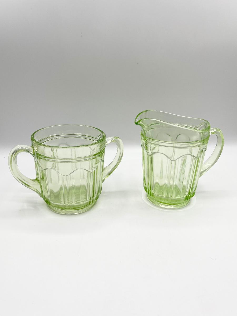 Uranium Vaseline Glass Sugar & Creamer ~ *Read Details ~ 2 Piece Set