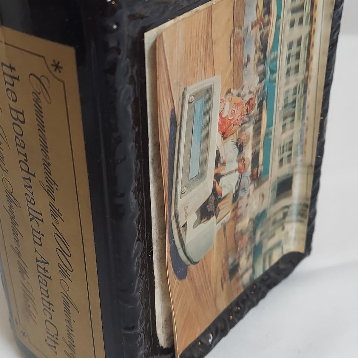 Lot includes an empty collectible whiskey decanter commemorating the 100th anniversary of The Atlantic City Boardwalk. Comes in its original box. Front decal starting to peel. Bottle measures 9"H. Please see photos for details. Shipping available.