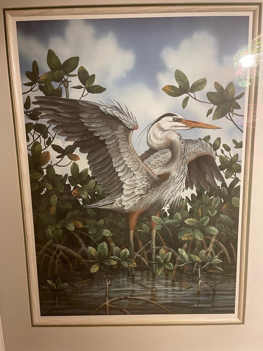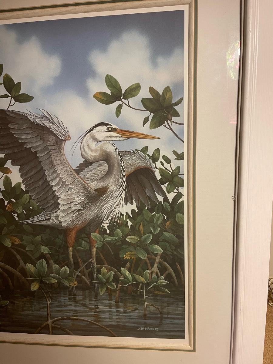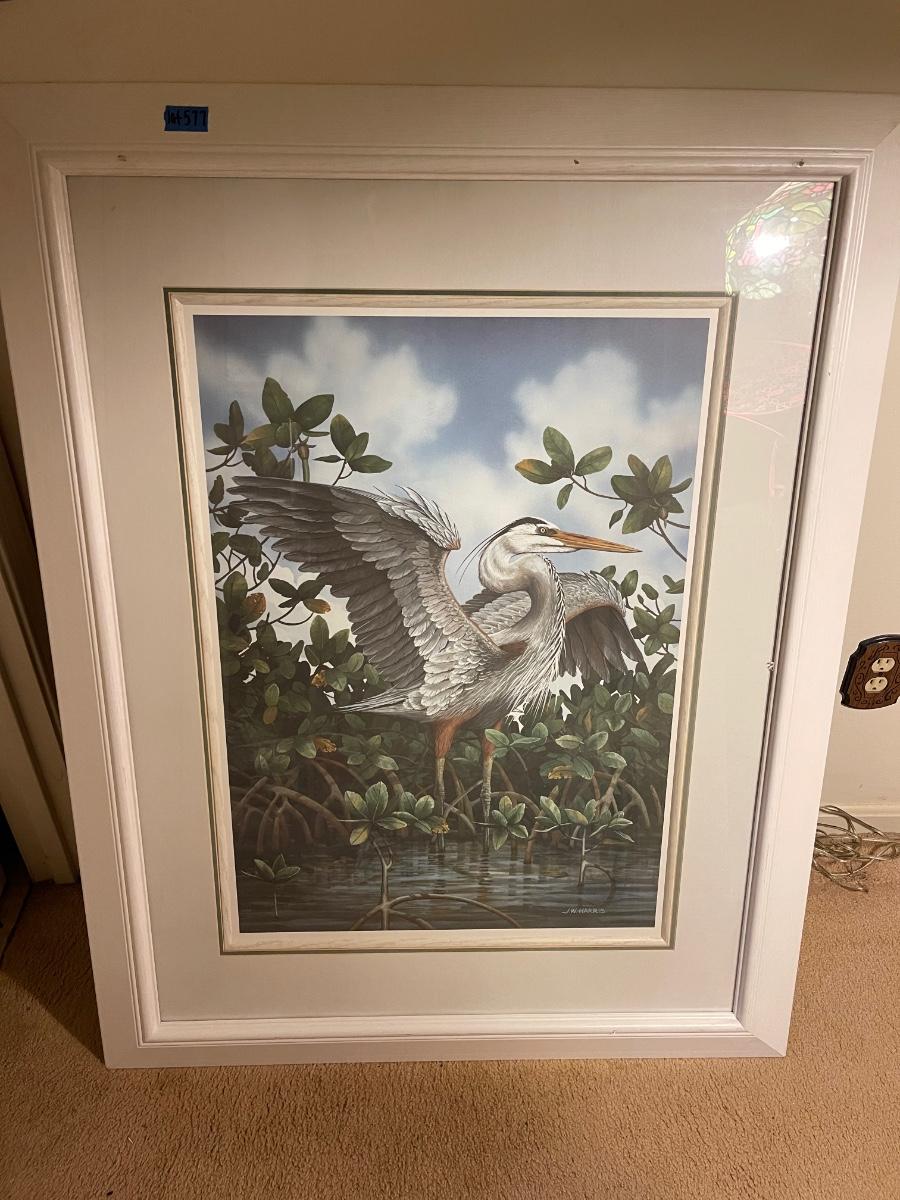 Gorgeous JW Harris (46 x 36") framed crane picture.